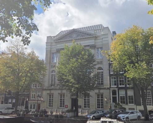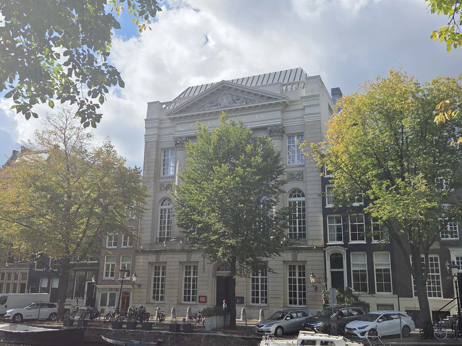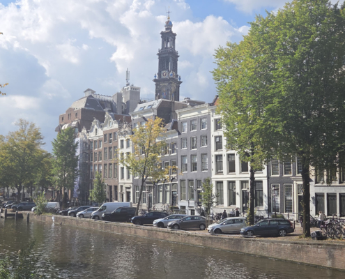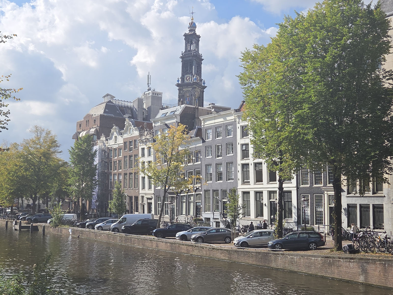 Grote protestantse kerk uit de vroege 17e eeuw aan de Prinsengracht met imposante toren die het wijkbeeld domineert. Een wandeling rondom de kerk is rustiger in de namiddag. - Blauwburgwal 22.