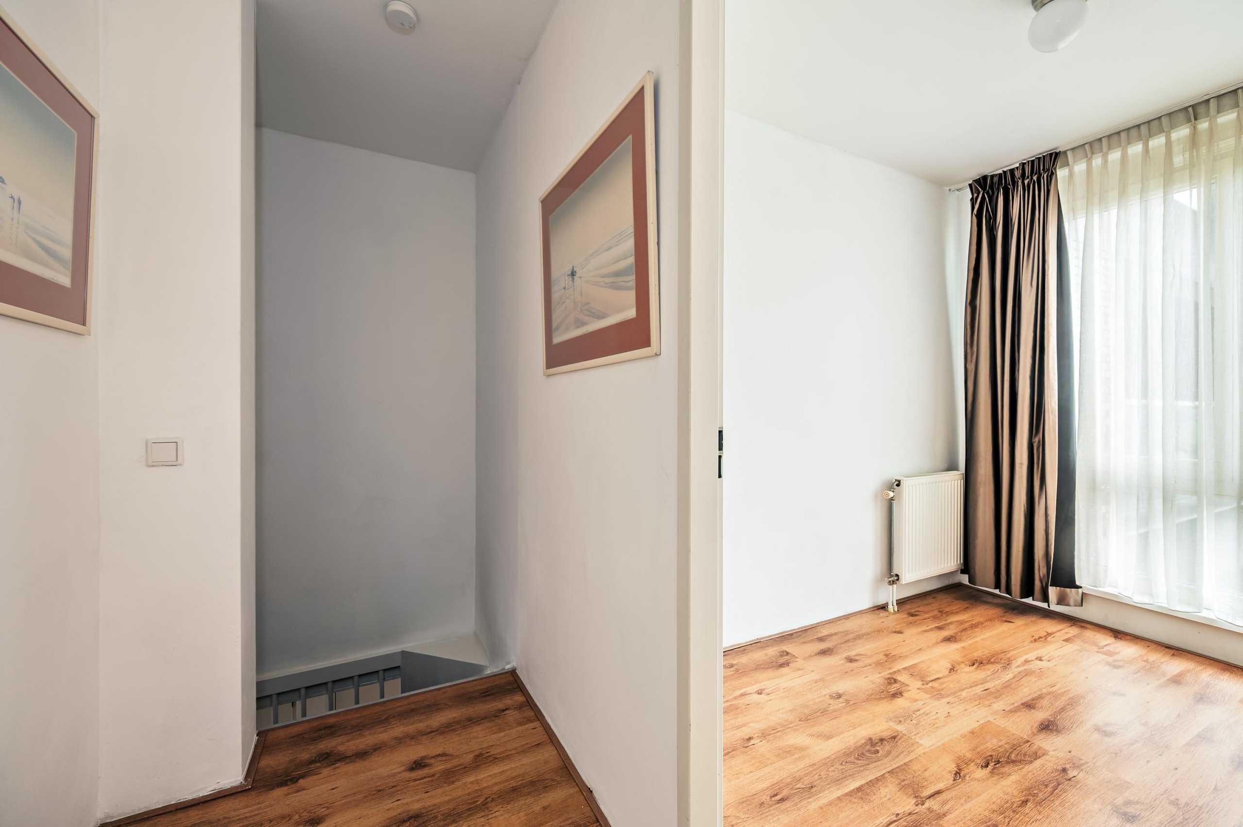 Via de interne trap kom je op de slaapverdieping met twee slaapkamers. De master bedroom is ruim en licht, terwijl de tweede kamer ideaal is als kinderkamer of thuiskantoor. Beide kamers hebben ramen die volledig open kunnen – zo haal je buiten letterlijk naar binnen. De moderne badkamer is voorzien van een ligbad, wastafelmeubel en douchecabine.