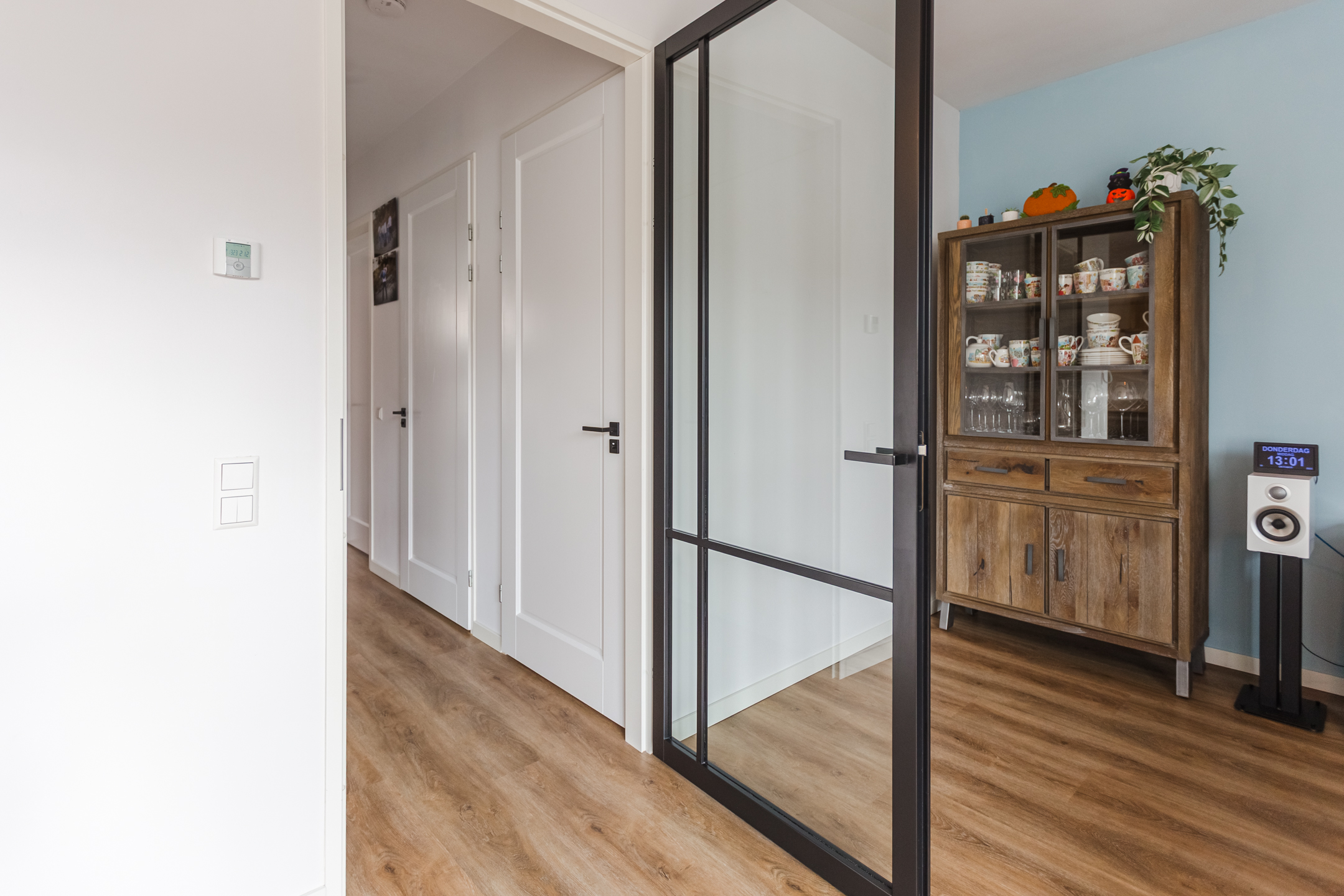 De gehele woning is voorzien van een fraaie vloer, glad gestuukte wanden en plafonds. Fraaie en luxe binnendeuren zonder bovenlichten maken het plaatje compleet. Ook prettig: geheel voorzien van comfortabele vloerverwarming die per vertrek apart regelbaar is.