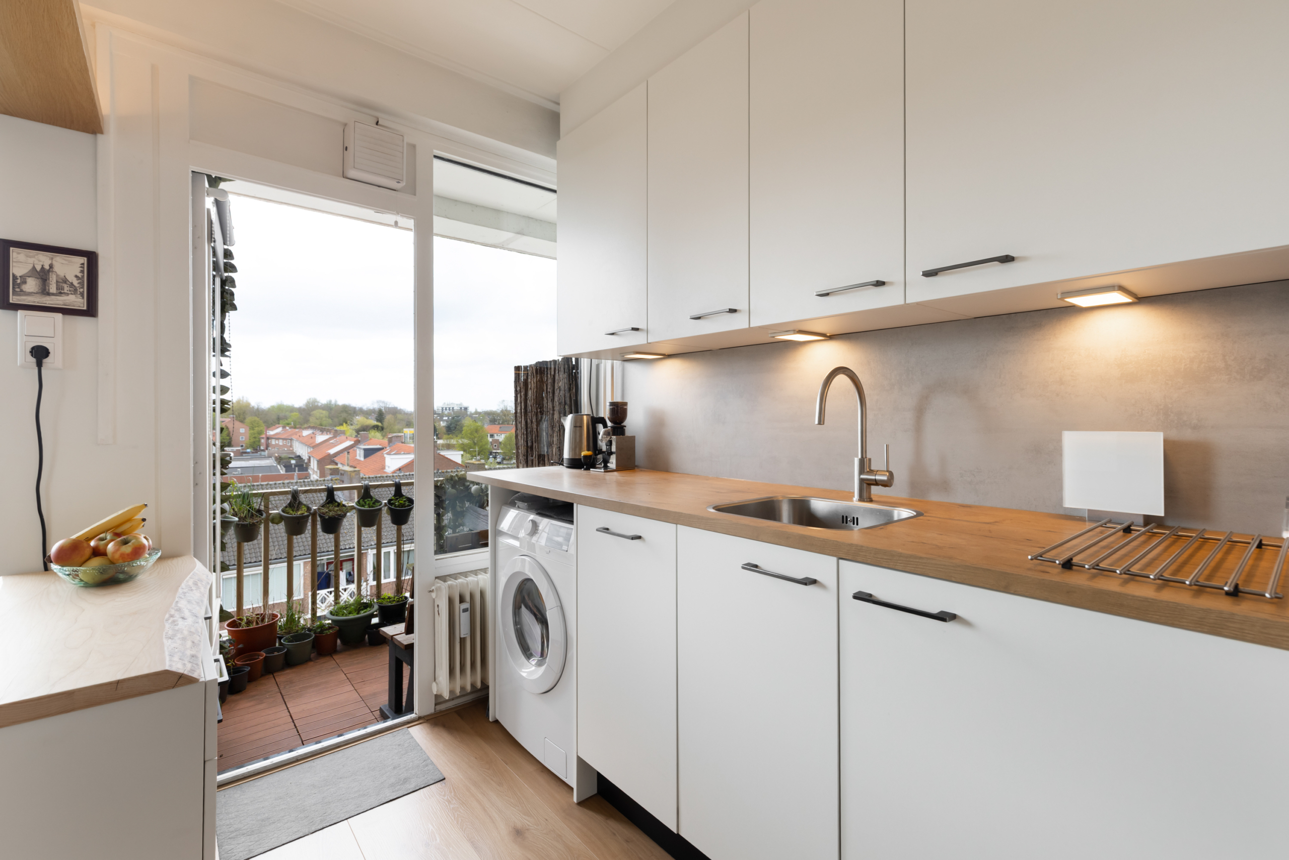 Vanuit de keuken is er toegang tot het balkon. Op dit balkon kan je vanaf 16:00 uur tot de zon ondergaat in het zonnetje zitten.