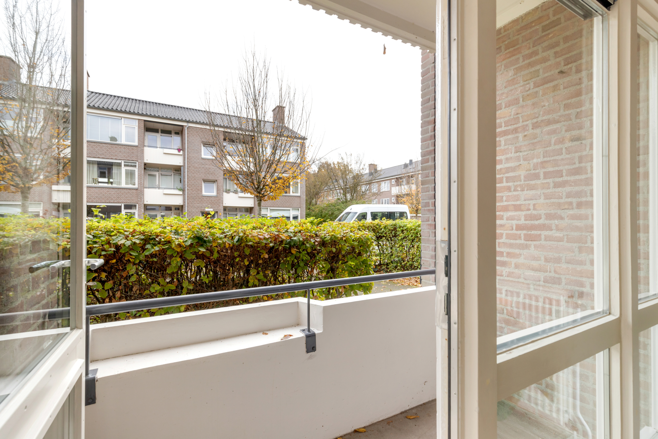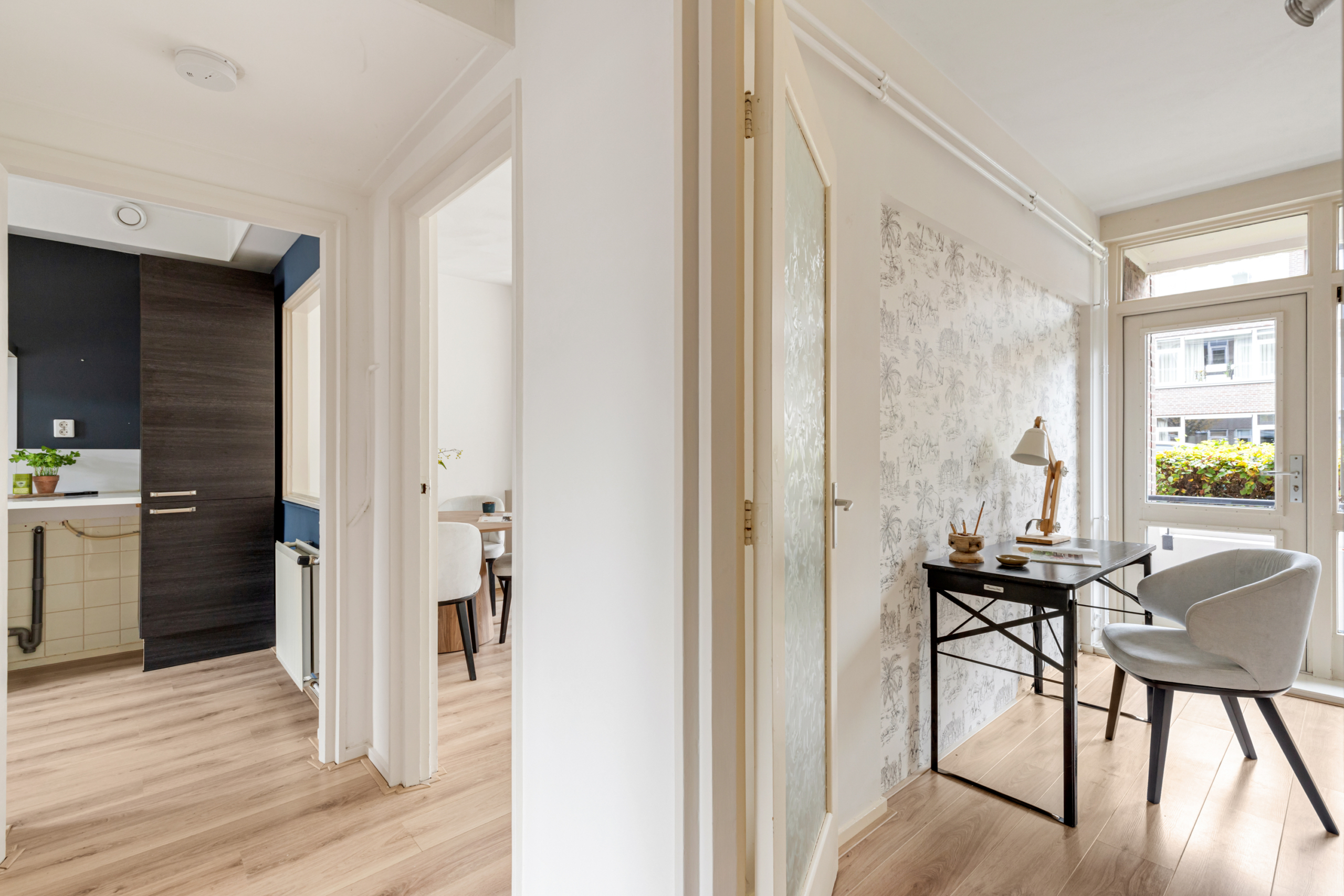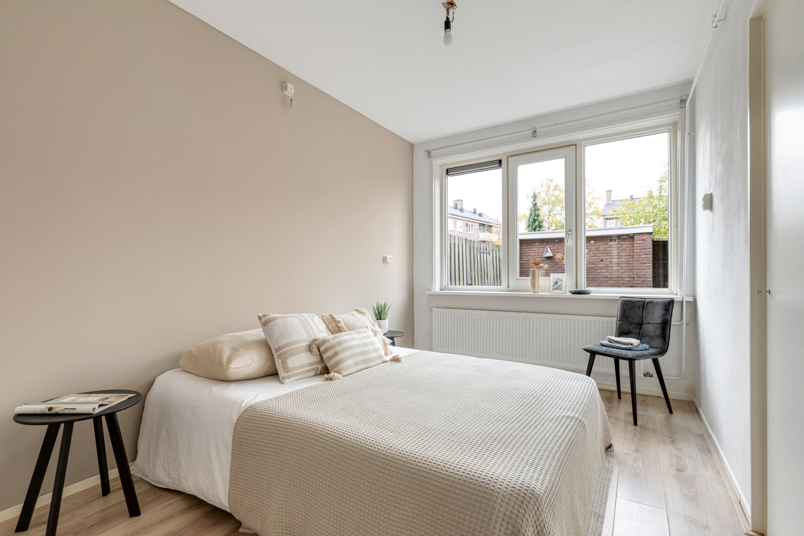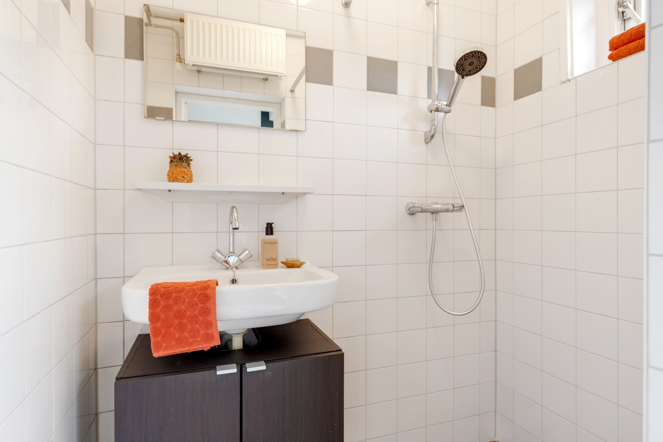 Aan de voorzijde van het lichte appartement bevindt zich een slaapkamer en de woonkamer. Vanuit de slaapkamer is het balkon aan de voorzijde bereikbaar. Hier kan genoten worden van het ochtendzonnetje. De woonkamer staat in verbinding met de keuken, die zich aan de achterzijde van het appartement bevindt. Omdat de muur tussen de woonkamer en keuken deels is verwijderd, heeft het appartement veel natuurlijke lichtinval. De keuken is voorzien van een royaal keukenblok en groot werkblad. De volgende apparaten zijn ingebouwd: vaatwasser, oven, koelkast, vriezer en 5-pits gasfornuis. Kortom een heerlijke plek om lekker te kokkerellen. De badkamer is bereikbaar vanuit de keuken. Deze is voorzien van een royale douche en wastafel. Vanuit de hal is er toegang tot toilet. Wel zo fijn dat het toilet gescheiden is van de badkamer. Aan de achterzijde van het appartement ligt de grote slaapkamer.