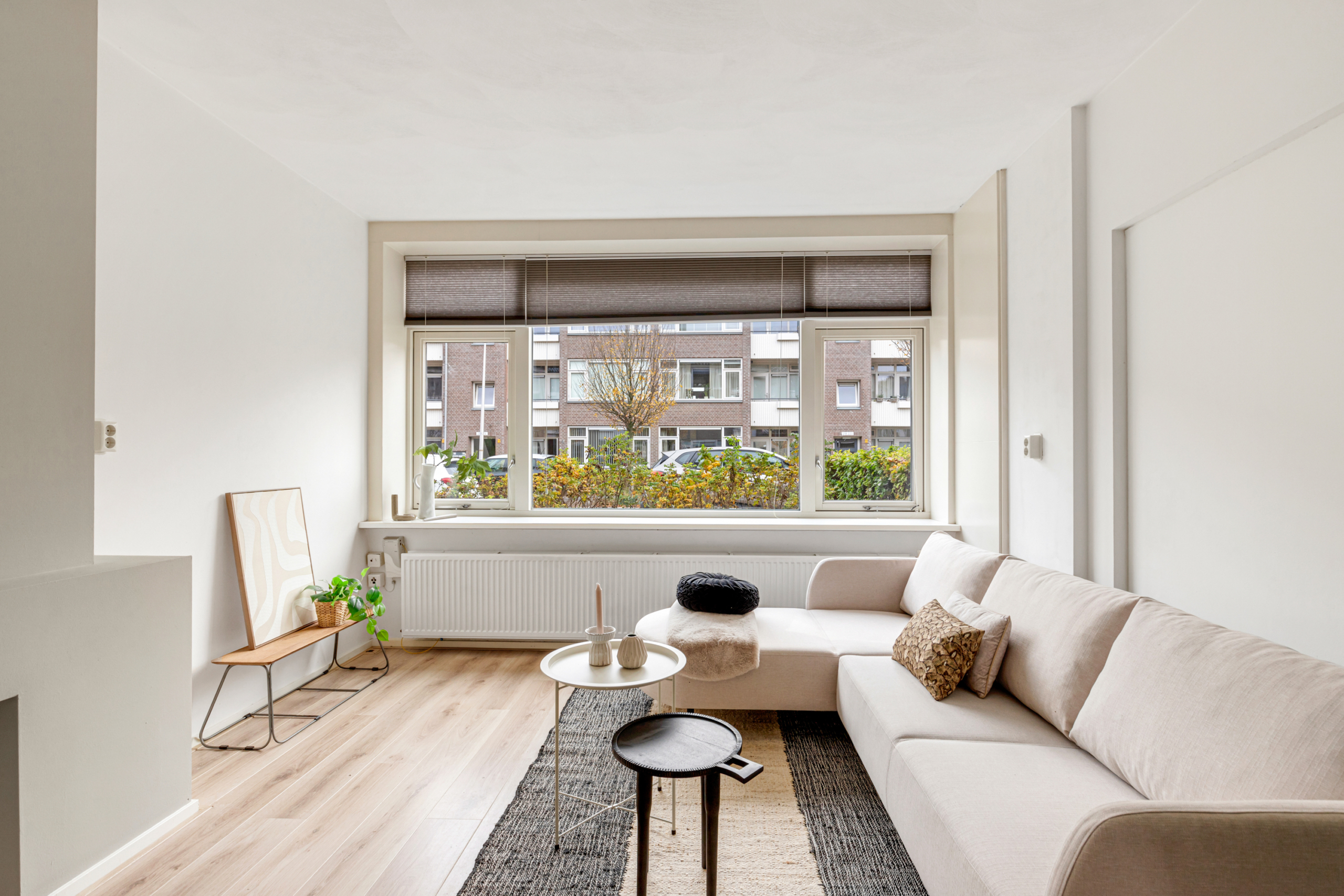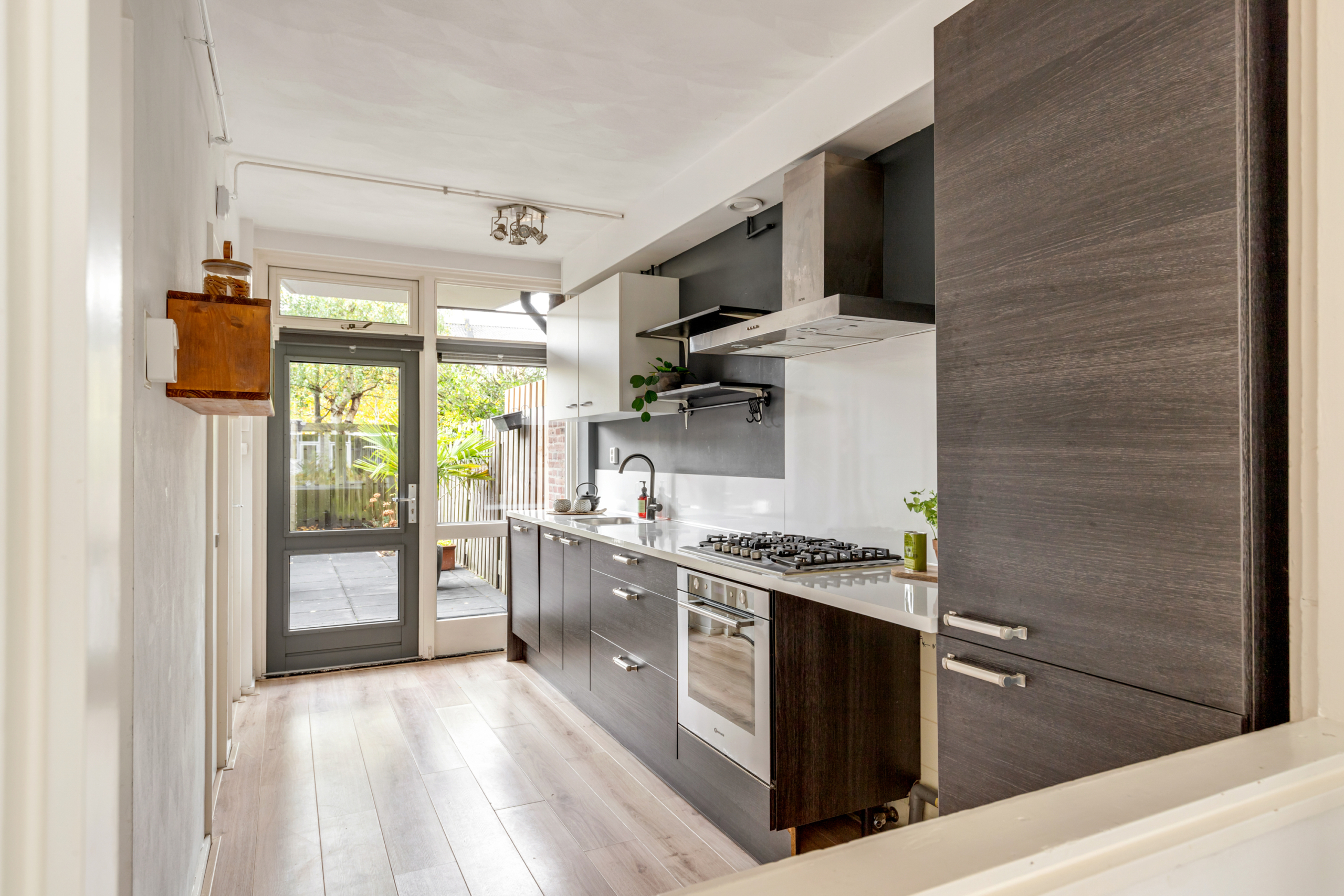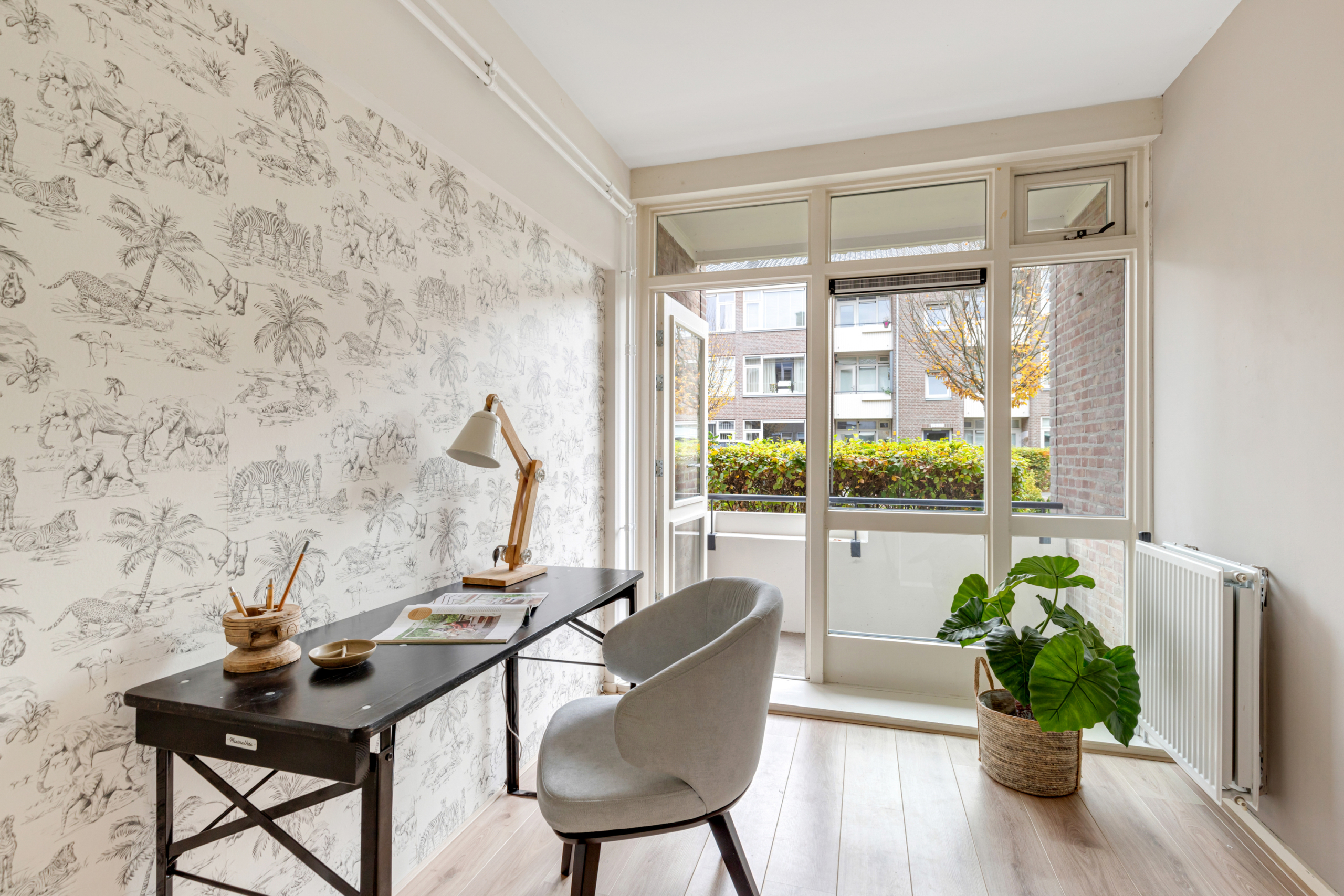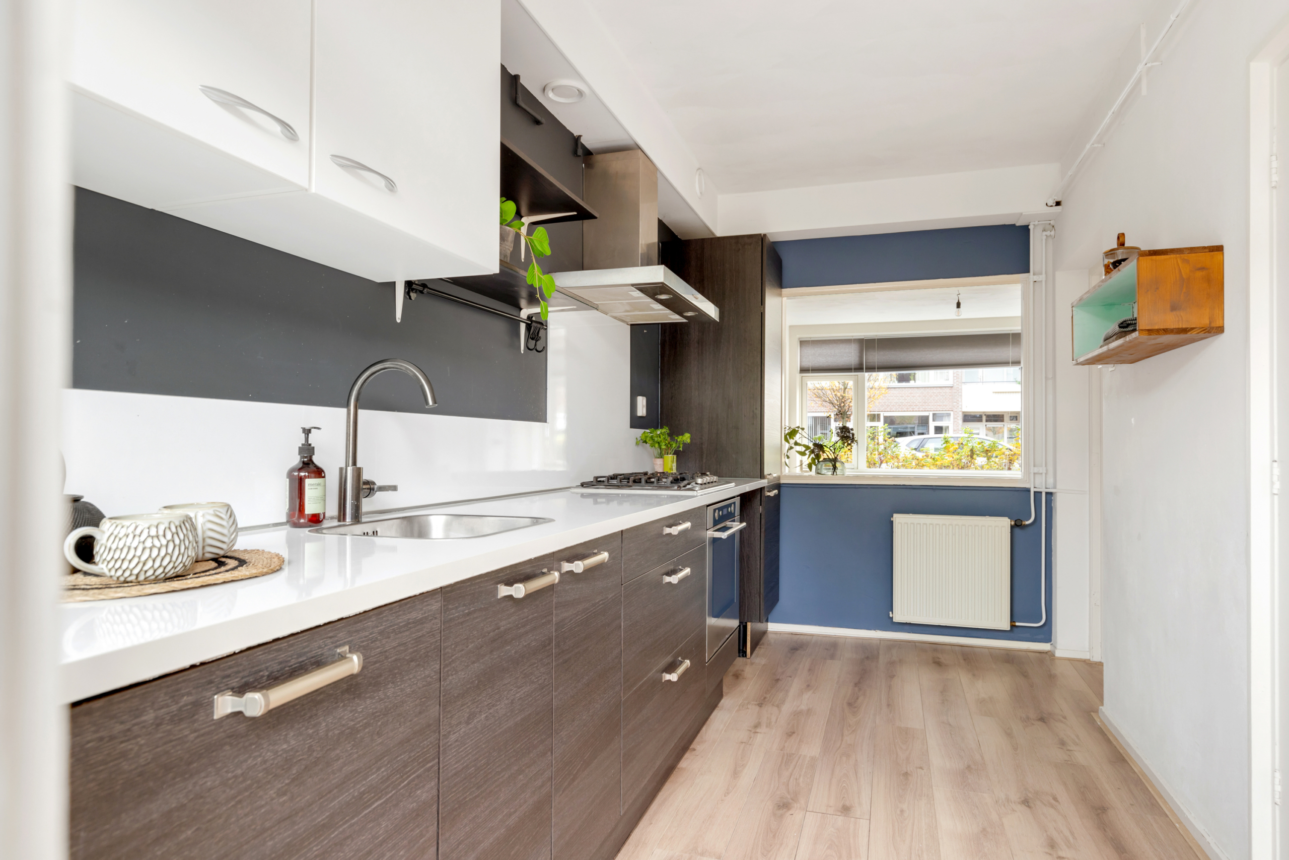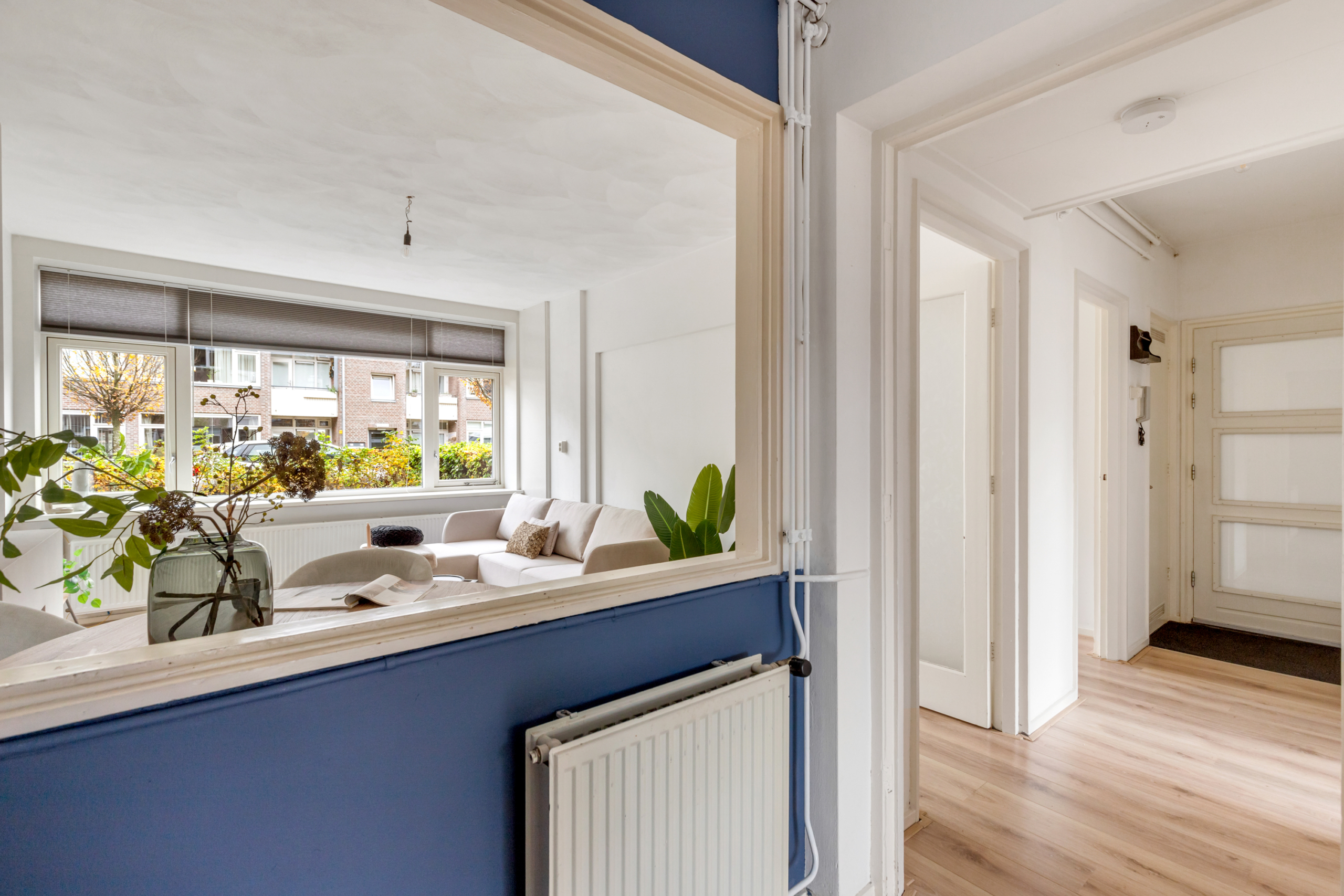 Aan de voorzijde van het lichte appartement bevindt zich een slaapkamer en de woonkamer. Vanuit de slaapkamer is het balkon aan de voorzijde bereikbaar. Hier kan genoten worden van het ochtendzonnetje. De woonkamer staat in verbinding met de keuken, die zich aan de achterzijde van het appartement bevindt. Omdat de muur tussen de woonkamer en keuken deels is verwijderd, heeft het appartement veel natuurlijke lichtinval. De keuken is voorzien van een royaal keukenblok en groot werkblad. De volgende apparaten zijn ingebouwd: vaatwasser, oven, koelkast, vriezer en 5-pits gasfornuis. Kortom een heerlijke plek om lekker te kokkerellen. De badkamer is bereikbaar vanuit de keuken. Deze is voorzien van een royale douche en wastafel. Vanuit de hal is er toegang tot toilet. Wel zo fijn dat het toilet gescheiden is van de badkamer. Aan de achterzijde van het appartement ligt de grote slaapkamer.