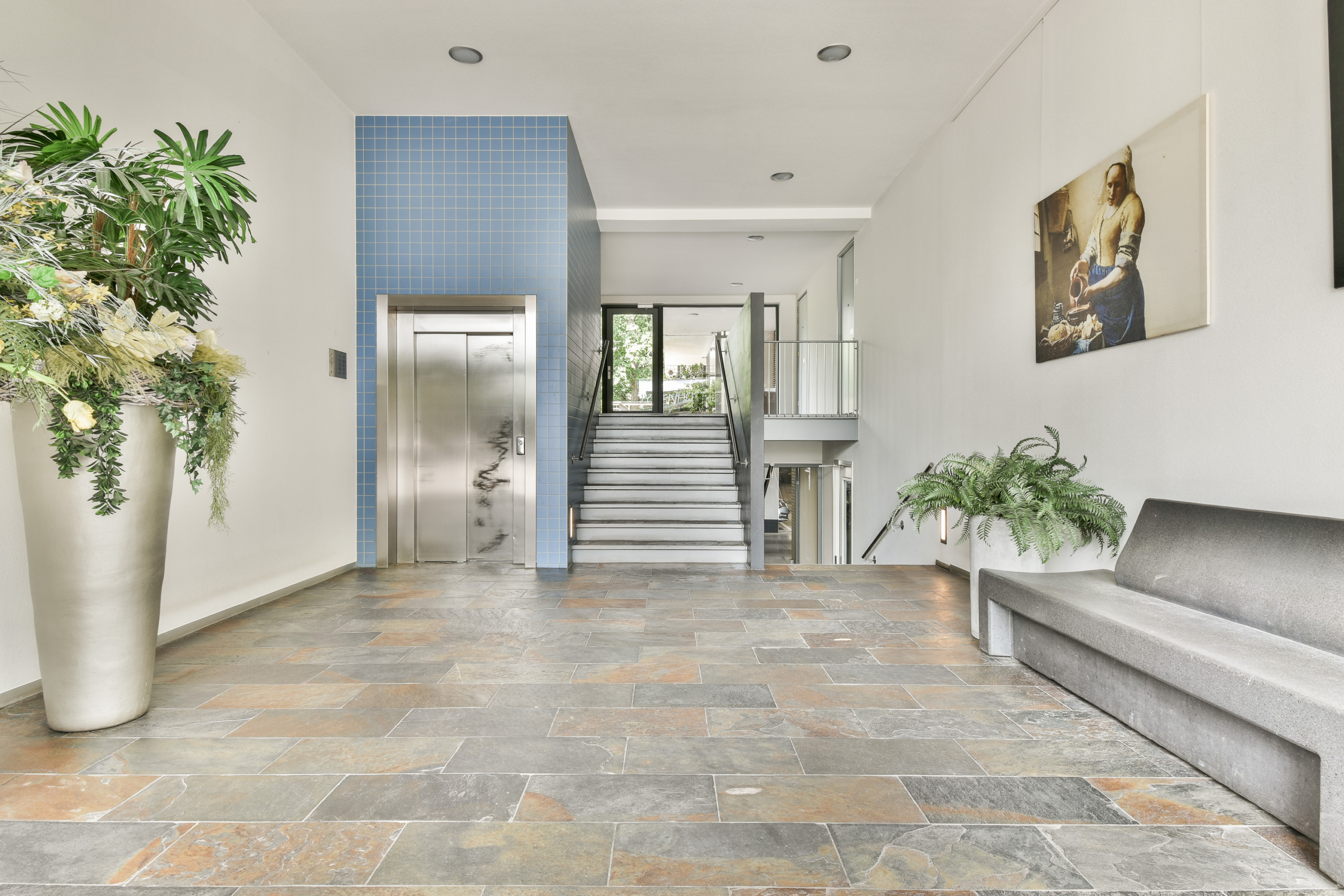 Via de gemeenschappelijke en goed onderhouden entree kom je via de lift aan bij de eerste verdieping, aan de linkerkant het privé-entree van het appartement. Binnen wacht een ruime hal die toegang geeft tot alle vertrekken.