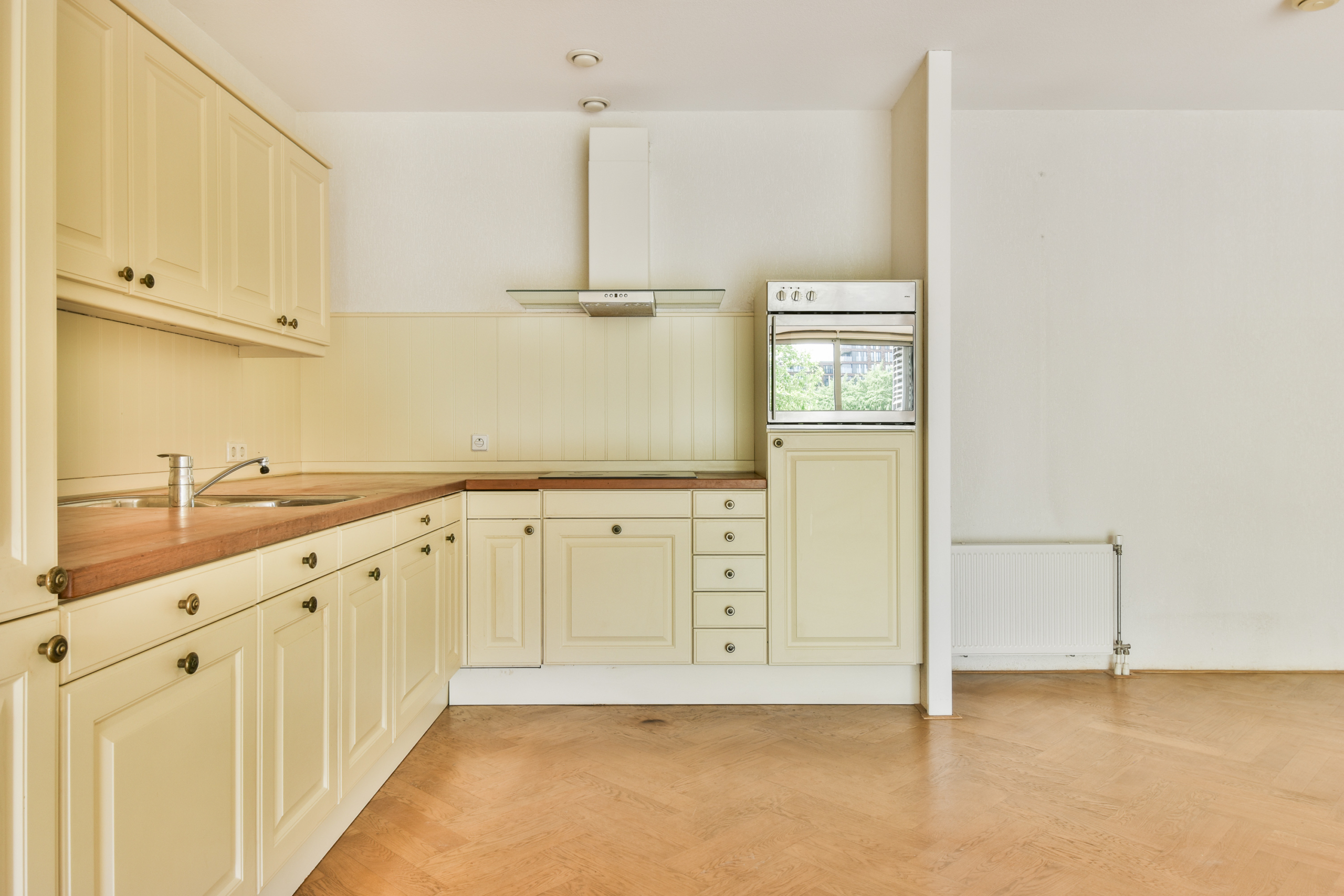 De lichte woonkamer is dankzij de grote raampartijen opvallend zonnig en sfeervol. De serre aan de voorzijde zorgt voor een fijne extra ruimte, ideaal als werkplek, leeshoek of eetkamer. De open keuken is voorzien van inbouwapparatuur.