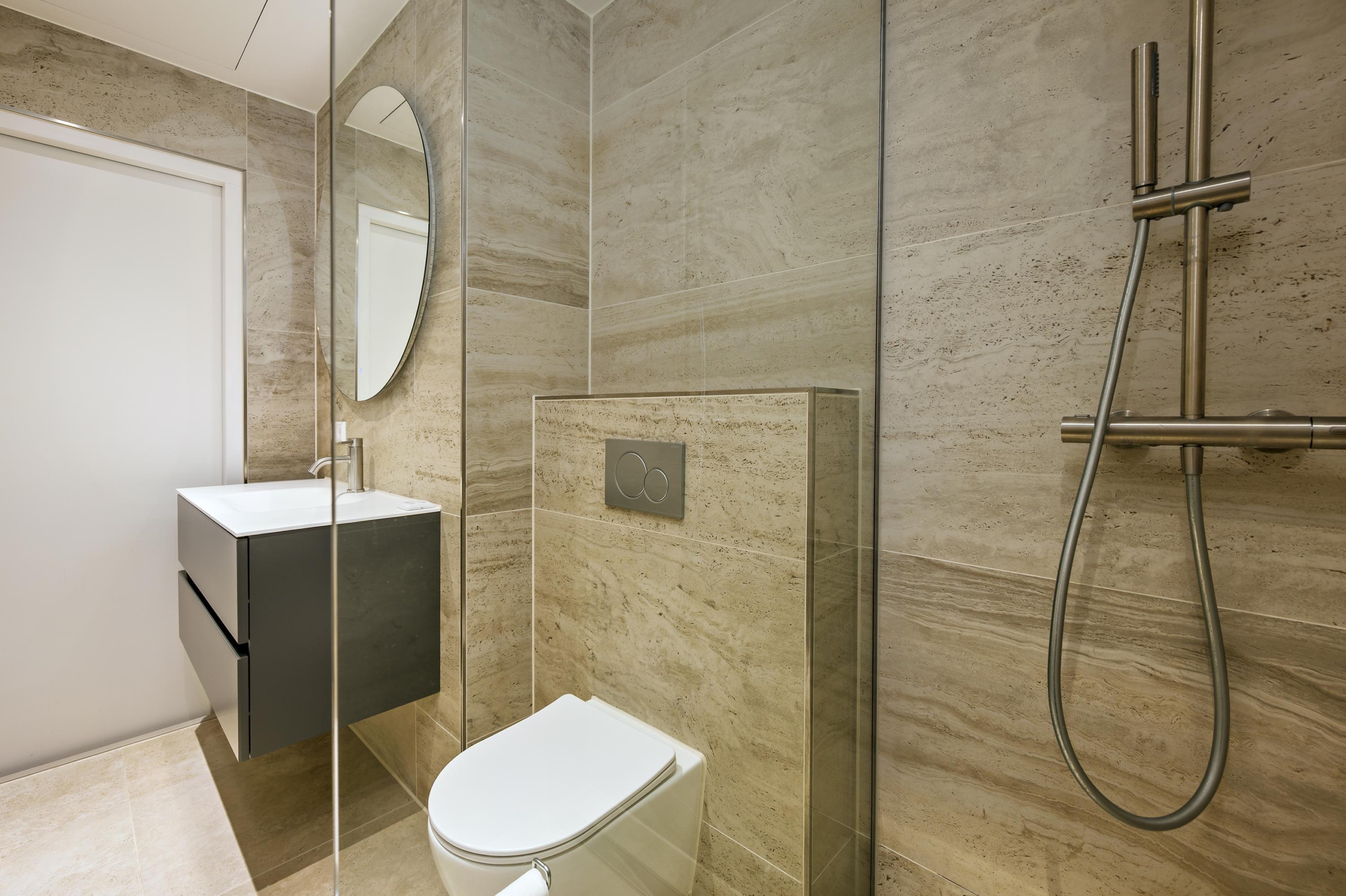De keuken is compleet uitgerust met o.a. een vaatwasser, koel/vriescombinatie en ruim veel bergruimte. De badkamer met een ruime inloopdouche, toilet en wastafelmeubel heeft een luxe uitstraling.