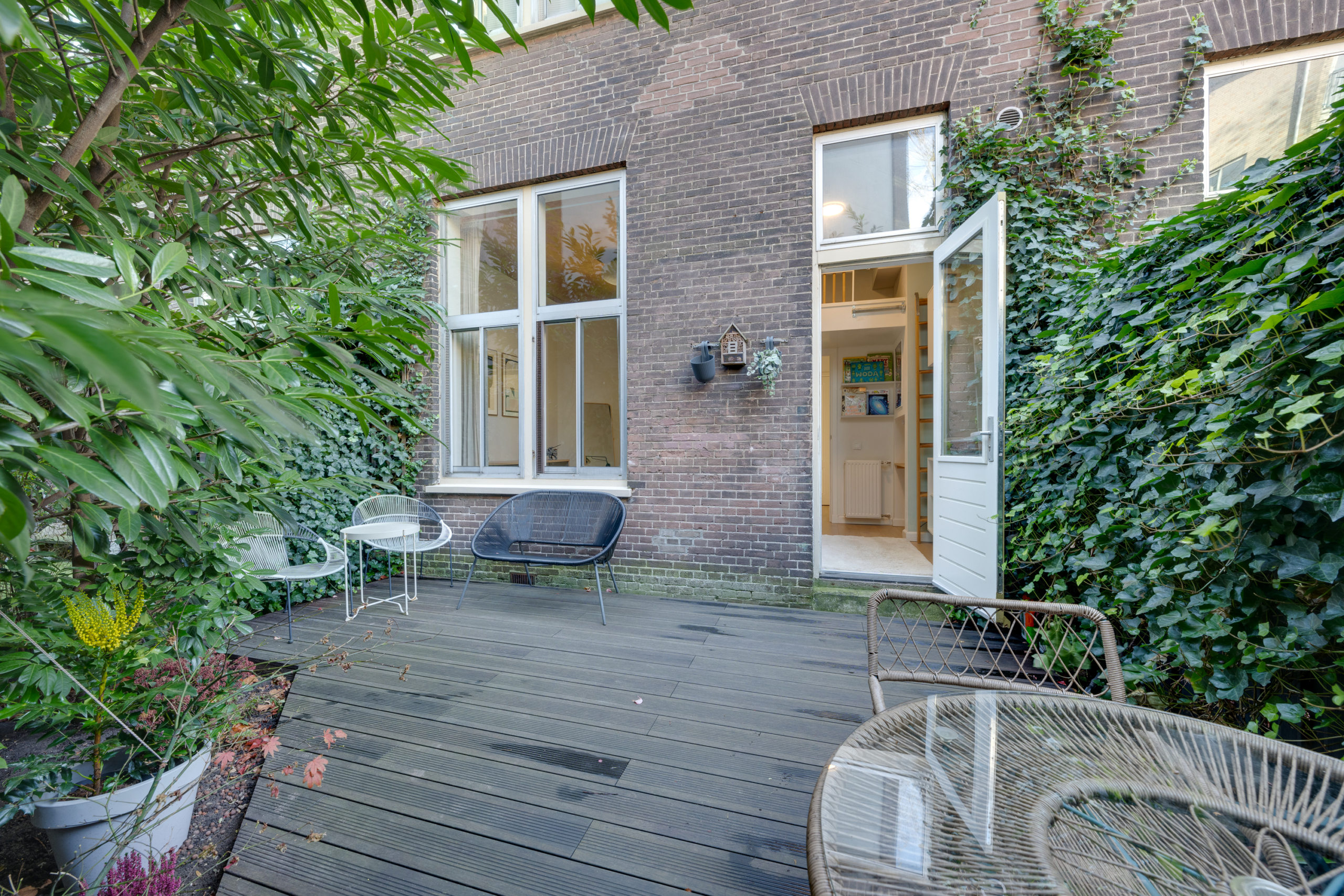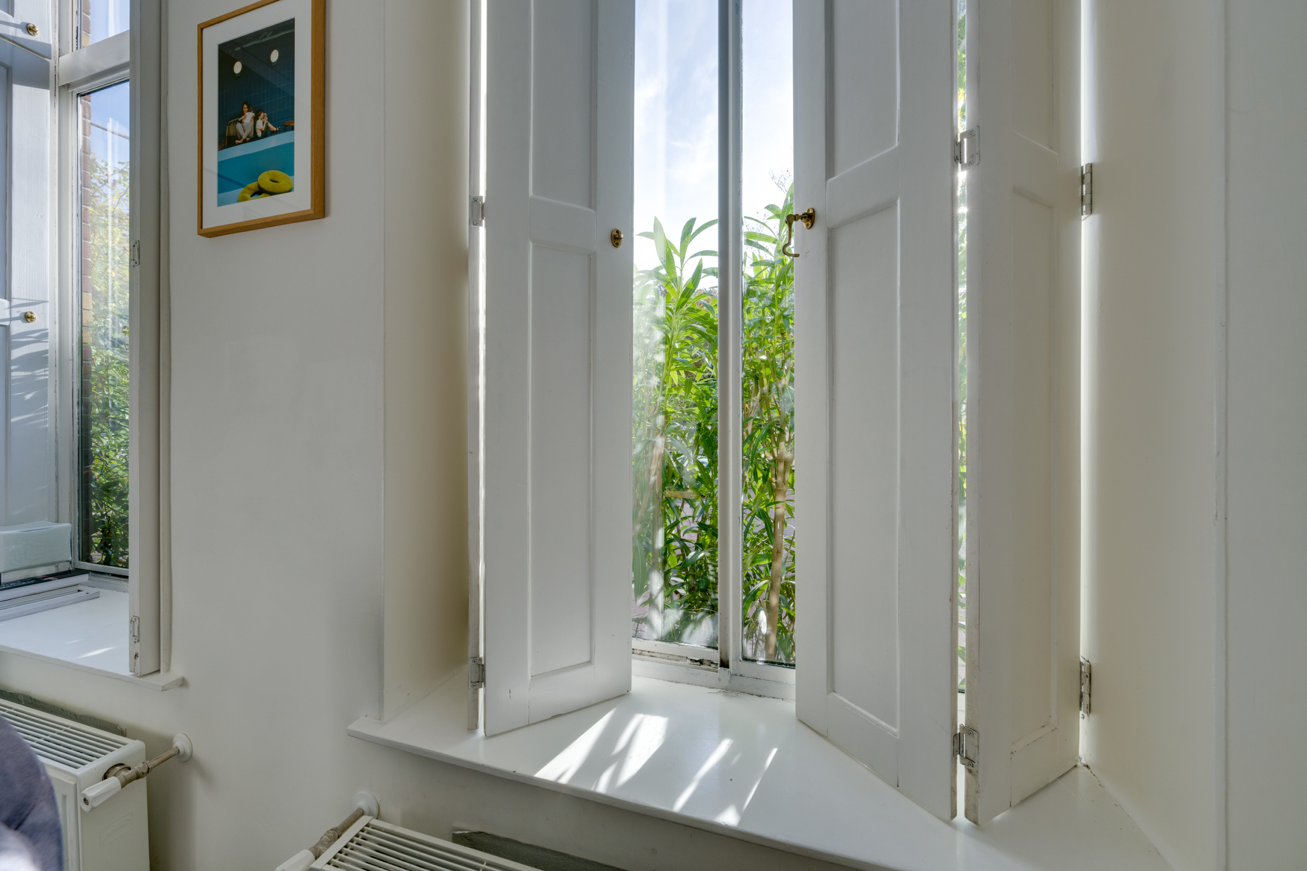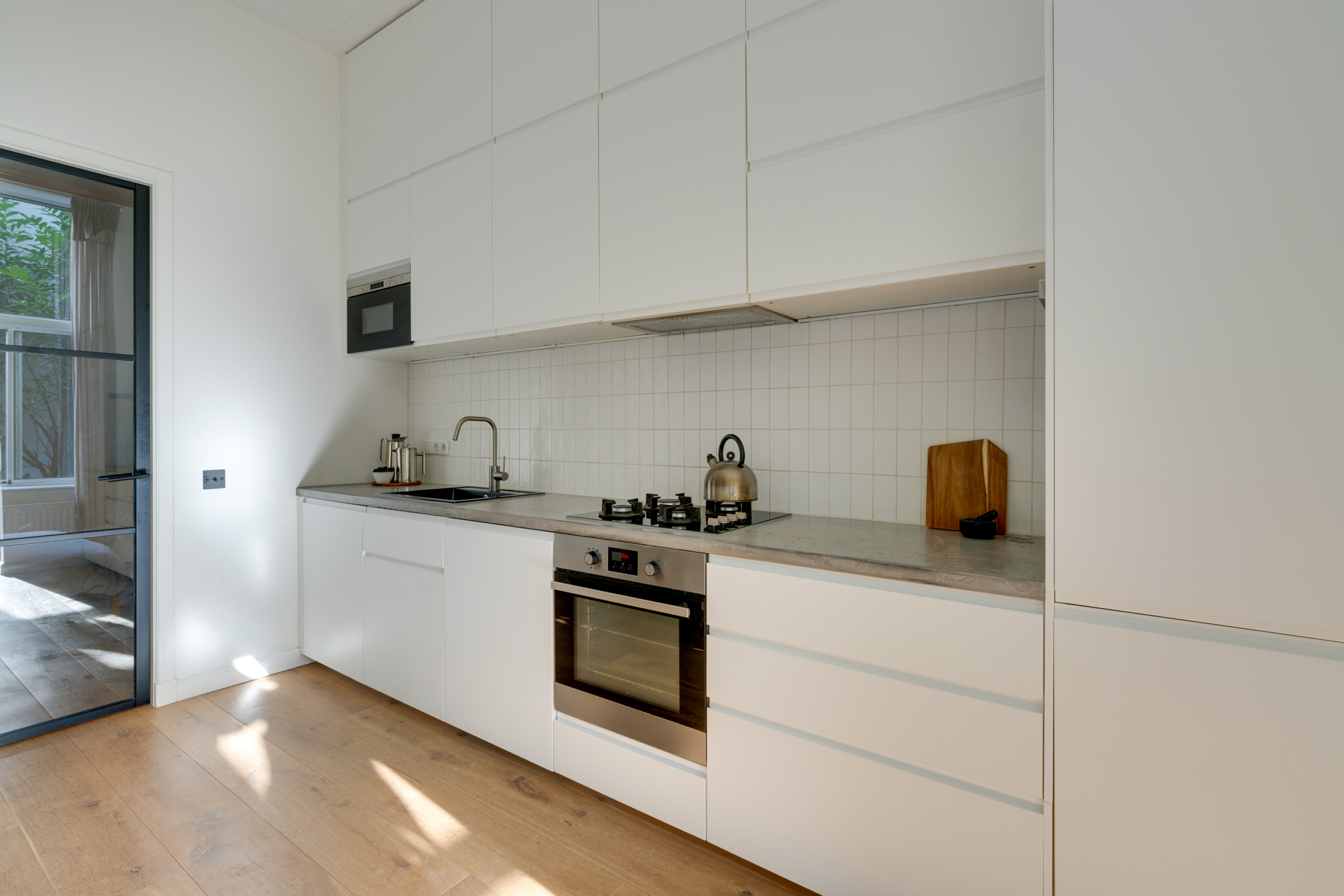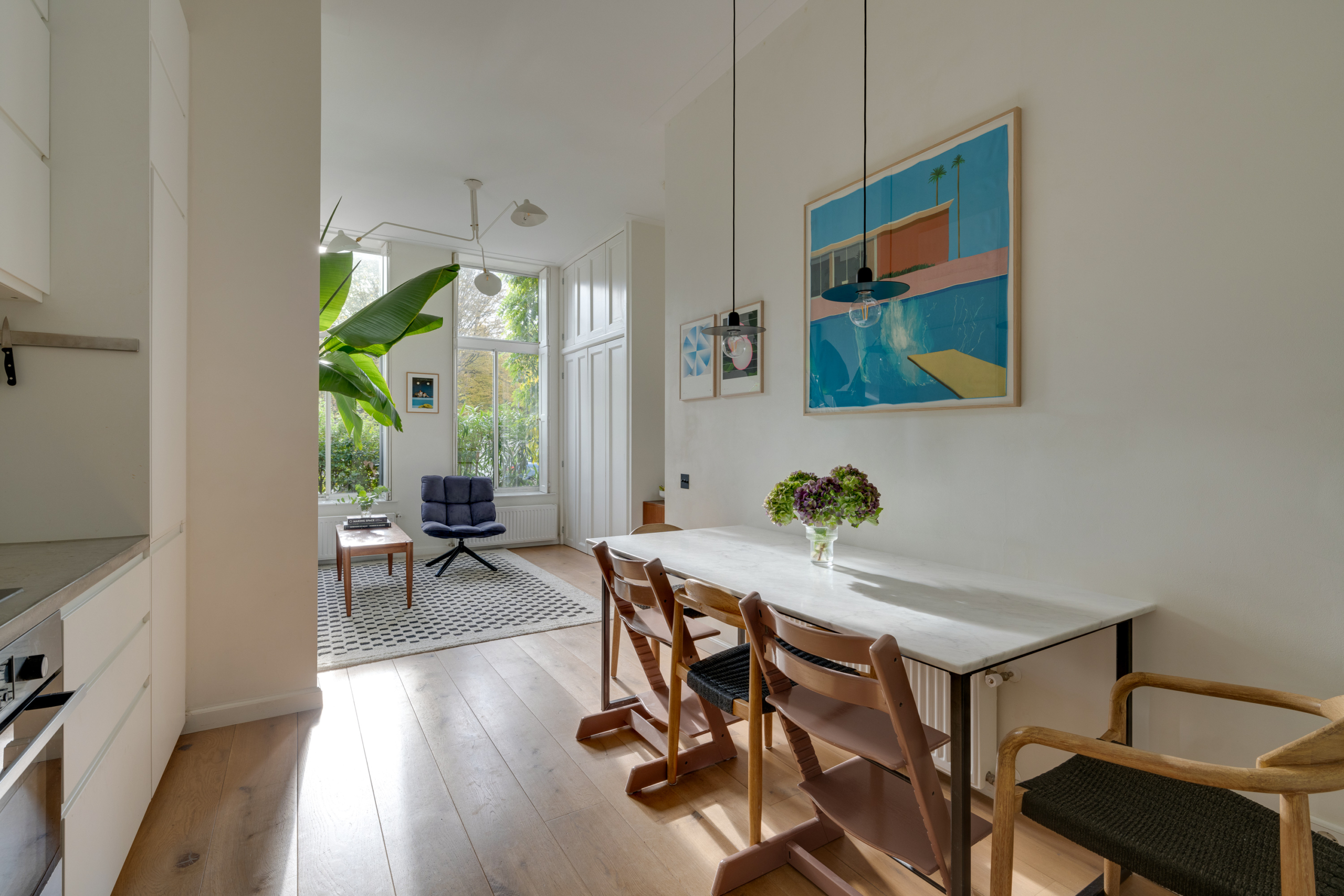 Sunny and modern 3-room ground-floor apartment with a garden and a separate storage unit, beautifully located on the waterfront of Hugo de Grootkade. This turnkey, fully renovated home with exceptionally high ceilings (3.23 m!) offers everything for comfortable and stylish living in the popular Frederik Hendrikbuurt area of Amsterdam.