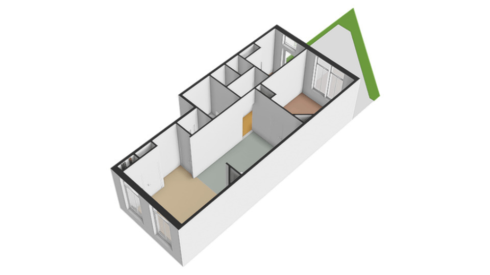 Een kleine tussenhal geeft toegang tot de tweede slaapkamer, de badkamer en het separate toilet.