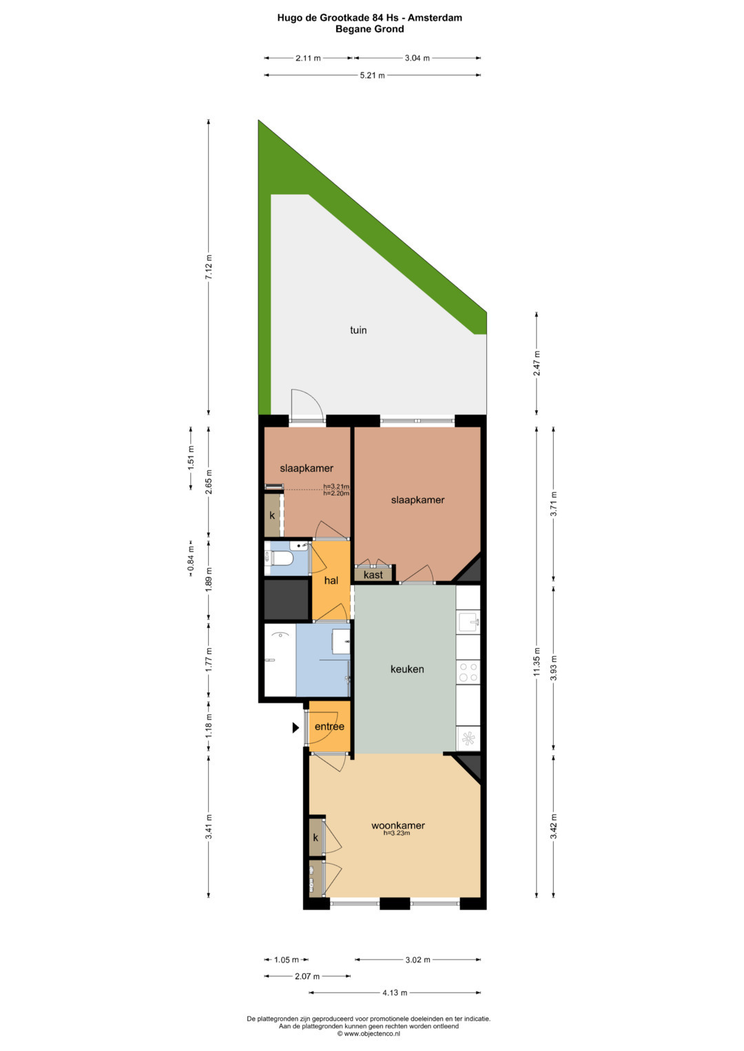 Benedenwoning van 53m² (meetrapport aanwezig).