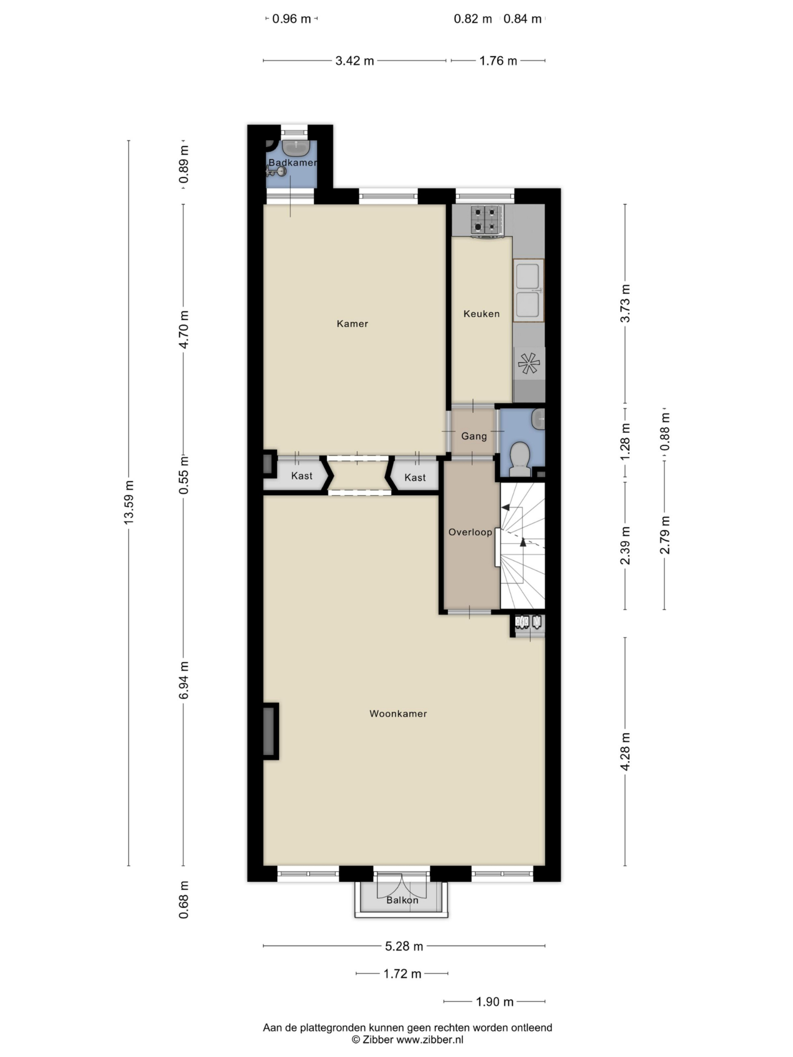 Private entrance with stairs to the first floor. At the front is a bright living room with a beautiful view of the Ringvaart canal. The back room – with an en-suite bathroom – offers additional living space and possibilities. The separate kitchen is located at the rear, and a separate toilet is located in the hallway. At the front, you have access to a charming balcony, perfect for enjoying coffee or drinks in the sun.