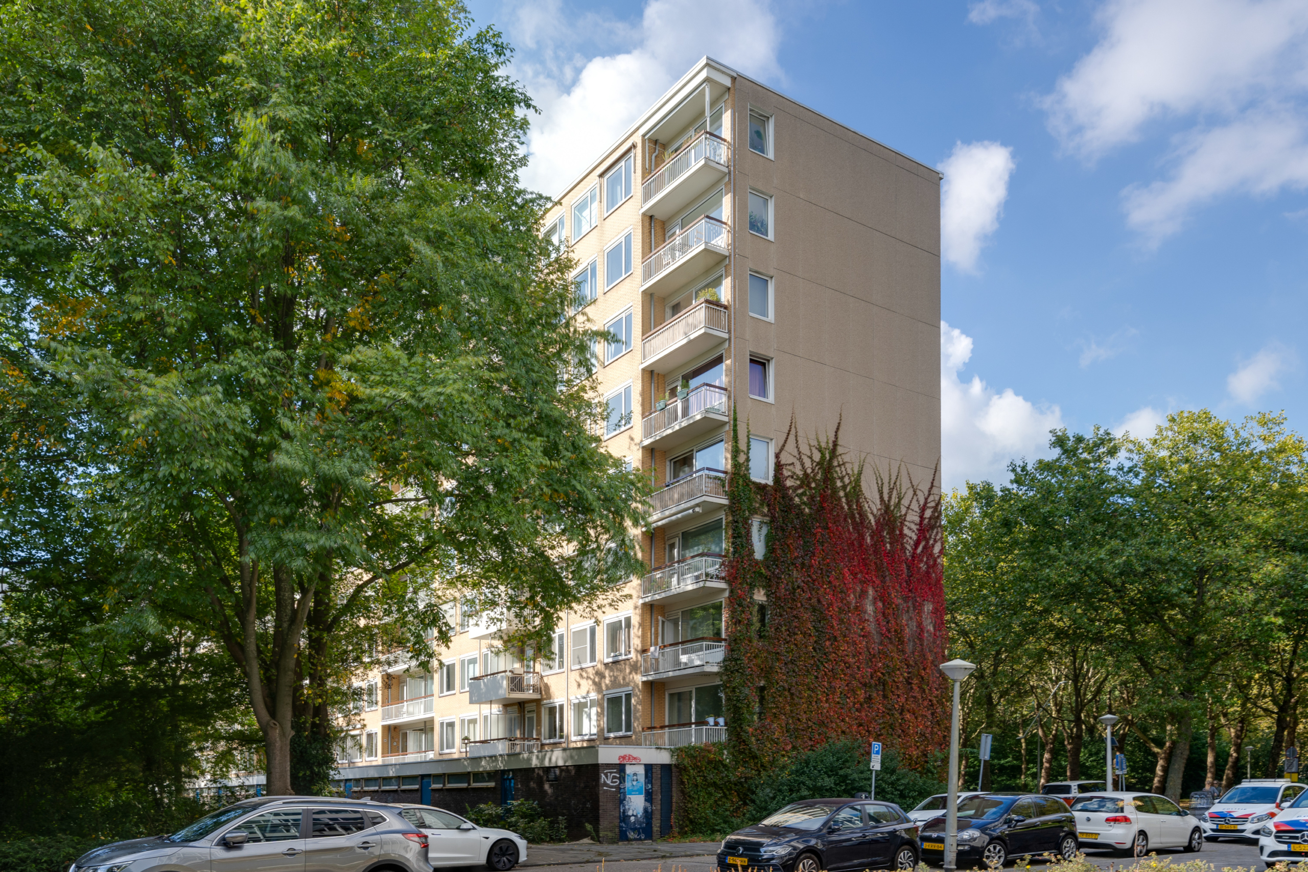 Opposite the apartment complex is the Gijsbrecht van Amstelpark, and the Amsterdamse Bos is a 4-minute bike ride away. The lively and fashionable Groot Gelderlandplein shopping centre, with excellent parking facilities and a wide range of shops, including Marqt, Le Pain Quotidien, a Nespresso shop, Hema and an Albert Heijn XL, is within walking distance. Furthermore, in the immediate vicinity, you will find the offices on the ZuidAs, the Vrije Universiteit, the VU Medical Centre, schools, and childcare facilities. In the Amstel Park, at the end of Van Nijenrodeweg, the ‘Pure Market’ is held every second Sunday of the month. There are various tram and bus connections in the immediate vicinity (including tram line 5 and express tram 25), and you can reach Station Zuid/WTC and NS Station Rai in just a few minutes. Convenient location in relation to the motorways (Ring A-10/A-4). You can be in the centre of Amsterdam within 10 minutes and at Schiphol Airport in 25 minutes.