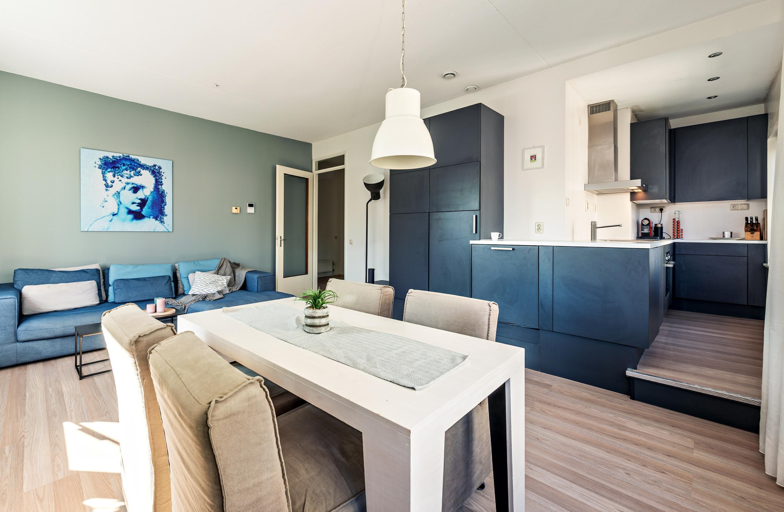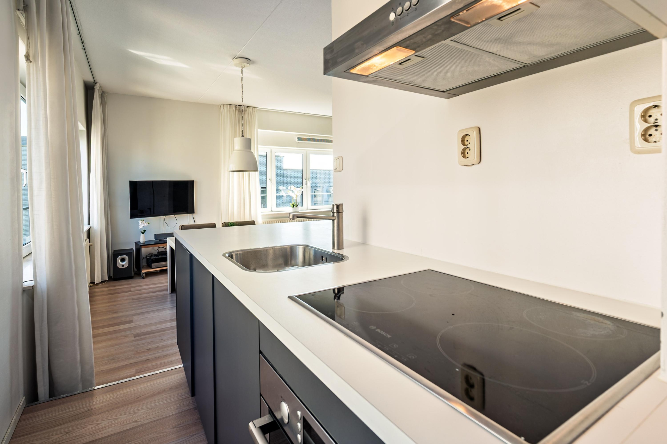 Bij binnenkomst valt direct de prettige indeling op. De L-vormige hal geeft toegang tot alle vertrekken. In de ruime en lichte woonkamer ben je omringd door grote ramen. De moderne open keuken is compleet uitgerust met o.a. een elektrische kookplaat, combimagnetron, vaatwasser en koelkast — perfect voor iedereen die van gemak houdt.