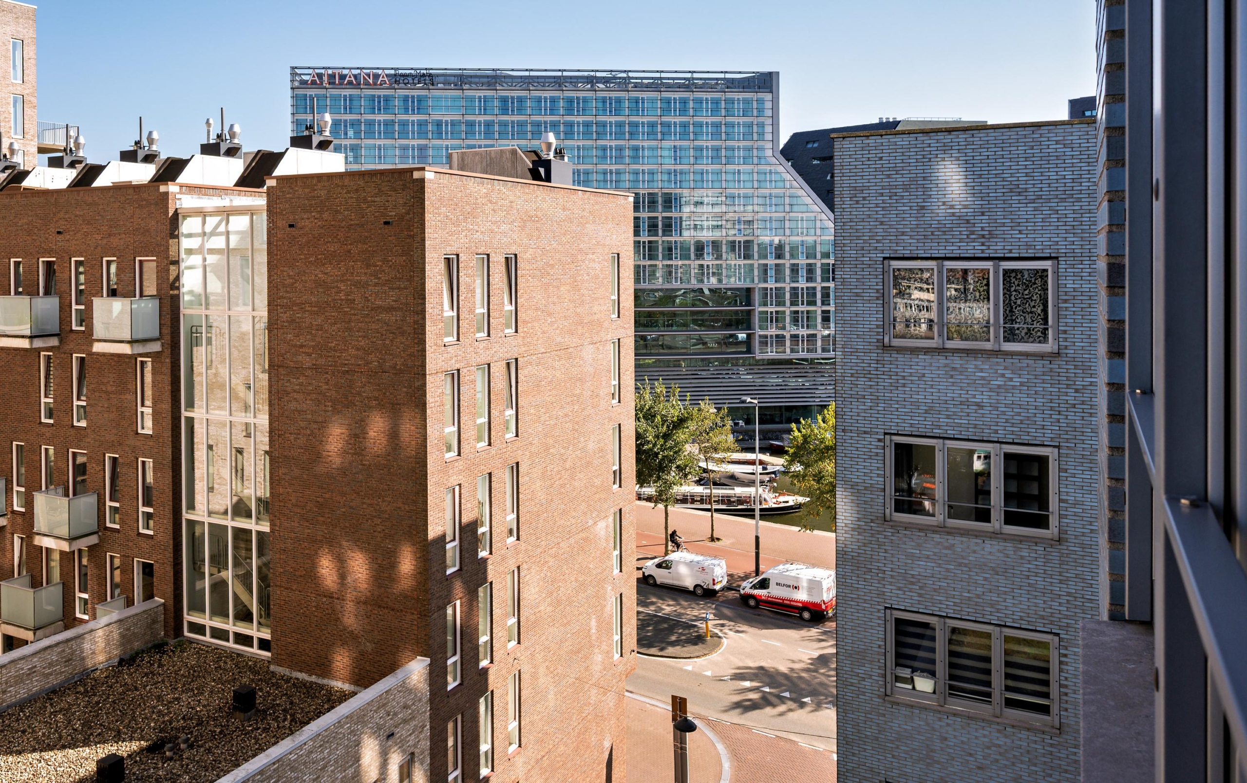 Here you live in a unique location, with stunning views over the city and the IJ from the communal rooftop terrace. Within walking distance of Central Station, the lively Haarlemmerdijk and Haarlemmerstraat, full of shops and eateries. Albert Heijn and Ekoplaza Foodmarqt are just around the corner. Excellent public transport connections and quick access to the A10 via the Spaarndammer Tunnel.