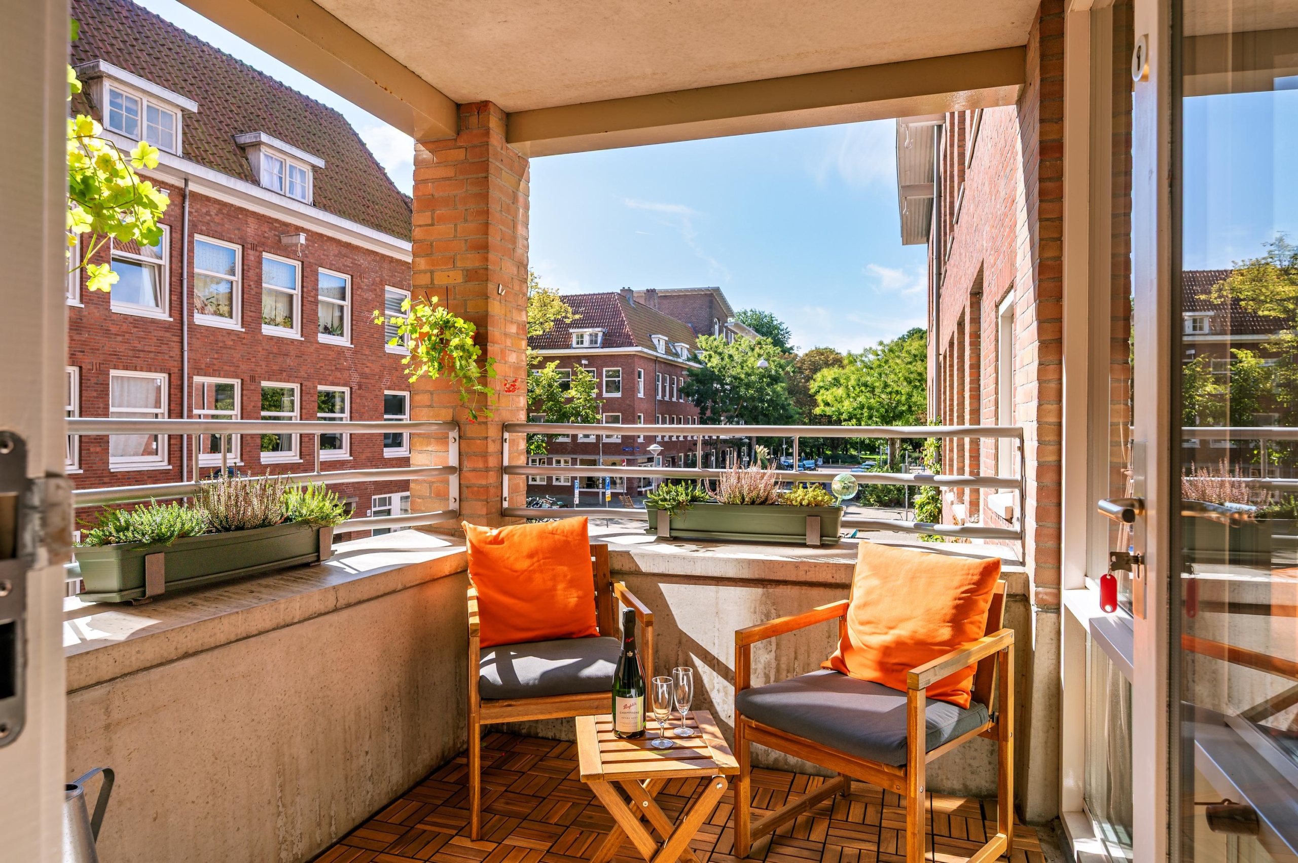 The west-facing balcony overlooks the beautiful Rembrandtpark – a place to enjoy peace, sunshine, festivals, sports activities, and more – all in a green environment just steps from your home.