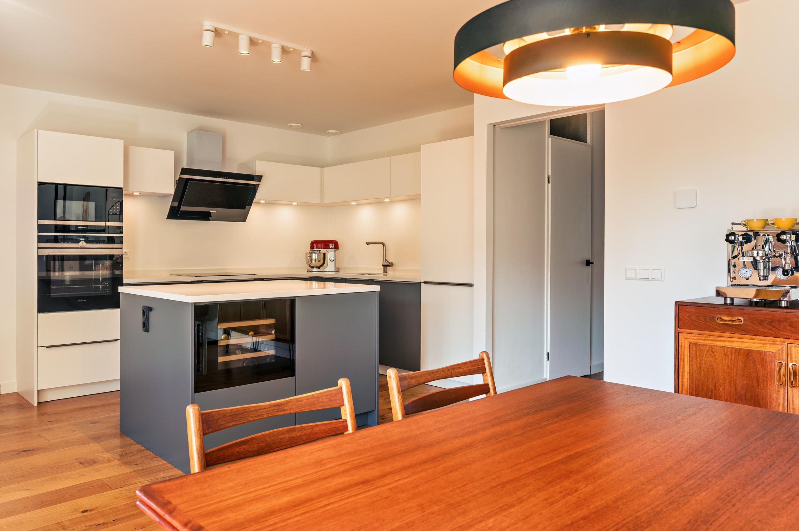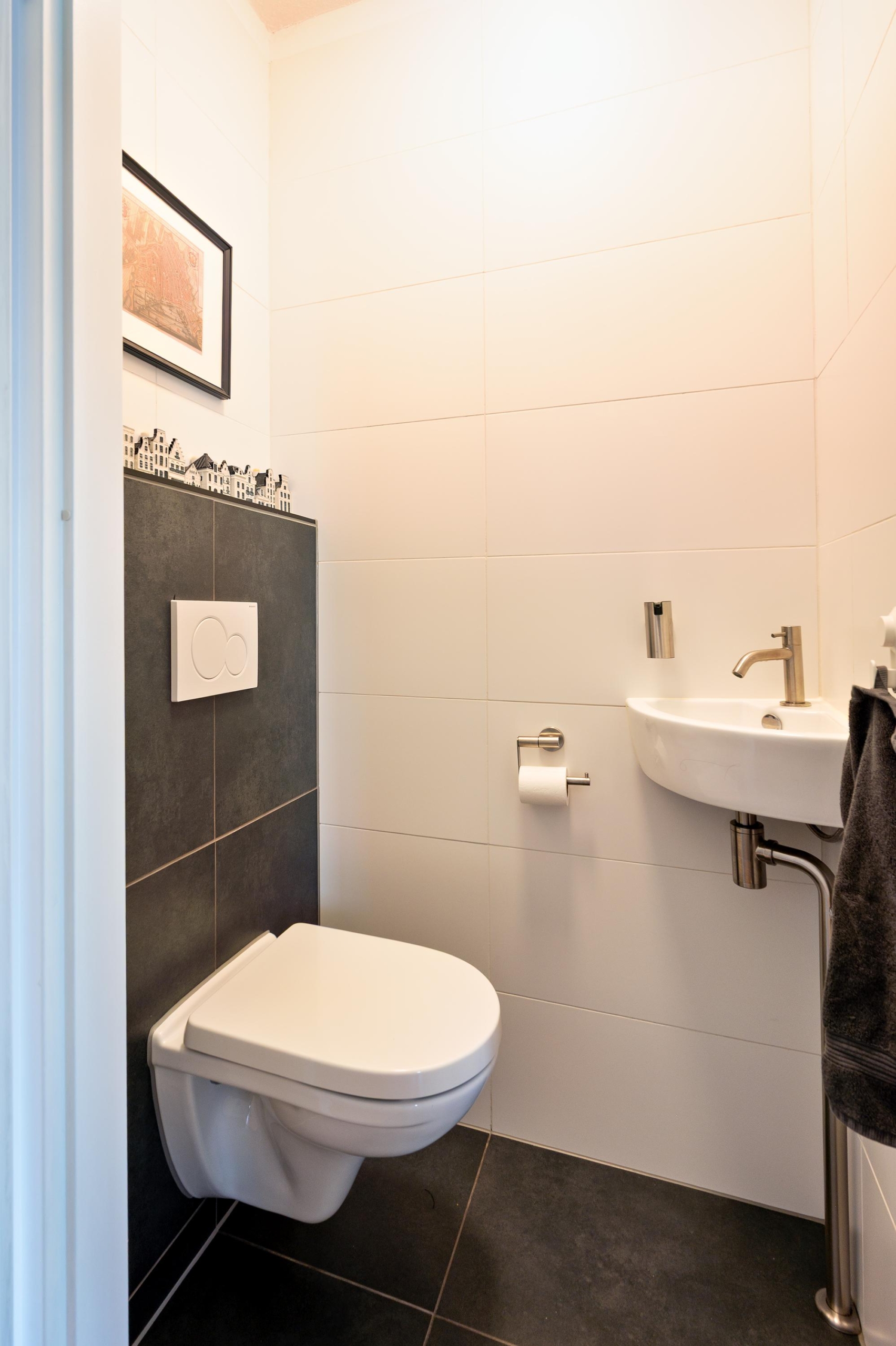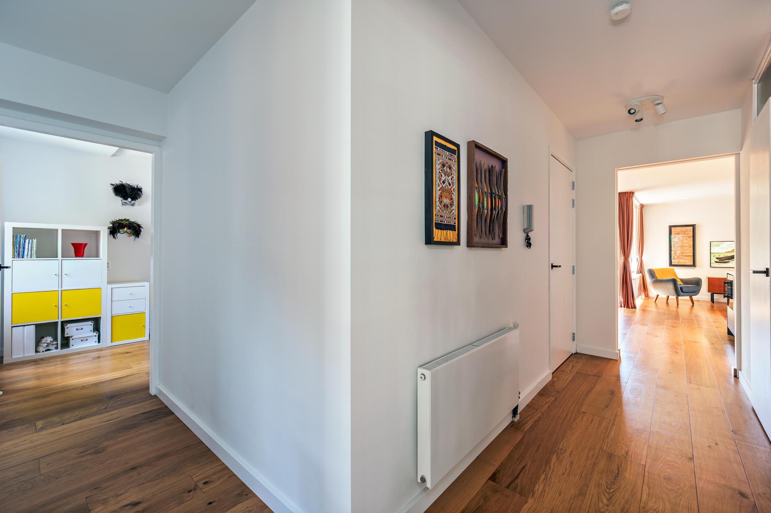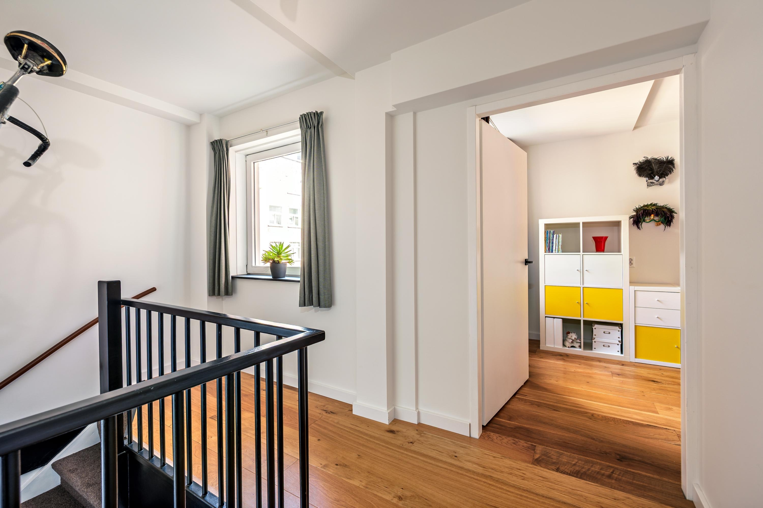 On the first floor, the living room with open kitchen forms the heart of the home. The kitchen is luxuriously finished and equipped with all built-in appliances, including a wine climate cabinet. In addition, there are three bedrooms, ample storage space, and a sunny west-facing balcony with a view of Rembrandtpark.