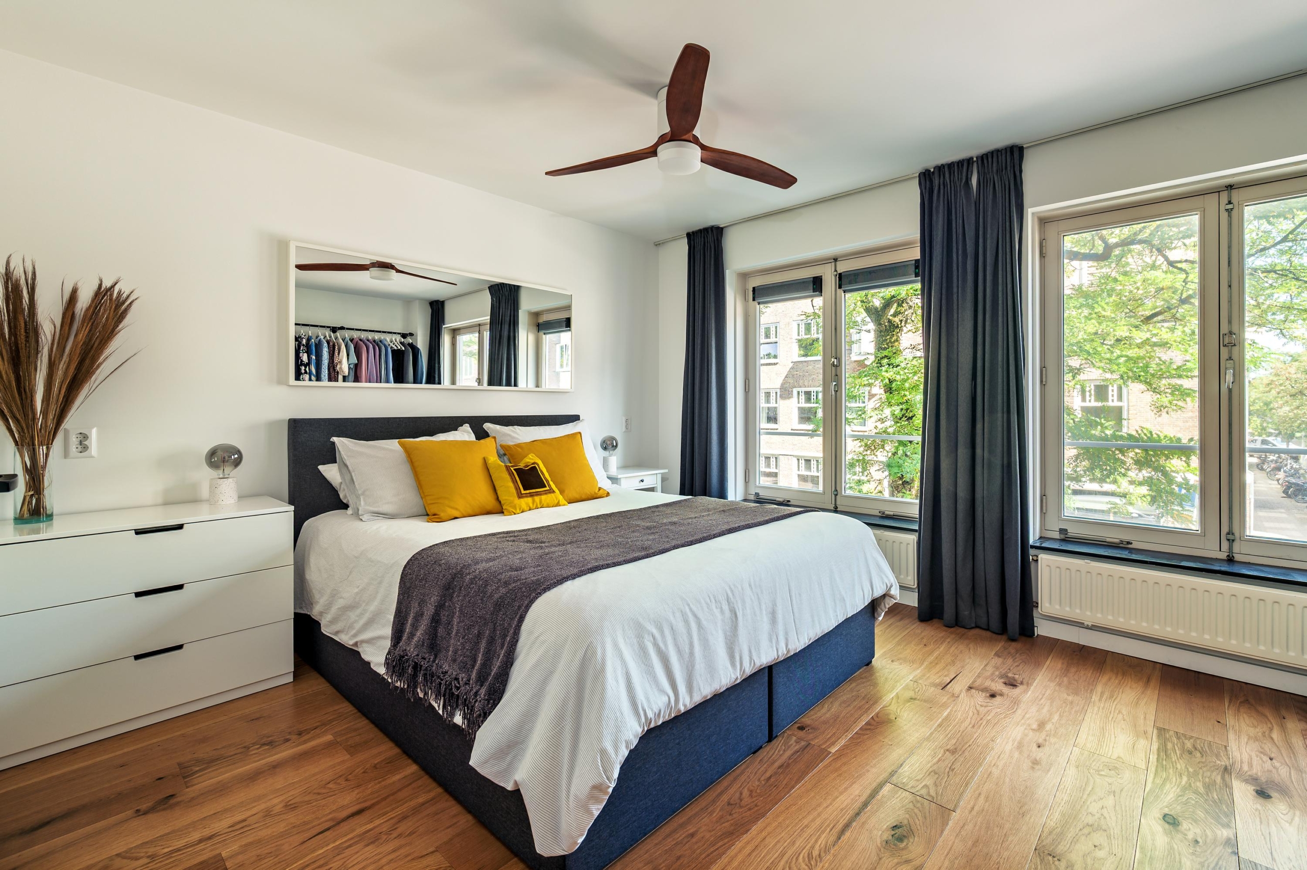 Het balkon op het westen kijkt uit op het mooie Rembrandtpark. Hier kun je genieten van rust, zon, festivals, sportieve activiteiten en meer – allemaal in een groene omgeving, op een steenworp afstand van je eigen huis.