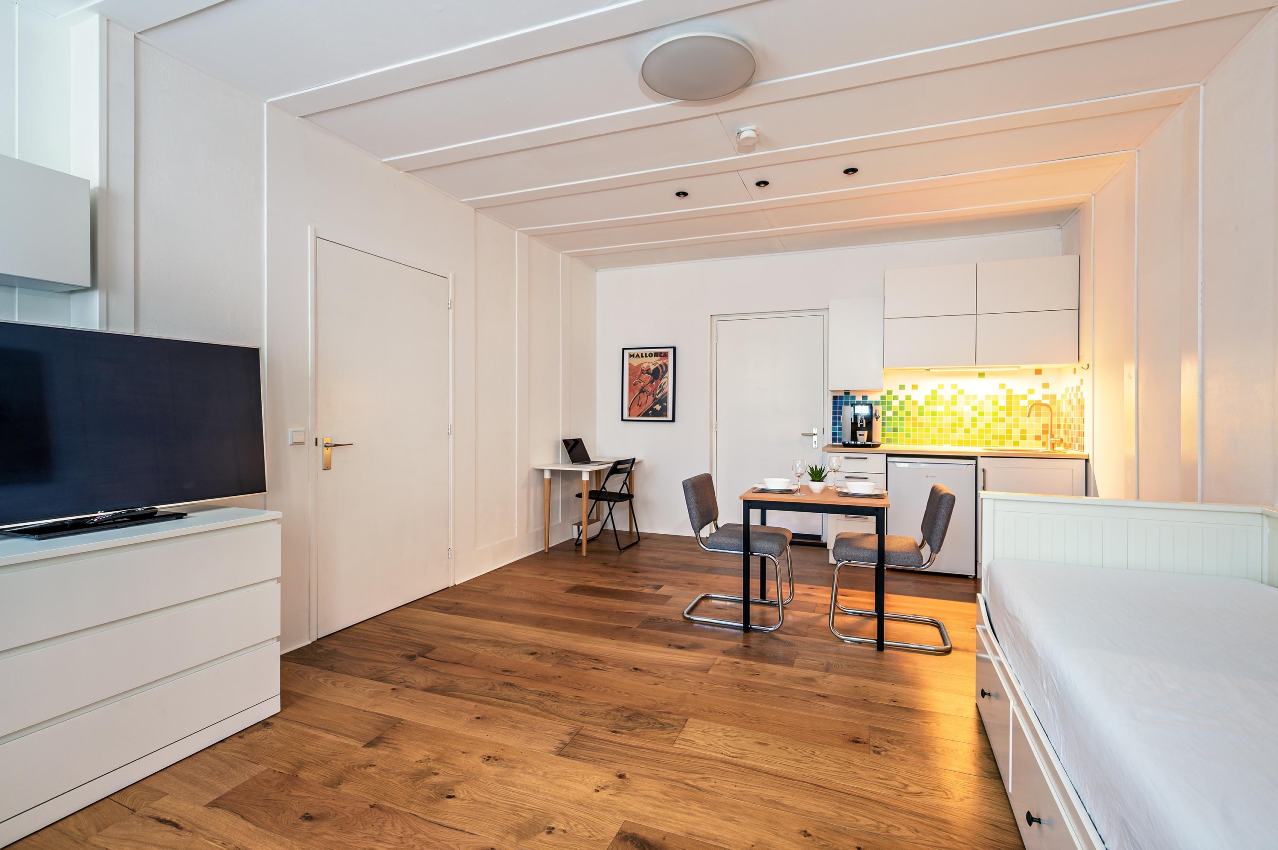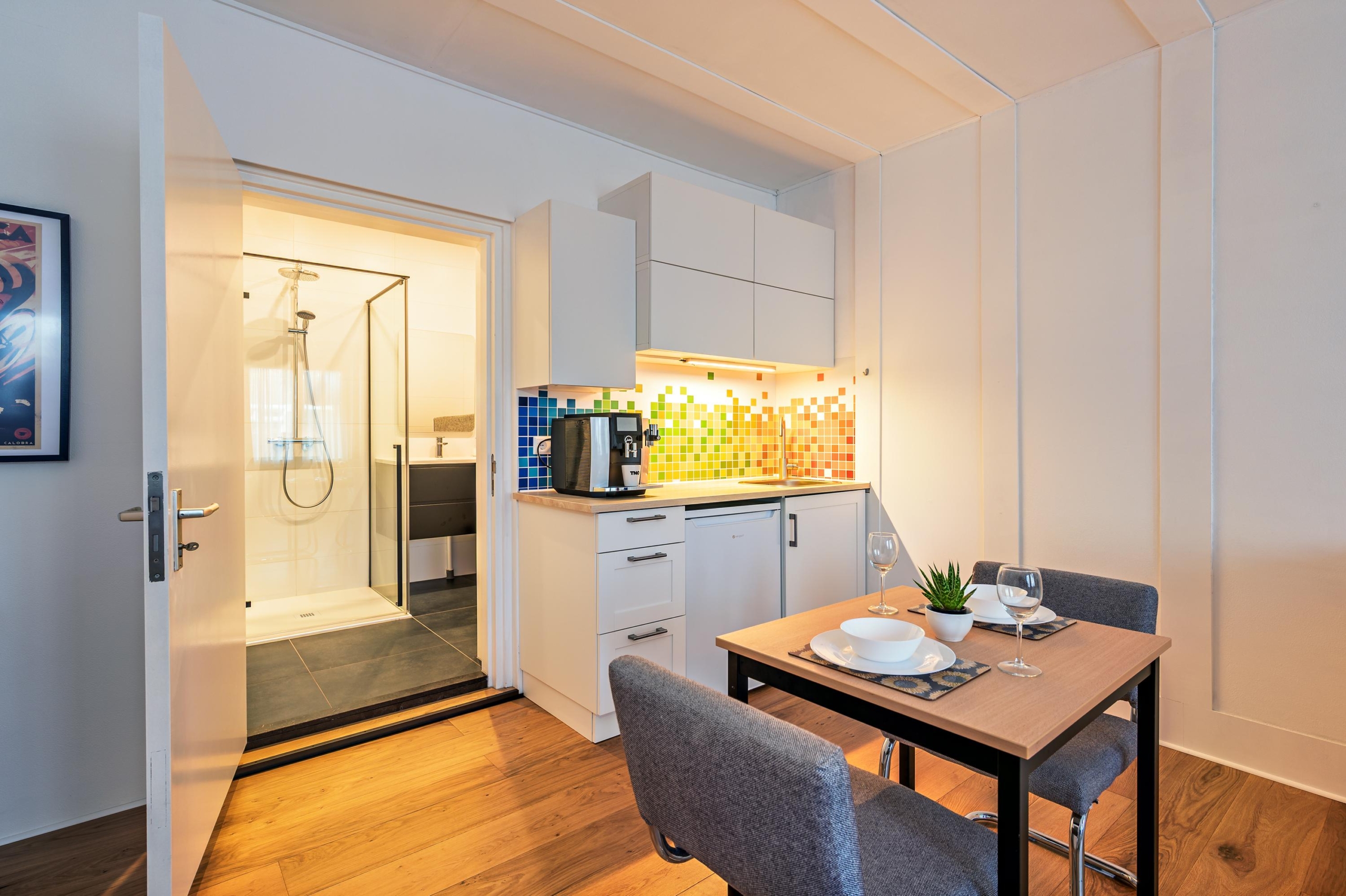 On the ground floor, next to the storage room, you’ll find a multifunctional studio of approx. 25 m² with its own entrance, kitchenette, and bathroom. Perfect as a guest room, workspace, for older children, live-in care, or (temporary) rental. Thanks to the private entrance, full privacy is guaranteed.