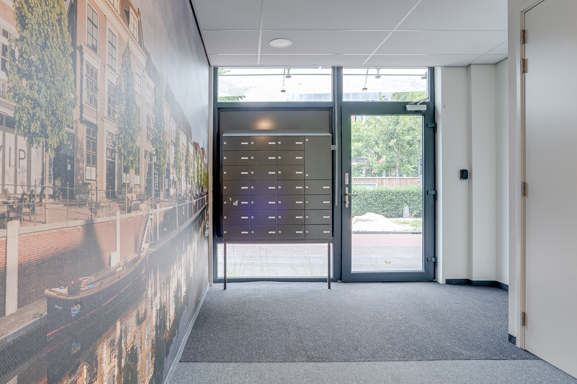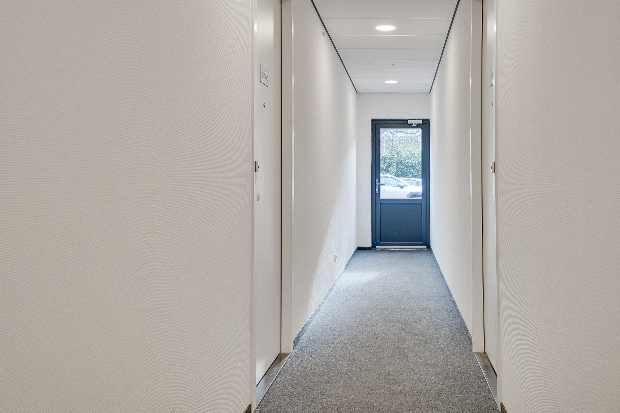 Via de centrale entree met bellentableau, brievenbussen en afgesloten toegang bereik je de nette hal met trappenhuis en lift.