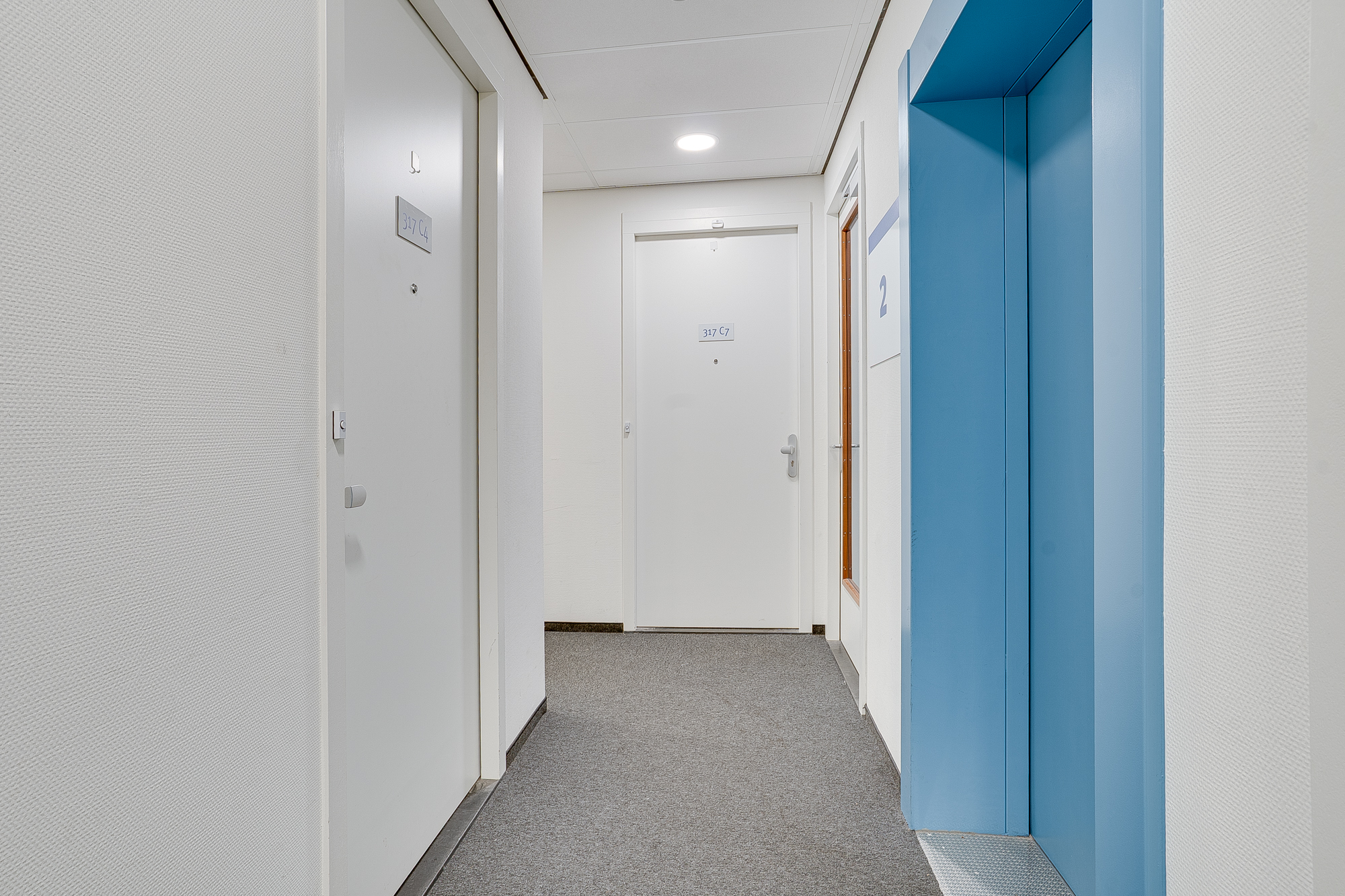 Via de centrale entree met bellentableau, brievenbussen en afgesloten toegang bereikt u de nette hal met trappenhuis en lift.