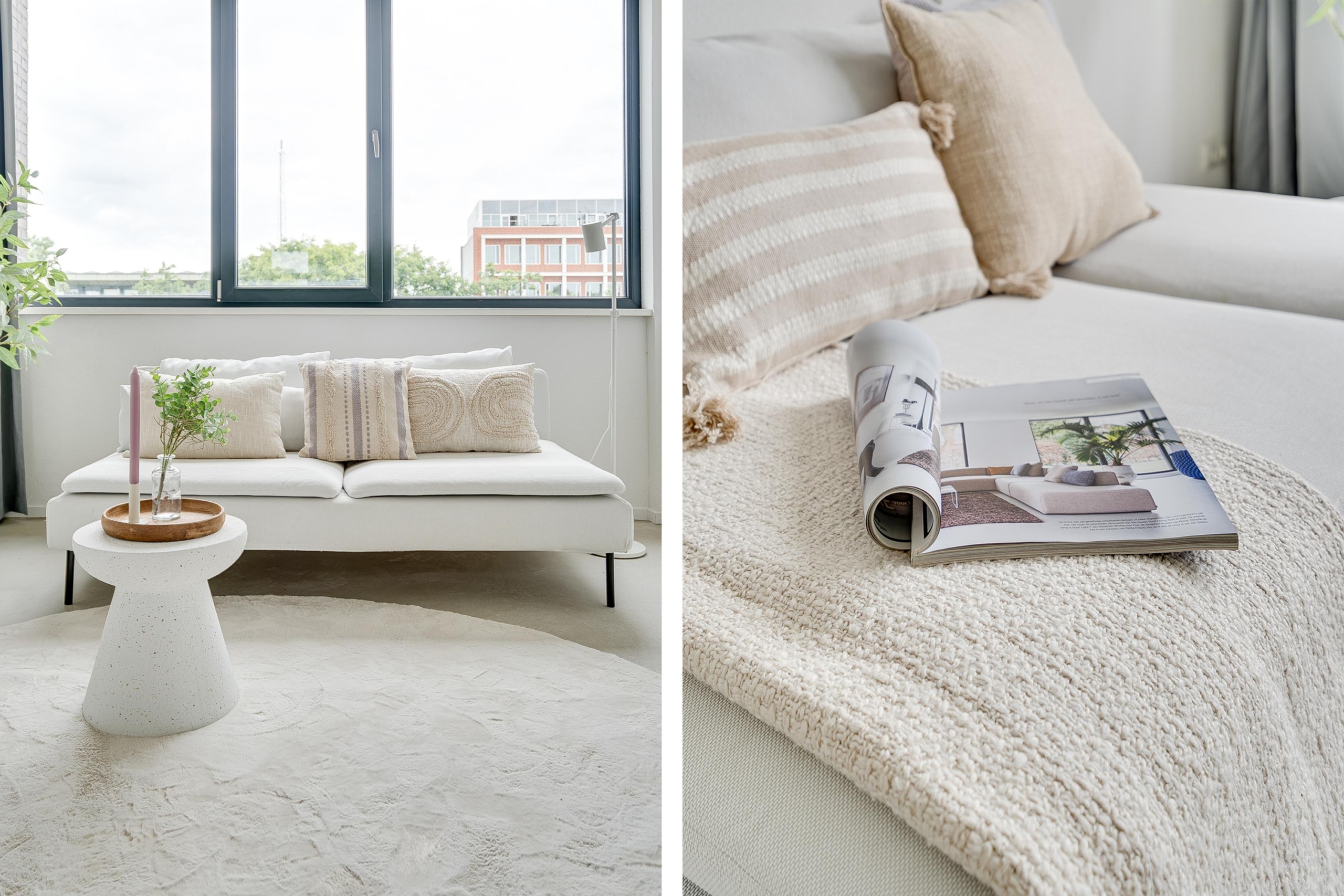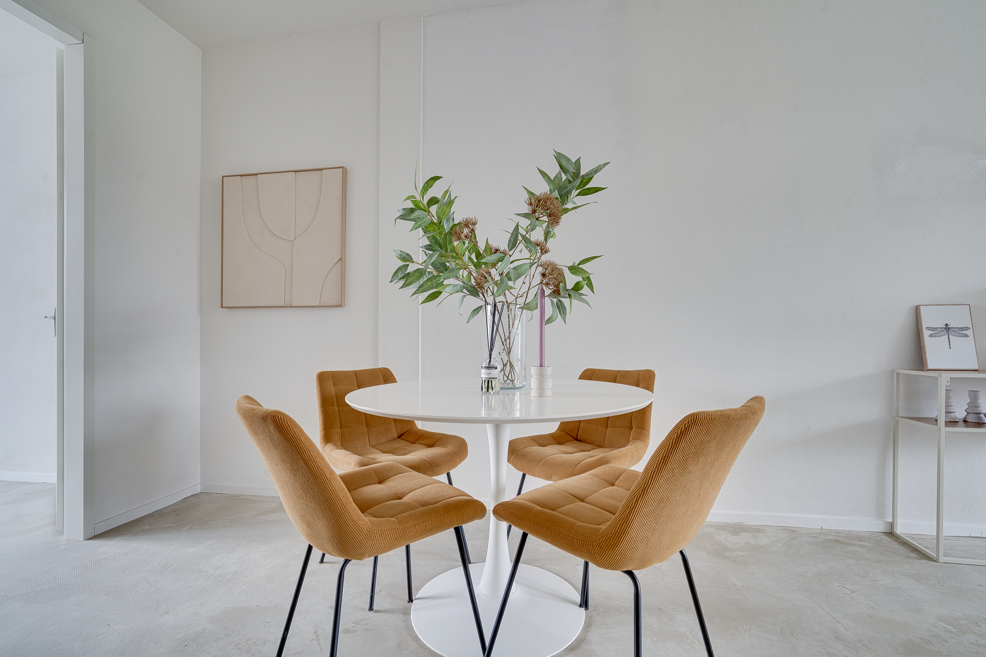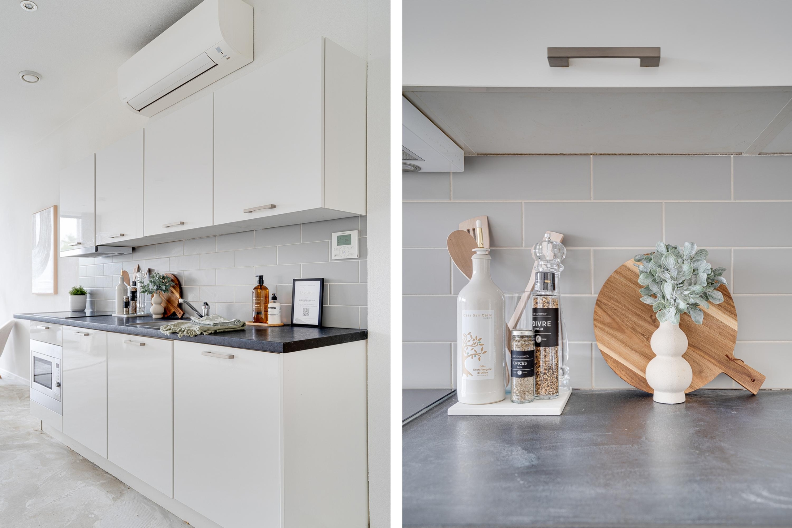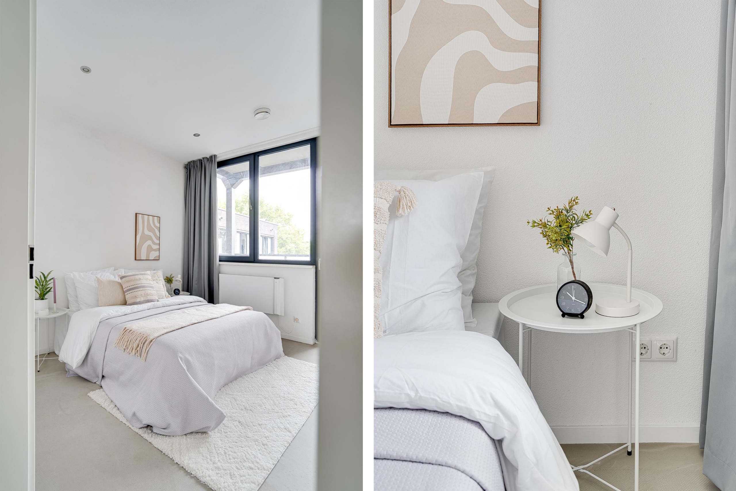 Het appartement zelf heeft een praktische en ruimtelijke indeling met veel lichtinval. De woonkamer met open keuken is royaal van opzet en biedt voldoende ruimte voor een ruime zithoek én een grote eettafel. De keuken is voorzien van een inductiekookplaat, koelkast, combi-oven en vaatwasser. De gehele woning is afgewerkt met een recent geëgaliseerde vloer (klaar om direct een vloer naar wens op aan te brengen), spuitwerk wandafwerking en ingebouwde, dimbare spots.