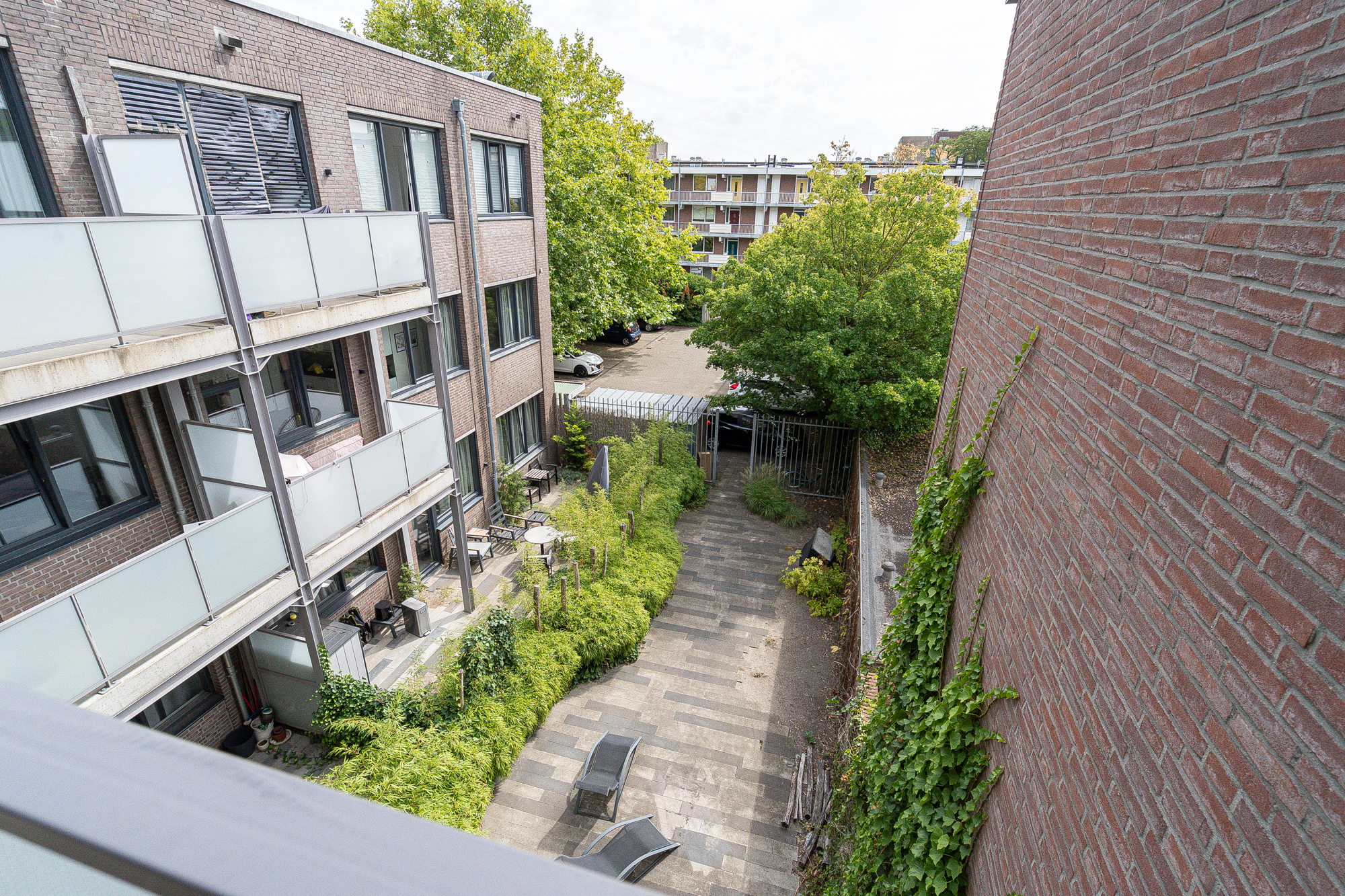 Het appartement is gelegen op de tweede verdieping van een verzorgd appartementencomplex met lift, gezamenlijke fietsenstalling, gezamenlijk dakterras en een fraaie gemeenschappelijke tuin. Het appartement heeft ook een ruim eigen balkon! Vanuit de woonkamer kijkt u uit over de groene singel, terwijl u aan de achterzijde – vanaf het ruime balkon – kunt genieten van rust met zicht op het achterliggende groen.