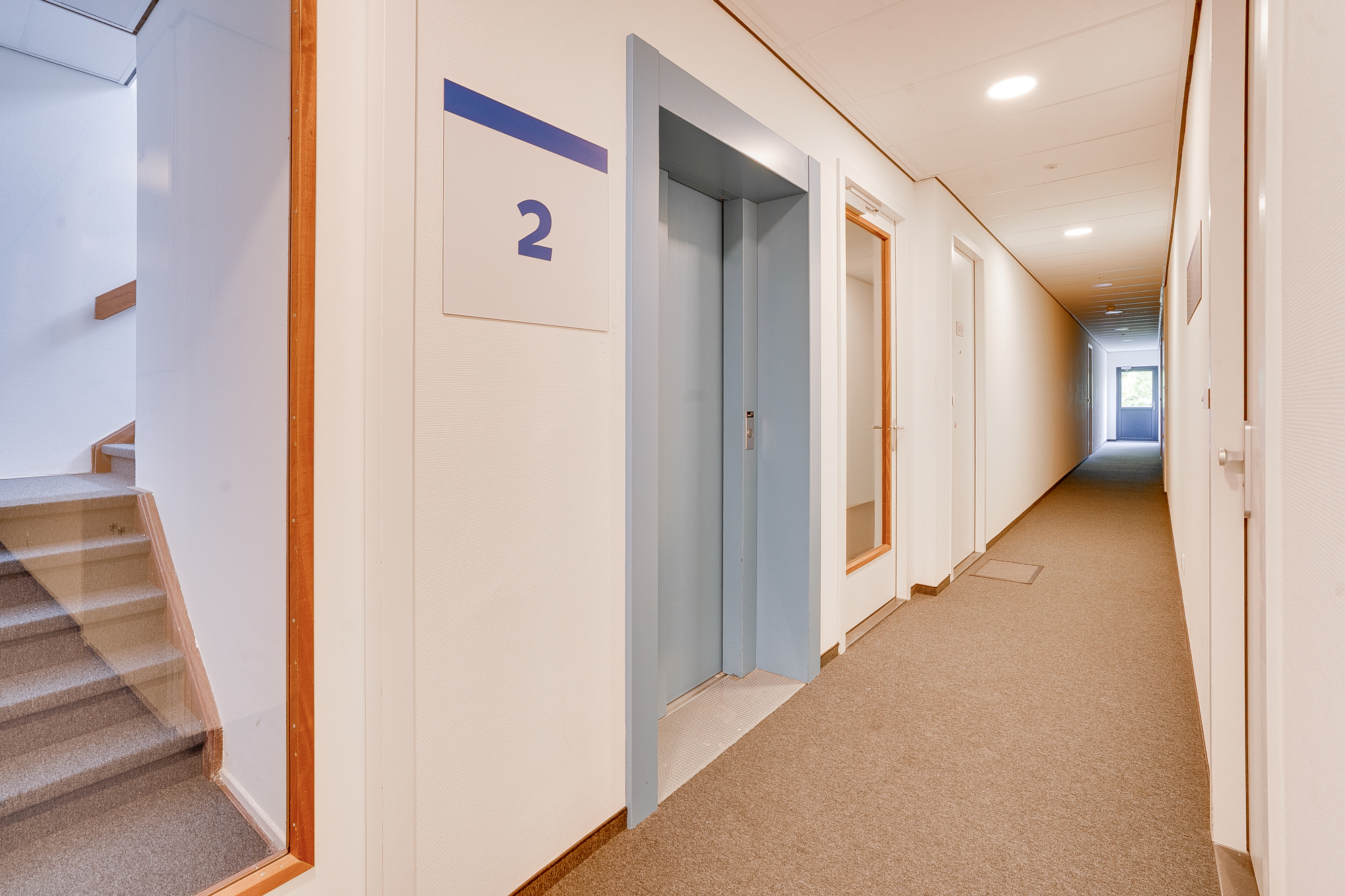 Via de centrale entree met bellentableau, brievenbussen en afgesloten toegang bereikt u de nette hal met trappenhuis en lift.