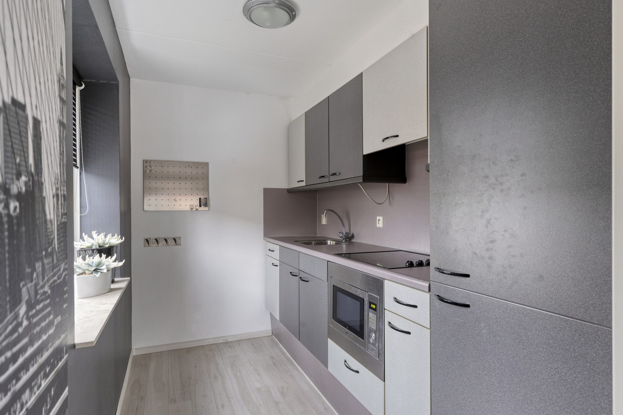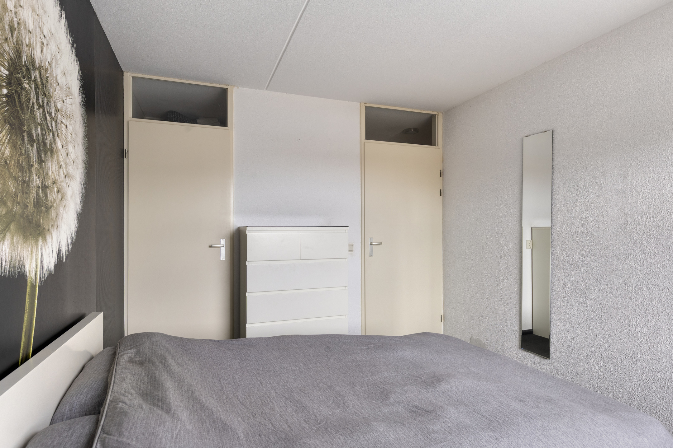 Bij binnenkomst van dit appartement kom je in de hal, die voorzien is van een praktische garderobe en de meterkast. Vanuit de hal heb je toegang tot alle vertrekken. De ruime slaapkamer heeft het voordeel van een extra hoekje, wat het appartement net wat meer ruimte biedt dan vergelijkbare woningen in het complex. De slaapkamer beschikt bovendien over een vaste kast, ideaal voor het opbergen van kleding en andere benodigdheden.