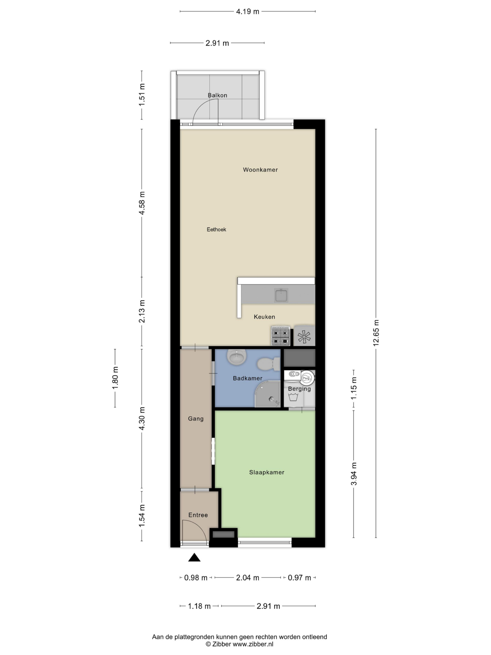 De woning beschikt over een entree, gang, een gezellige woonkamer met open keuken en een balkon met weids uitzicht, een badkamer met douche, toilet en wastafel en een slaapkamer met een inbouwkast voorzien van wasmachineaansluiting en boiler.