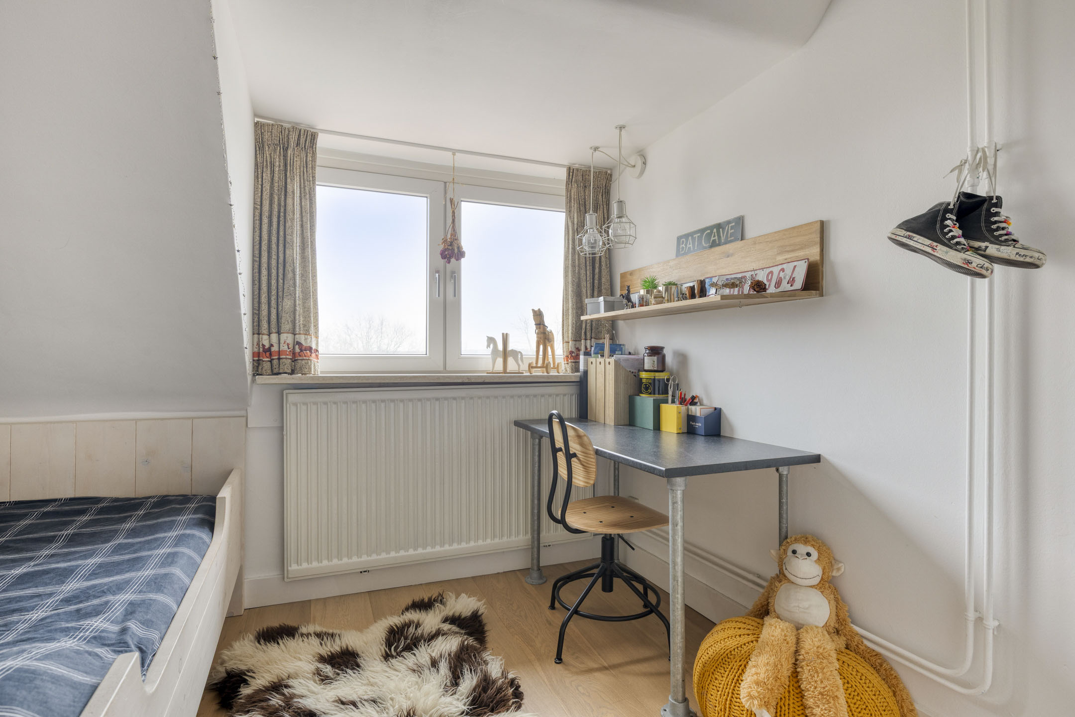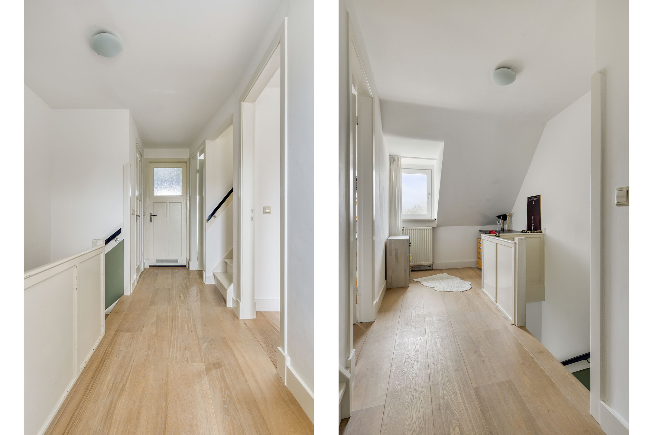De bovenste verdieping beschikt over een overloop met bergruimte en de opstelling van de cv-ketel. Daarnaast zijn hier nog twee ruime slaapkamers, waarvan één is voorzien van een speelse slaapvide.