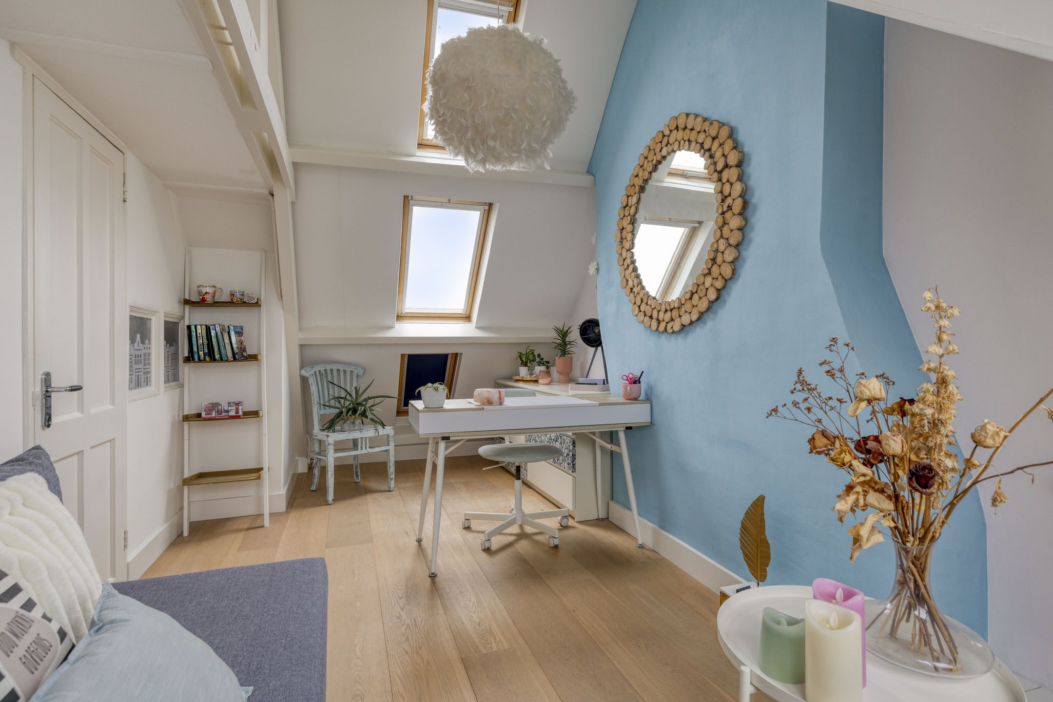 This charming and spacious upper-floor apartment, spread over no fewer than three full residential levels, offers a unique combination of space, light, and breathtaking unobstructed views across the Hekslootpolder. With five full-sized bedrooms, an atmospheric en-suite living room with fireplace, and a sunny west-facing balcony, this is a home where comfort and character come together seamlessly. Its location on the edge of the city provides peace and greenery, while all amenities are within easy reach.