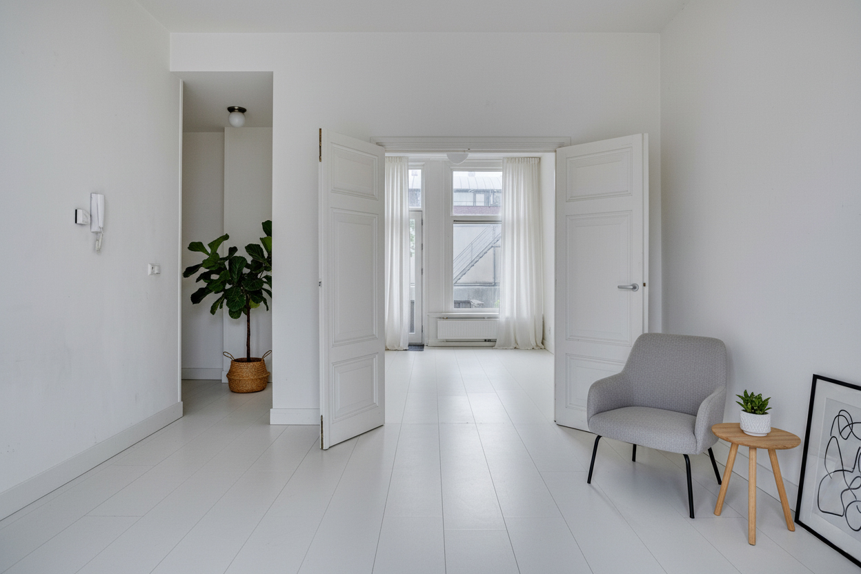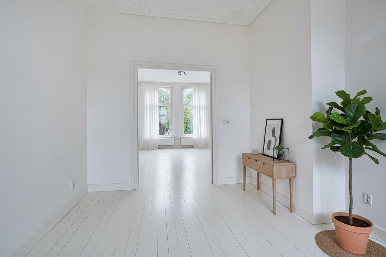 Some of the distinctive style features have been preserved, such as the high (ornamental) ceilings and the paneled doors. This property, which is suitable for dual occupancy, currently consists of two separate apartments on the first and second floors but can, of course, also be used as one spacious upper residence.