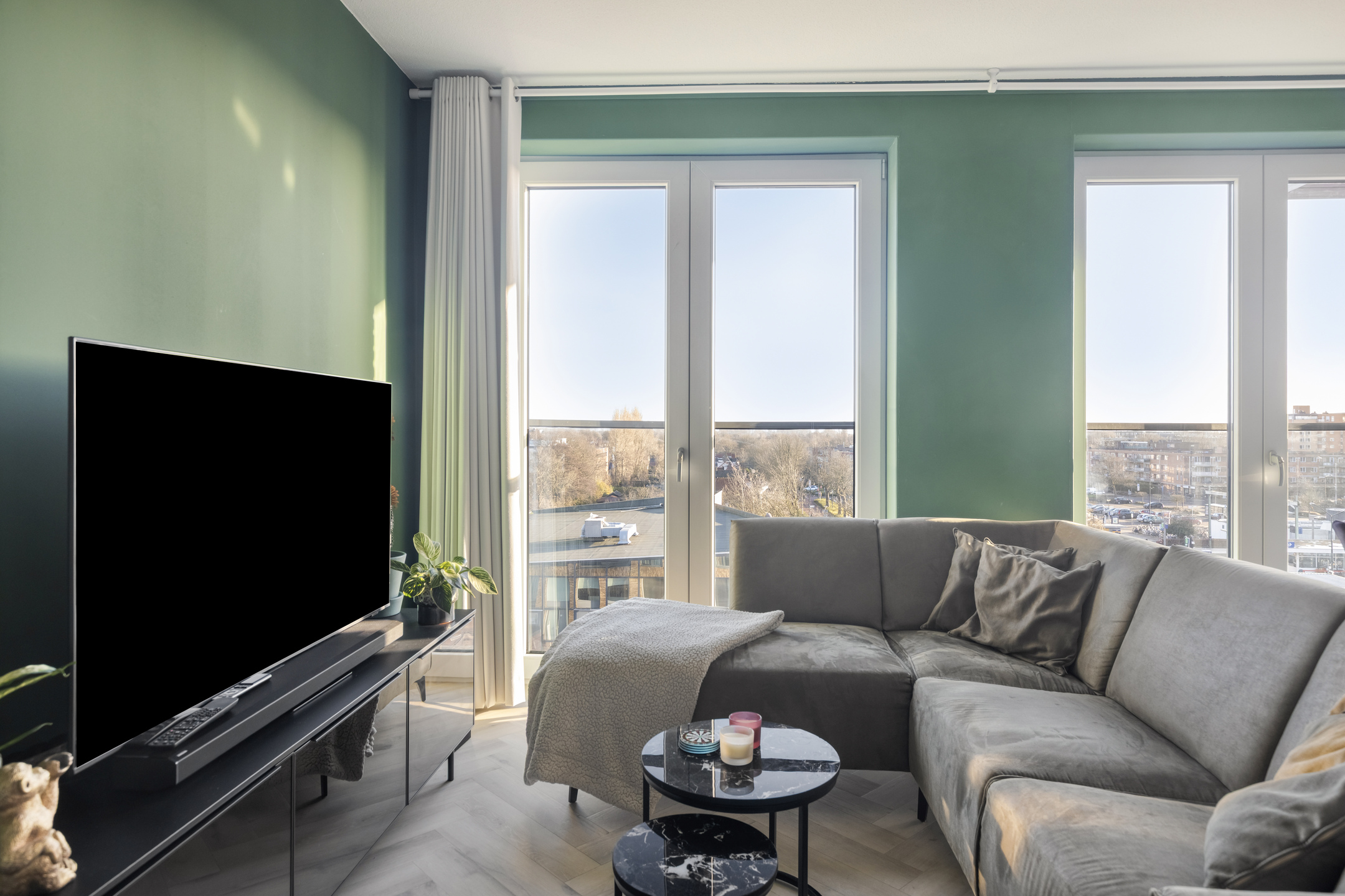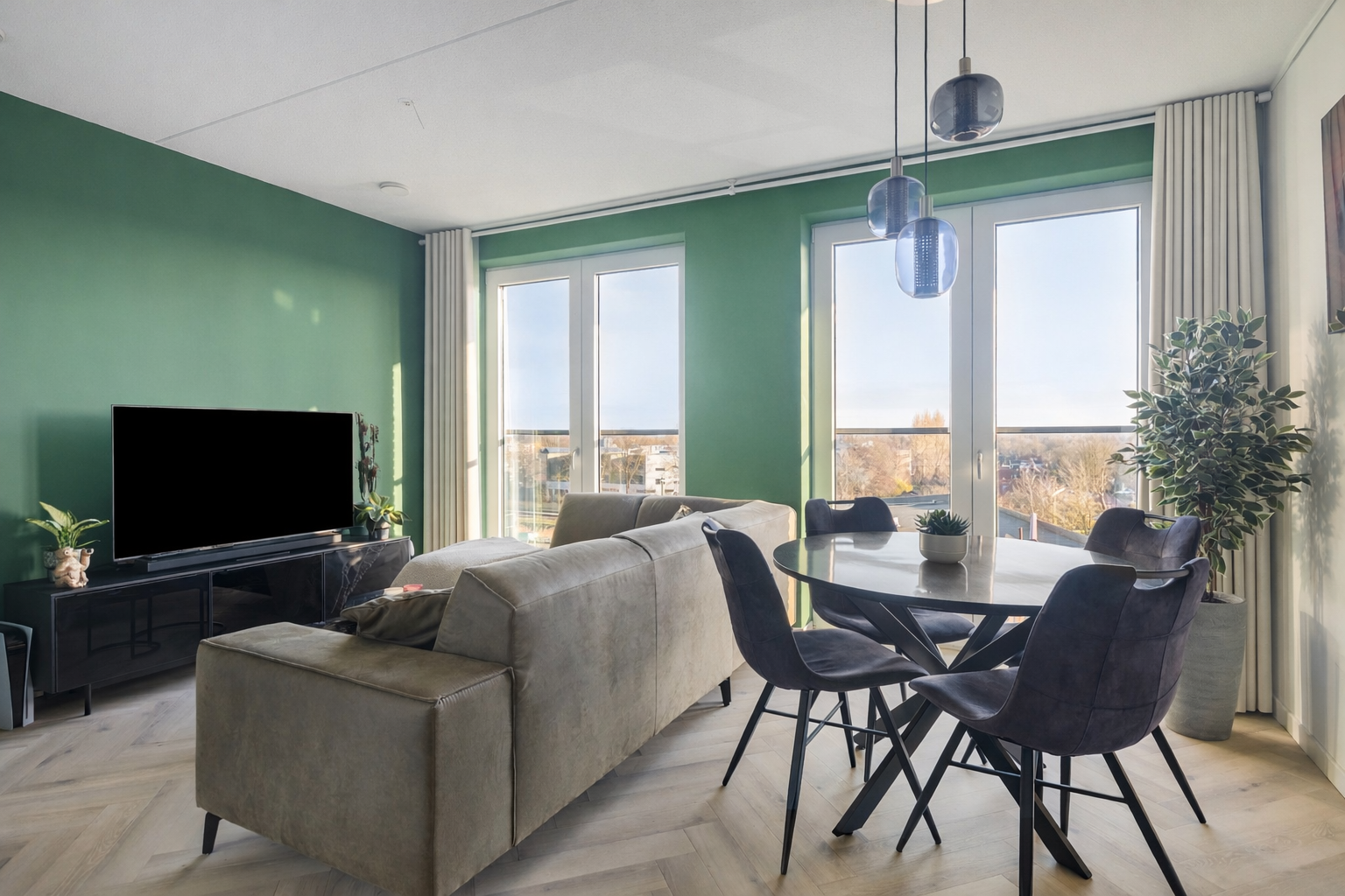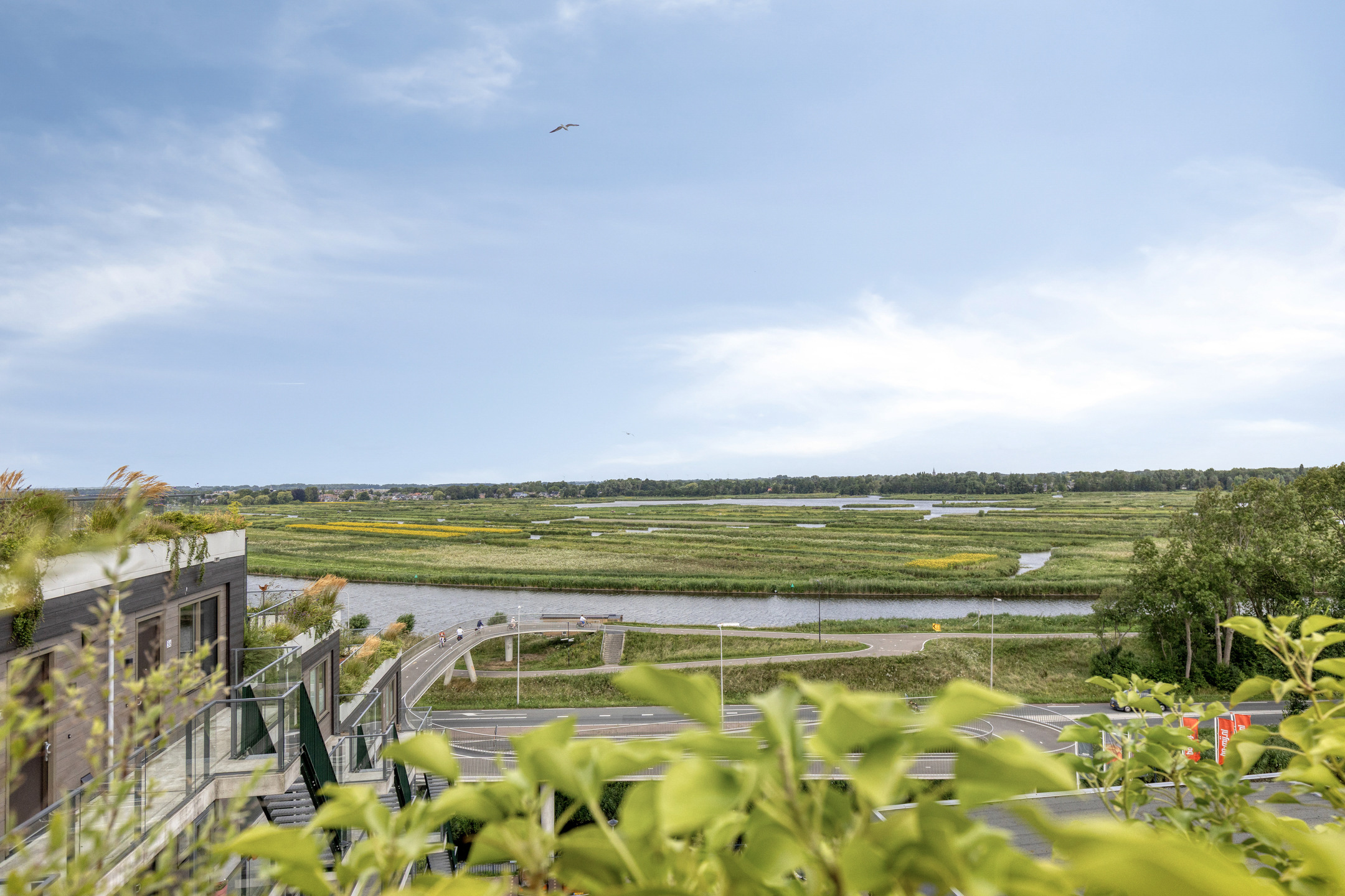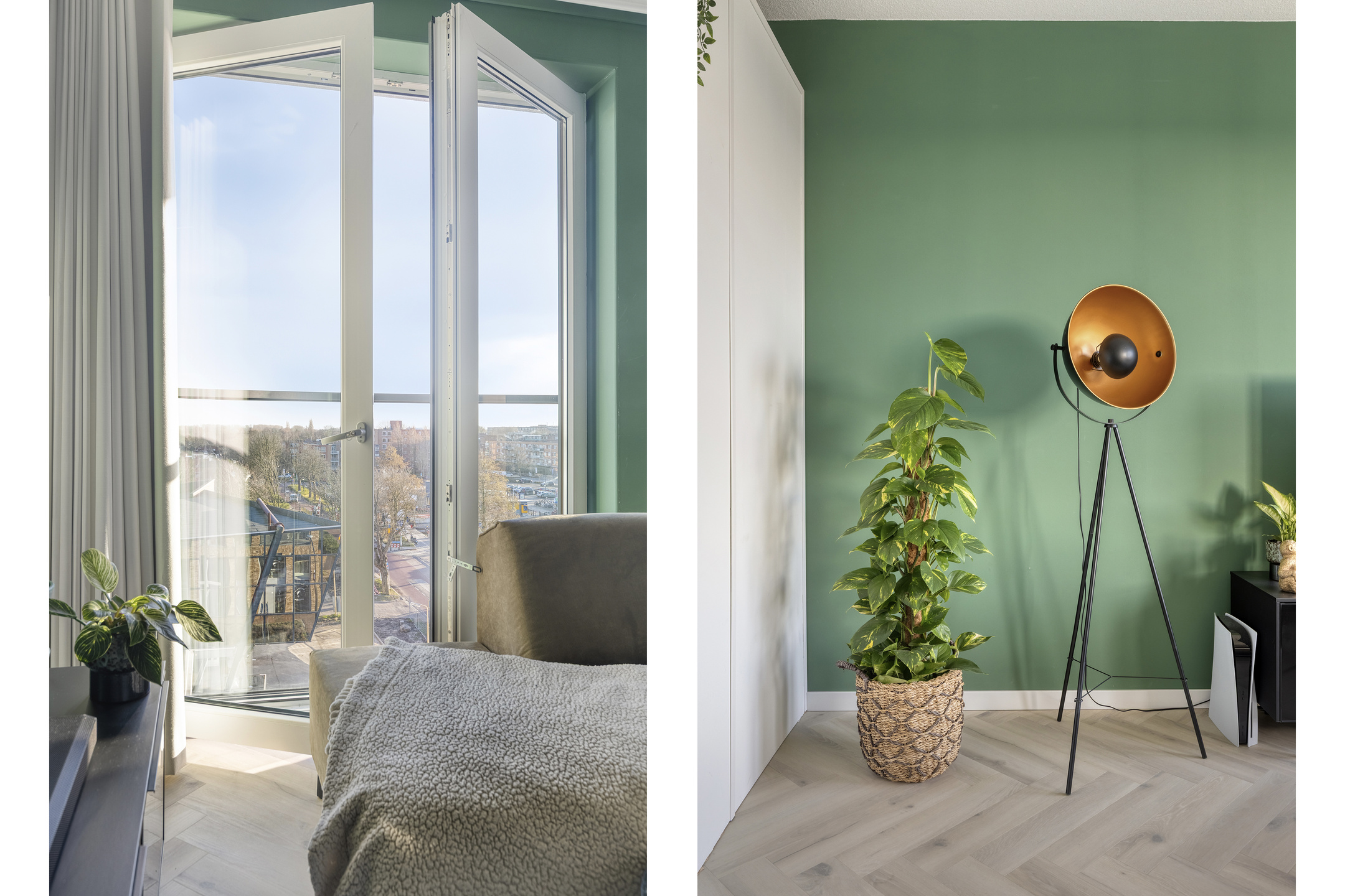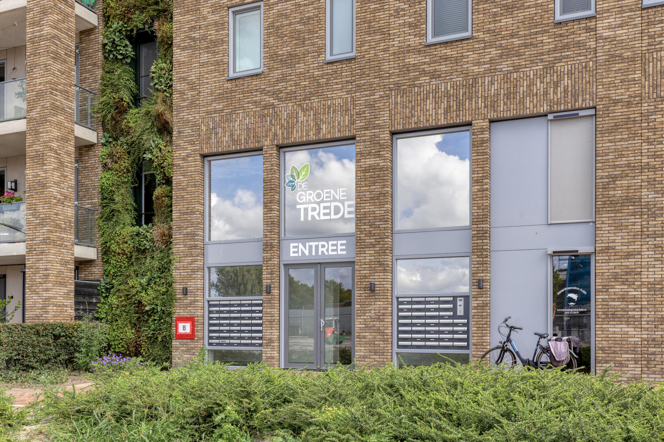 Dit appartement bevindt zich in het unieke complex ‘De Groene Trede’, geïnspireerd door het omliggende natuurgebied. De gevels met verticale beplanting en de trapvormige architectuur geven het gebouw een moderne en groene uitstraling en bieden een prachtig uitzicht over het Oosterdelgebied.