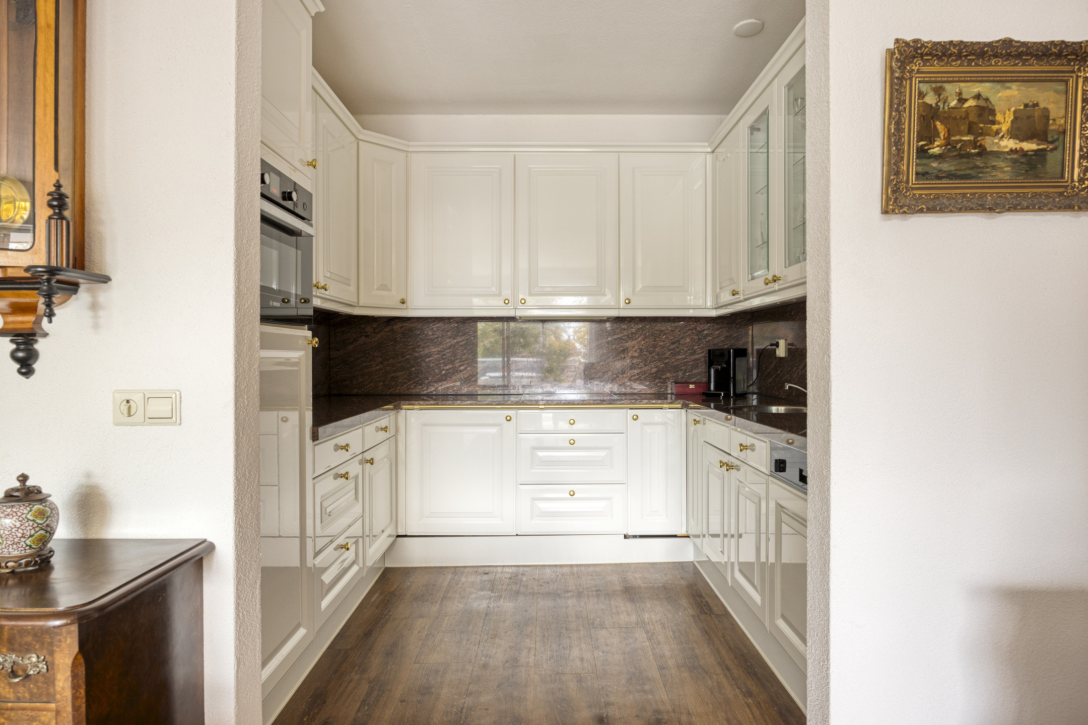 Woonkamer: De royale woonkamer, gestoffeerd met vloerbedekking, baadt in het licht dankzij de vele raampartijen. Geniet van knusse avonden bij de haard (elektrisch) in de sfeervolle zithoek of schuif aan tafel in de eethoek bij de open keuken, perfect voor gezellige maaltijden. U kunt via de schuifpui naar het riante terras. En het uitzicht? Ronduit adembenemend! Kijk uit over de Lange Linschoten en de Grote Gracht, omringd door weelderig groen. Hier geniet u elke dag van een schilderachtig panorama dat telkens weer verrast.
