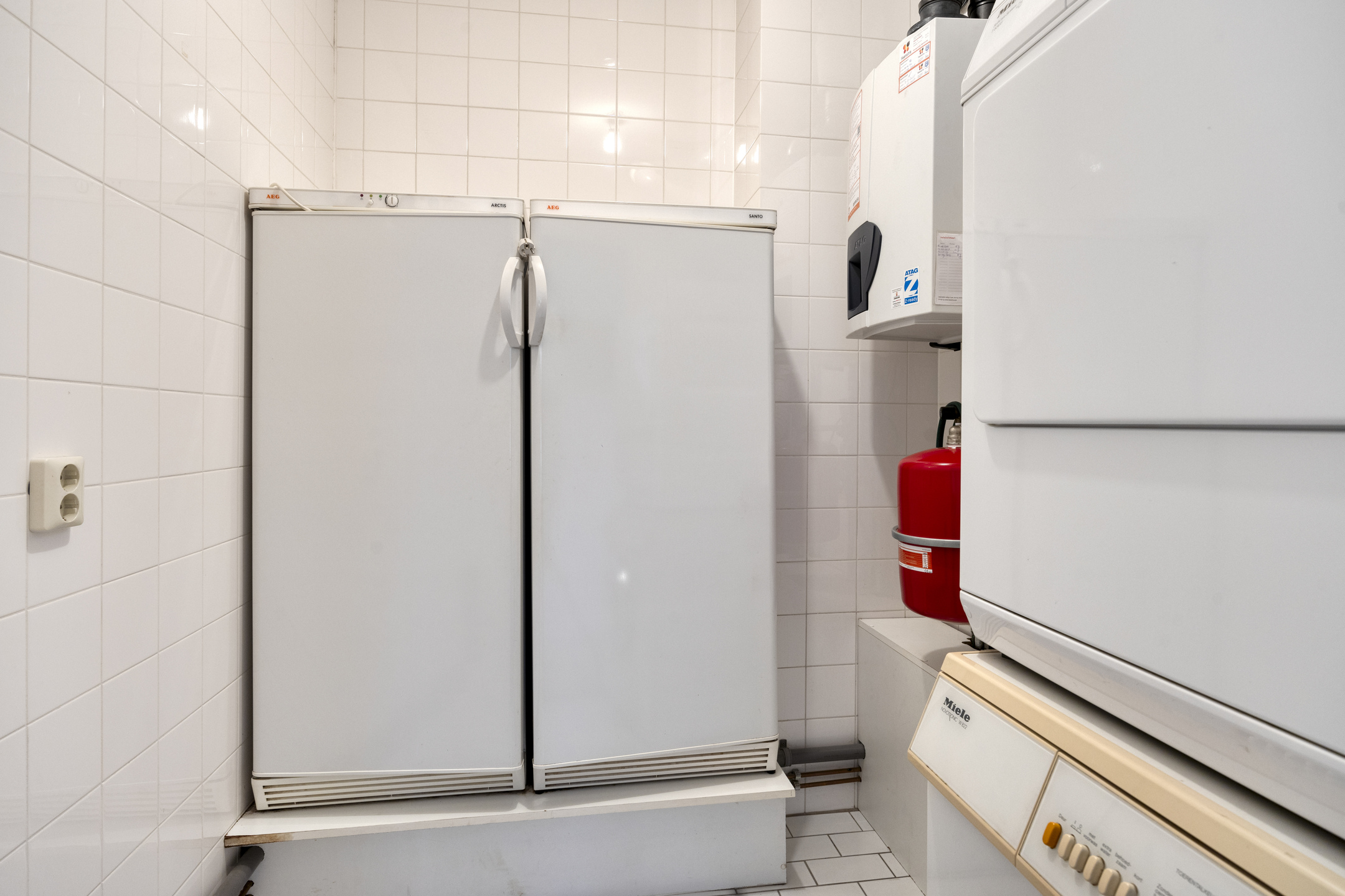 Technische ruimte/wasruimte: In de technische ruimte bevindt zich de opstelling van de Atag cv-ketel (2011), wasmachine en droger en een extra koelkast en vriezer.