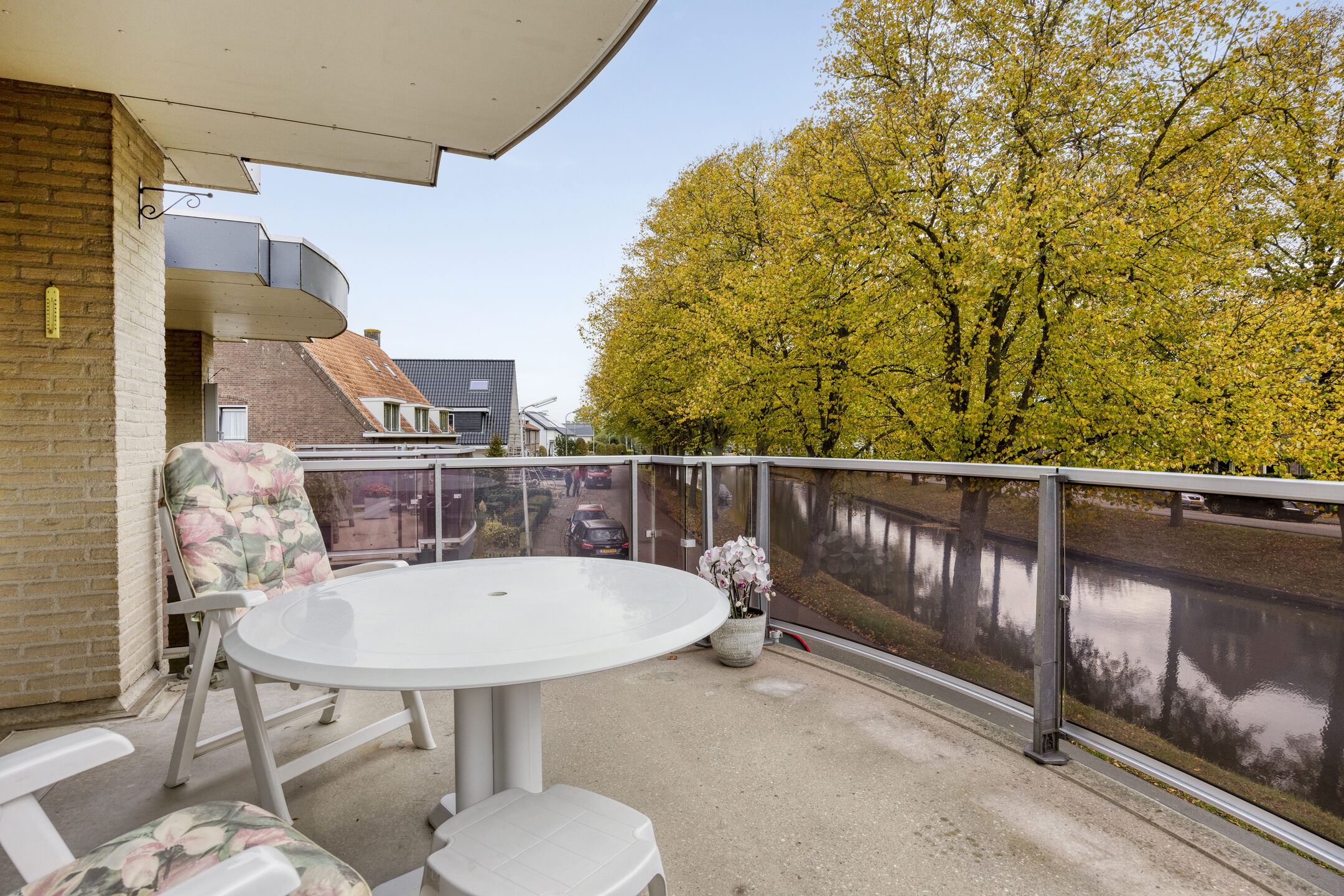 Terras (balkon): Royaal terras met zicht over veel groen, het vaarwater de Lange Linschoten en de Grote gracht.