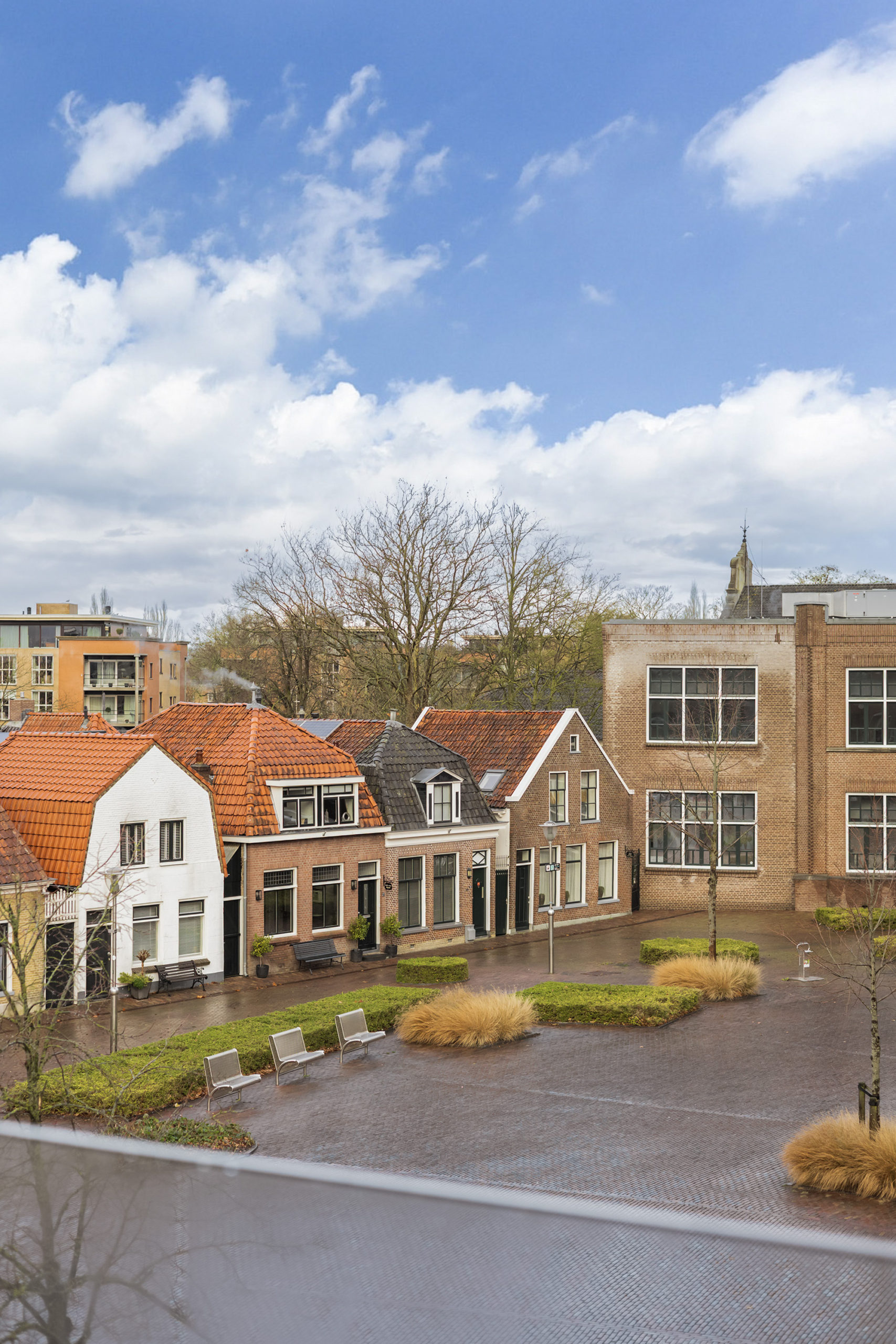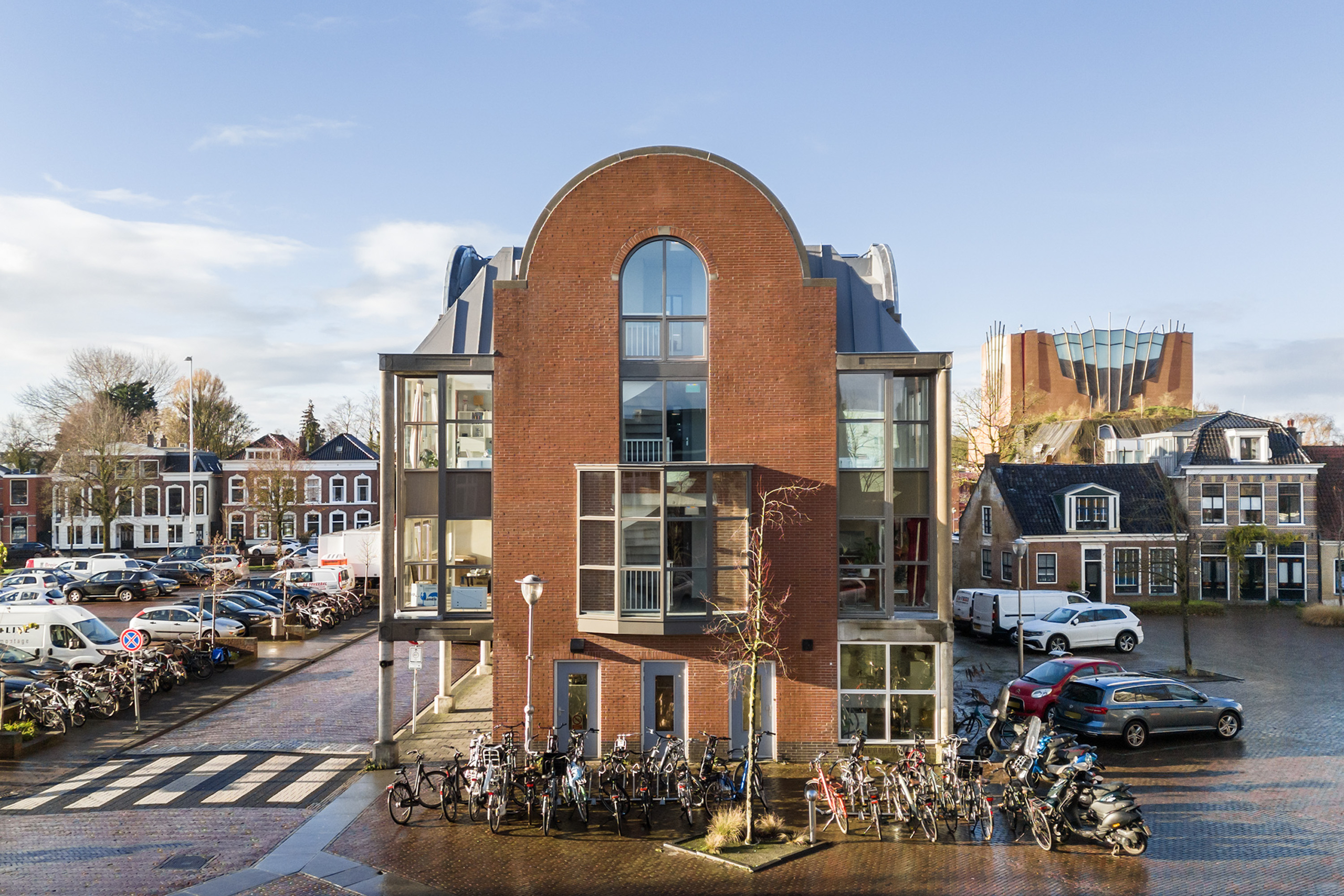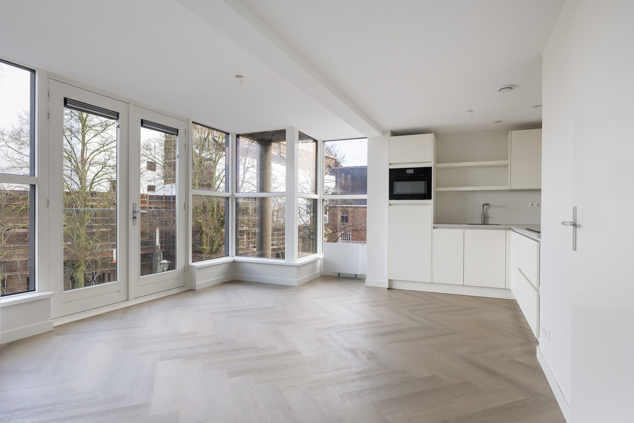 Het appartement is gelegen aan de rustige achterzijde van het gebouw. De woonkamer met open keuken is bijzonder licht dankzij de hoge raampartijen en biedt een prachtig uitzicht op de iconische Martinikerk. Recent is de keuken geplaatst en is volledig uitgerust met diverse inbouwapparatuur. Vanuit de woonkamer heb je toegang tot de praktische berging/provisieruimte. De gehele woning is strak afgewerkt en voorzien van o.a. een duurzame visgraat pvc-vloer met hoge witte plinten en strak gestuucte wanden.
