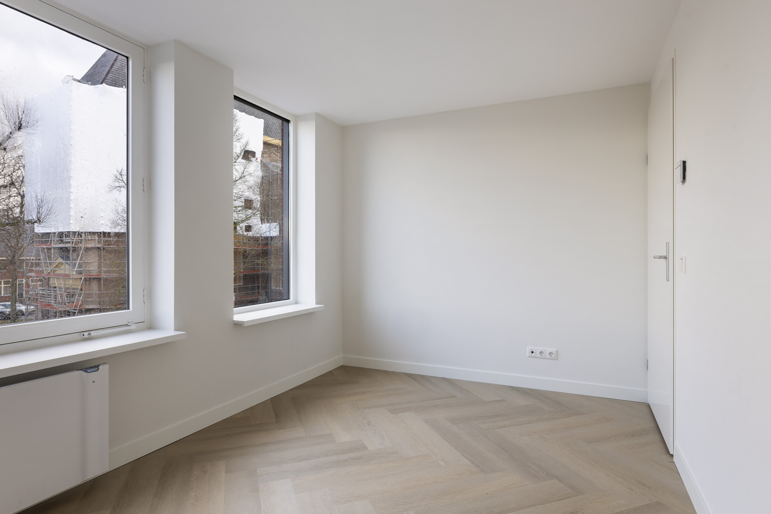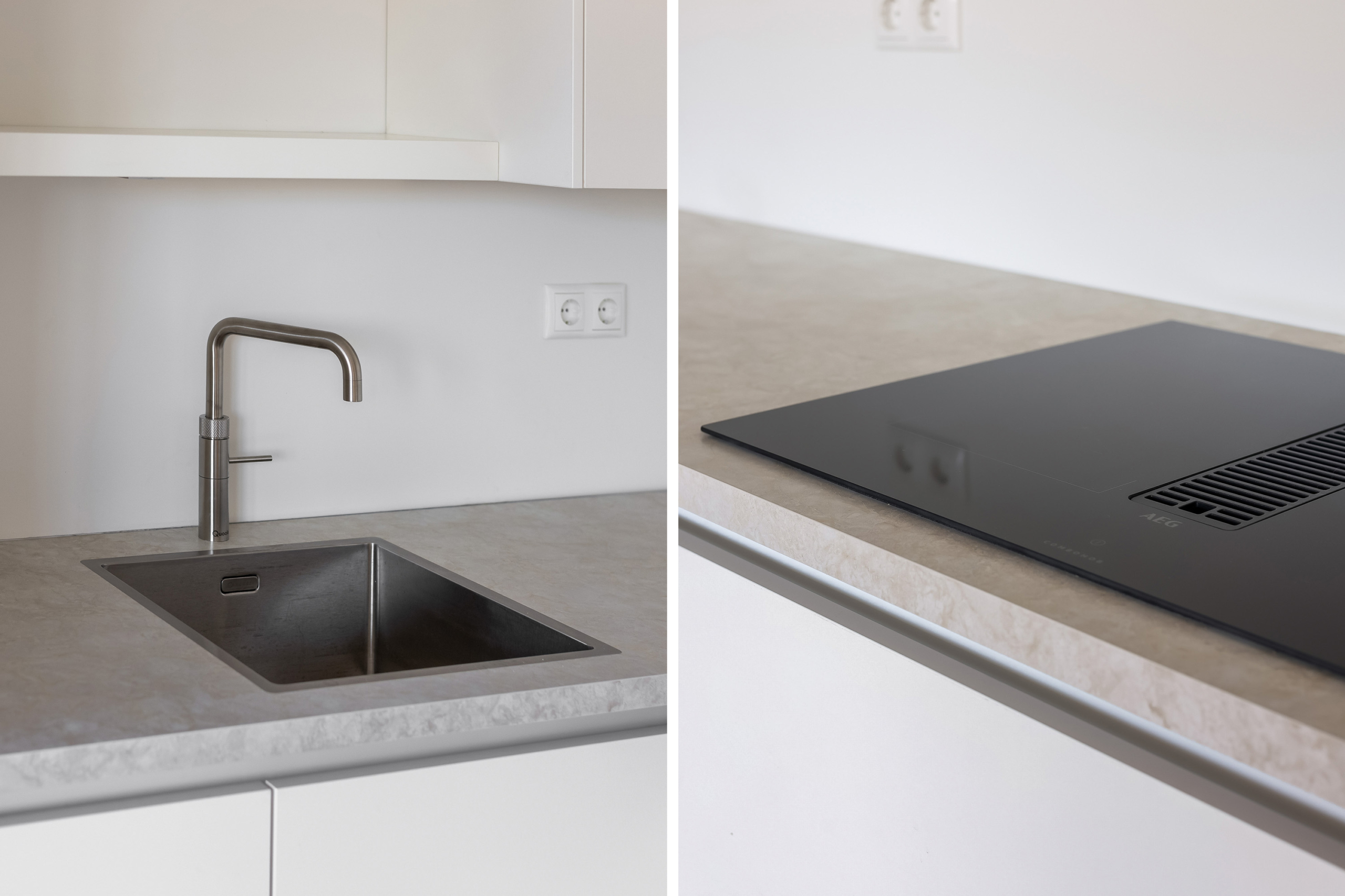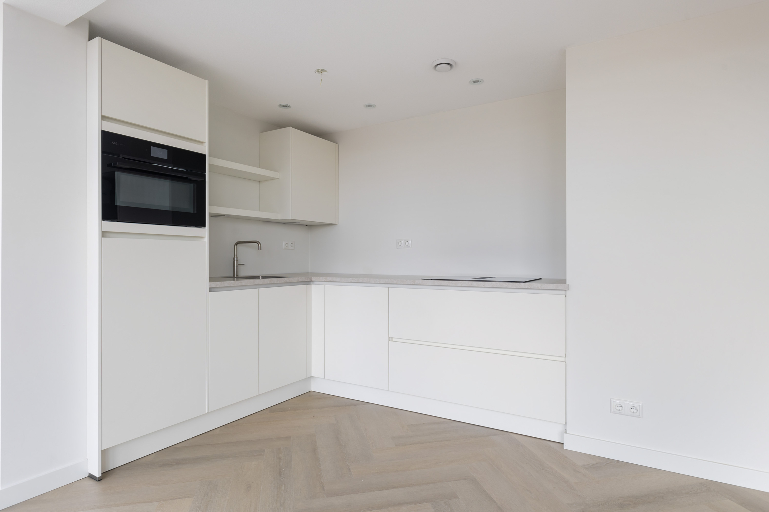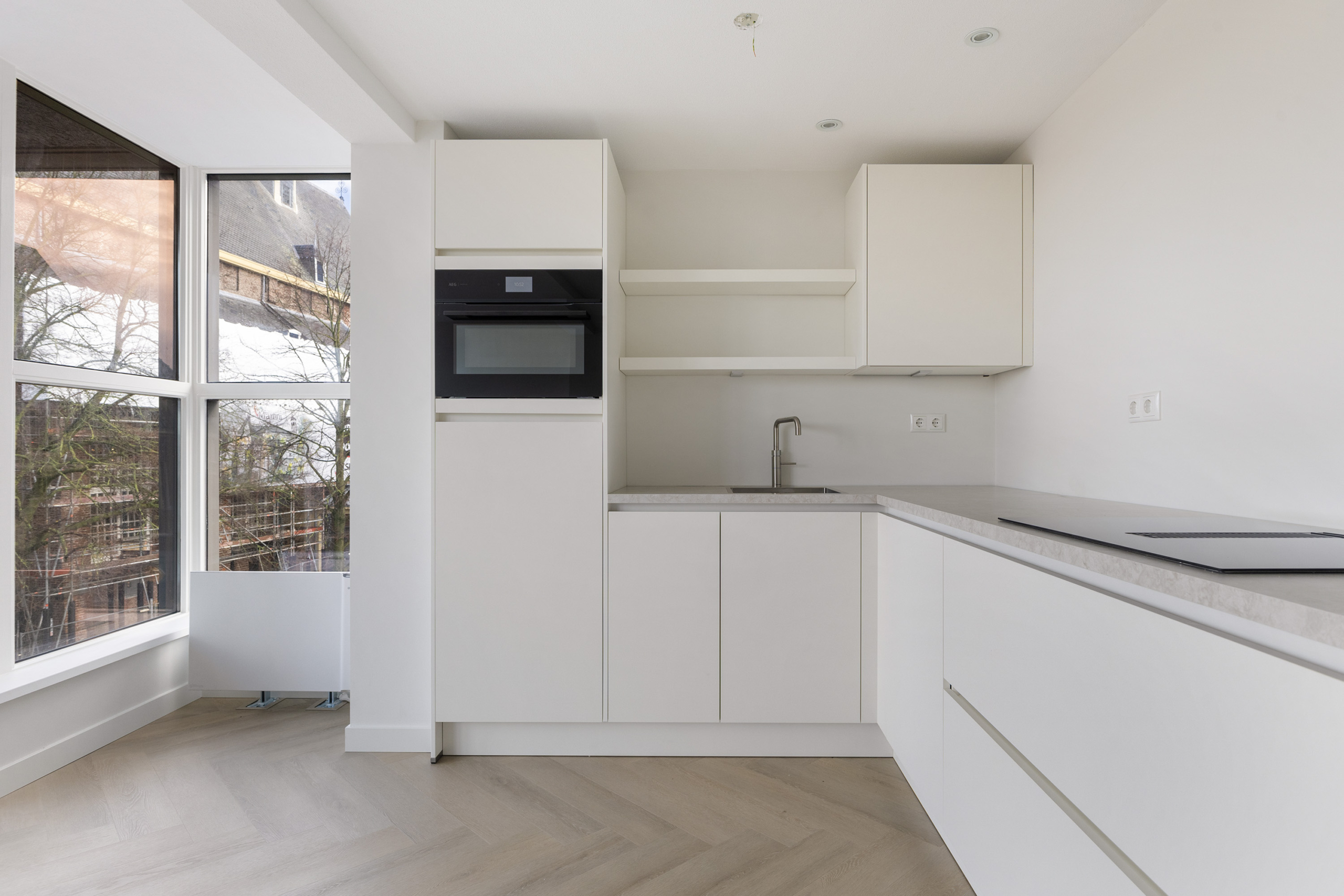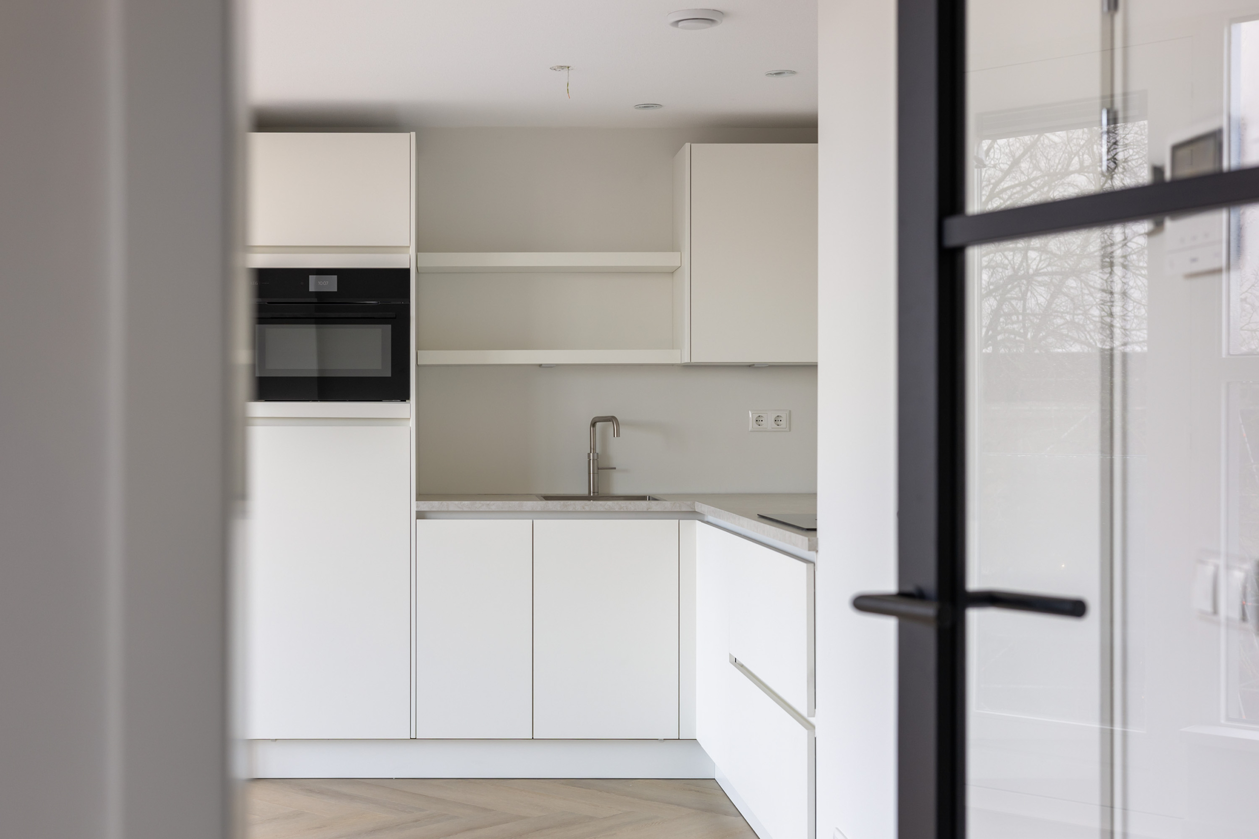2e Verdieping: entree appartement, hal met uitgebreide meterkast, apart toilet met fontein, woonkamer (18m2) met Frans balkon en open keuken (6m2) voorzien van diverse inbouwapparatuur w.o. een koel-vriescombinatie, combi oven/magnetron, inductie kookplaat met geïntegreerd afzuigsysteem, quooker en vaatwasser. Vanuit de woonkamer heb je toegang tot de berging (2m2) met wasmachine aansluiting en doorstroomboiler (120L), apart toilet met fontein, slaapkamer (10m2) met aangrenzend de badkamer (4m2) voorzien met inloopdouche en wastafel.