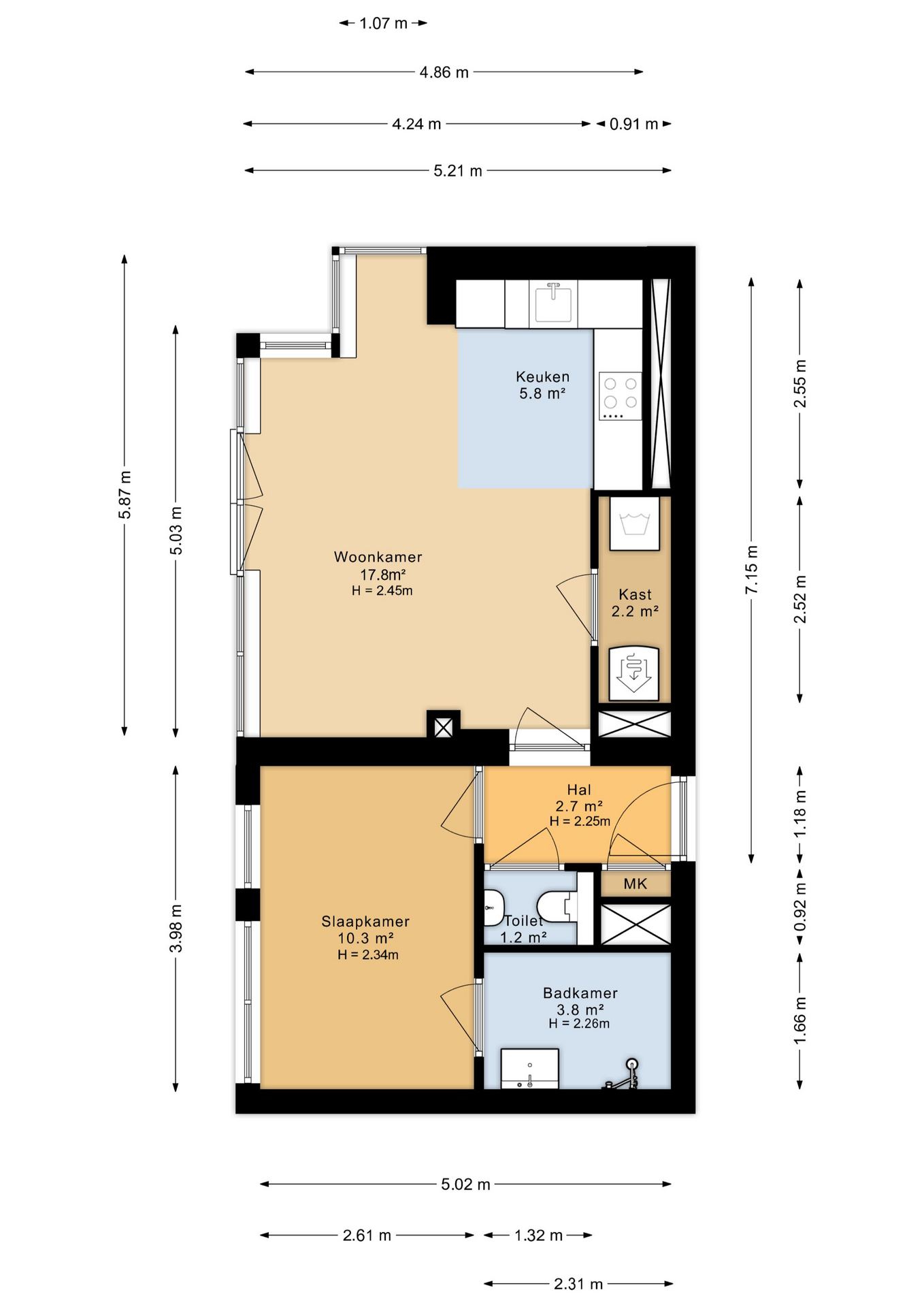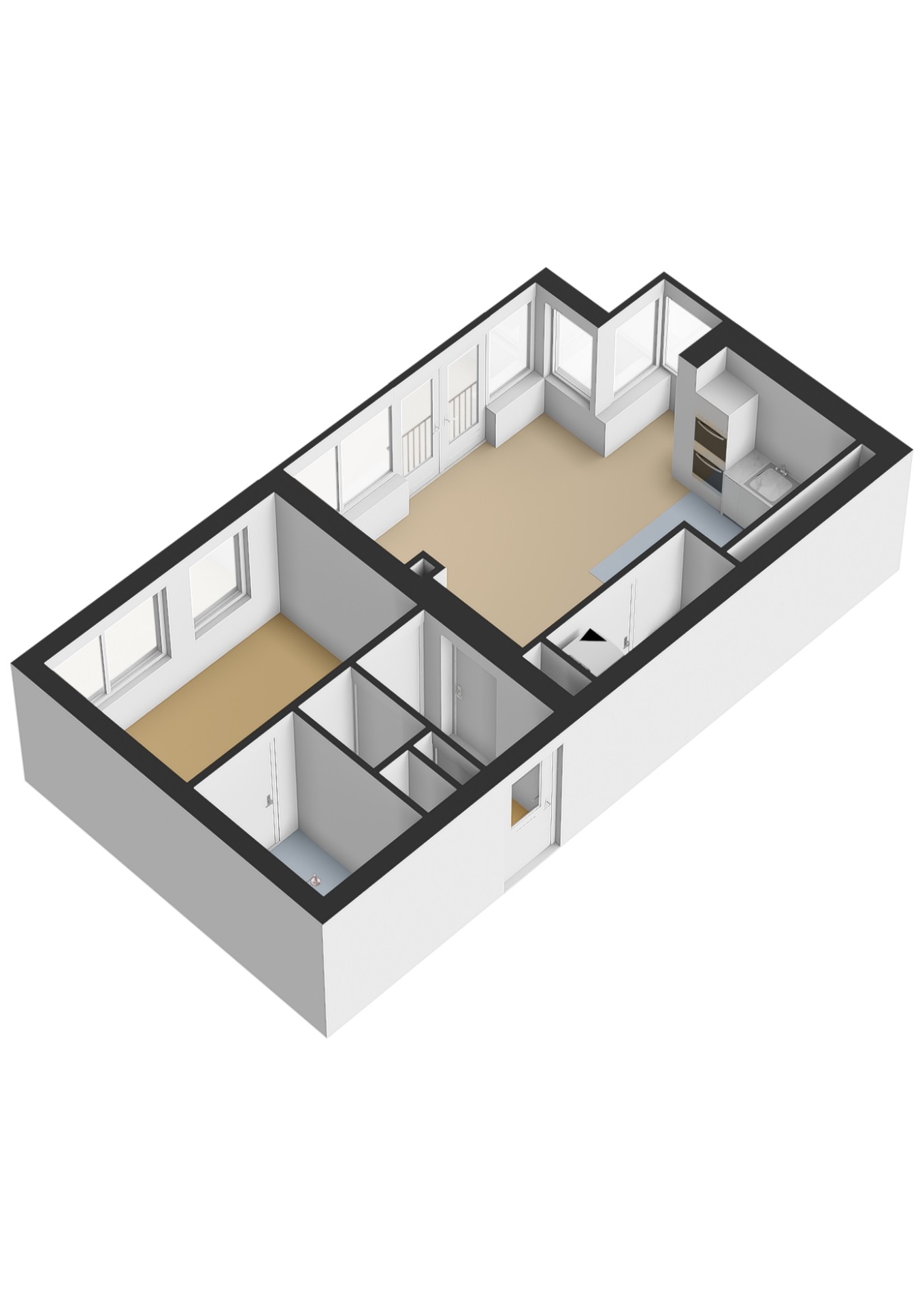 * Woonoppervlakte 47m2 en inhoud 158m3;