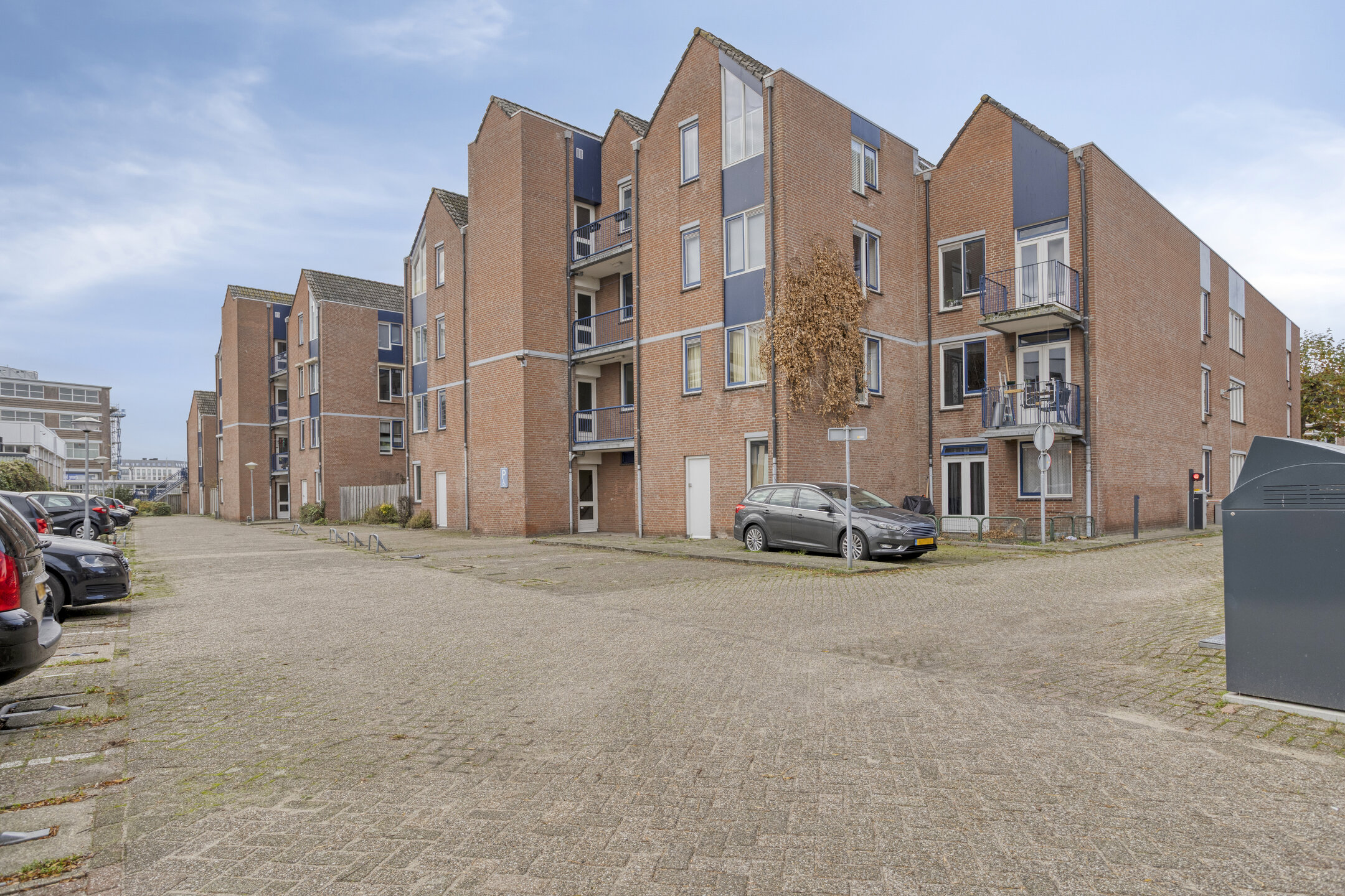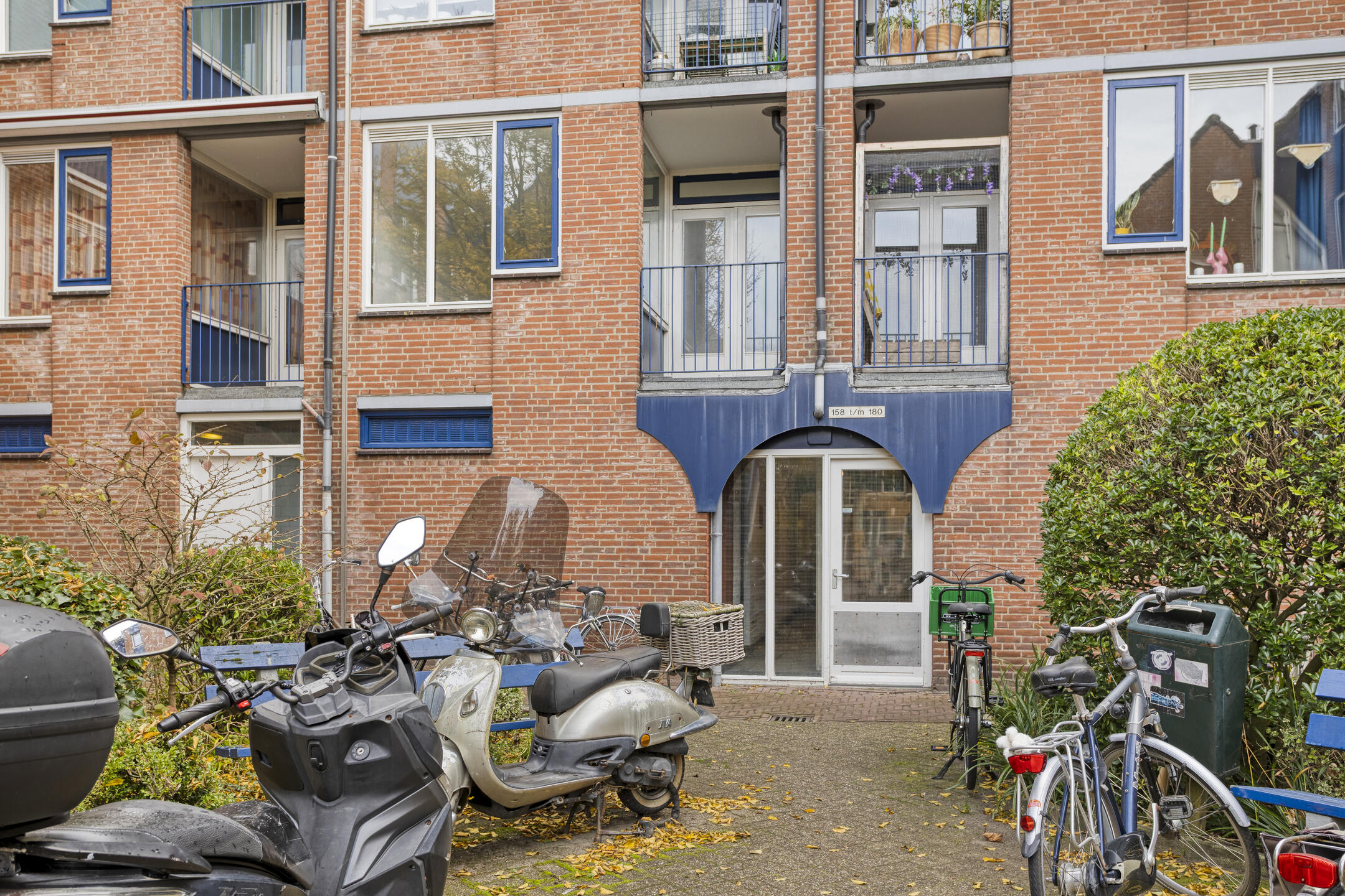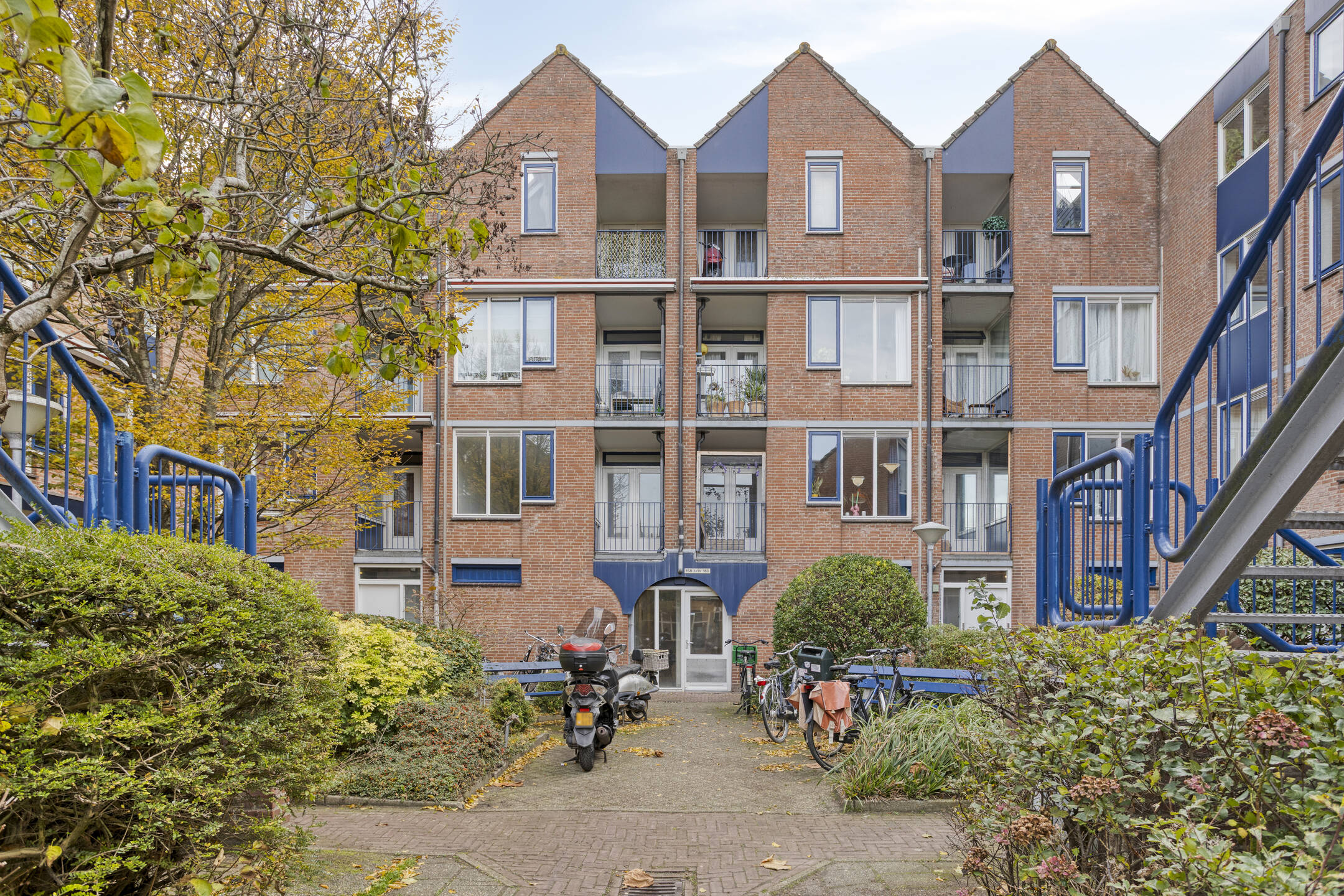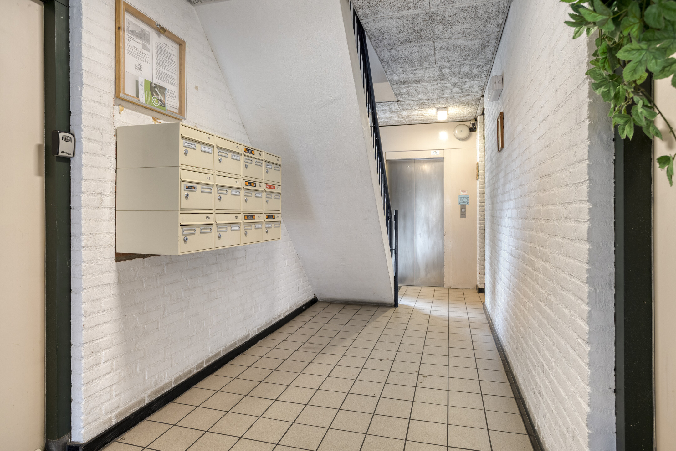Begane grond: Groen binnenhofje met entree, hal met brievenbussen en toegang tot de bergingen en de lift. Achter het gebouw ligt het tot het complex behorende parkeerterrein met slagboom. Het appartement wordt dan ook inclusief een eigen (vaste) parkeerplaats aangeboden.