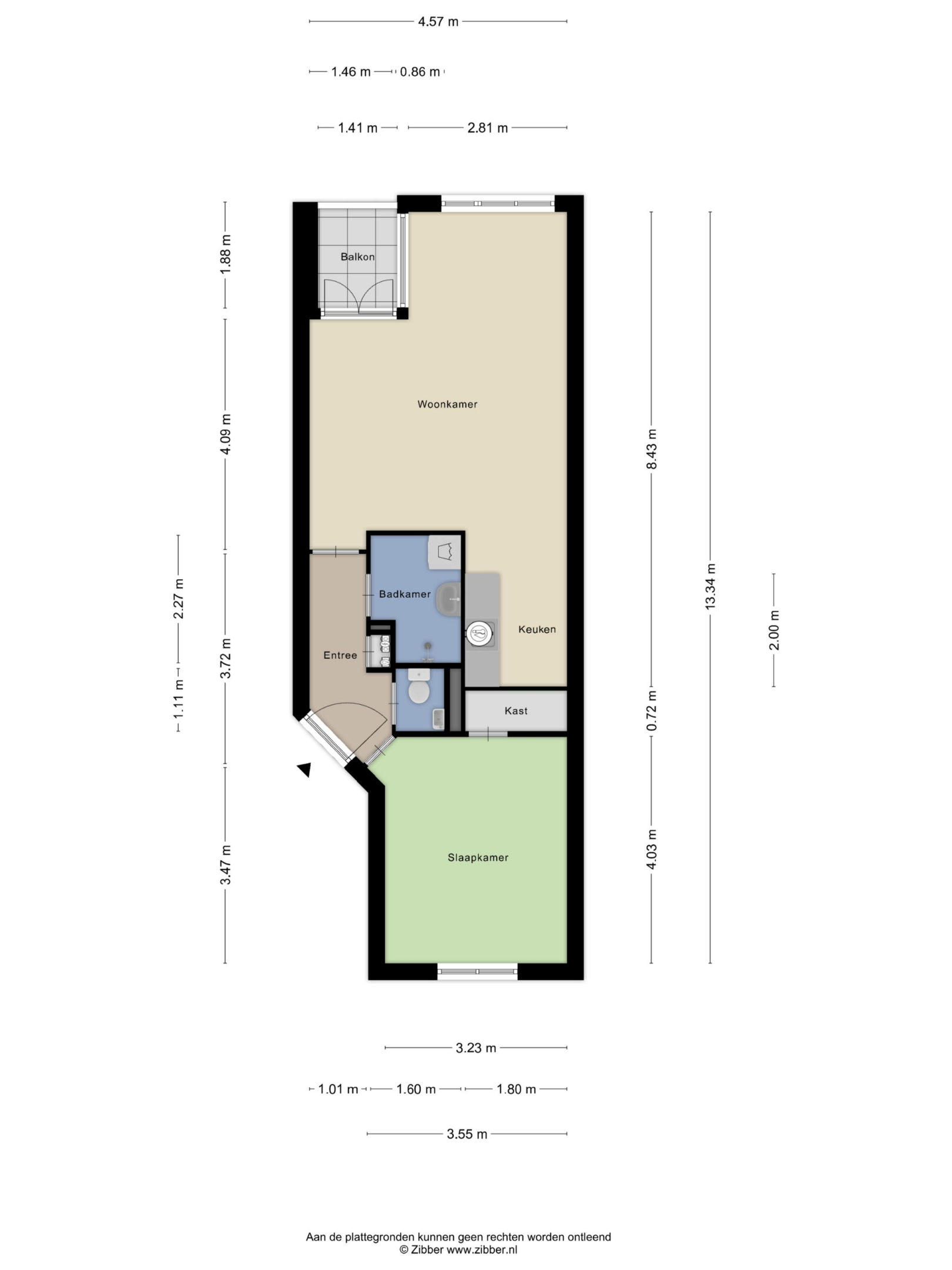 52 m2 woonoppervlakte - 2 kamers
