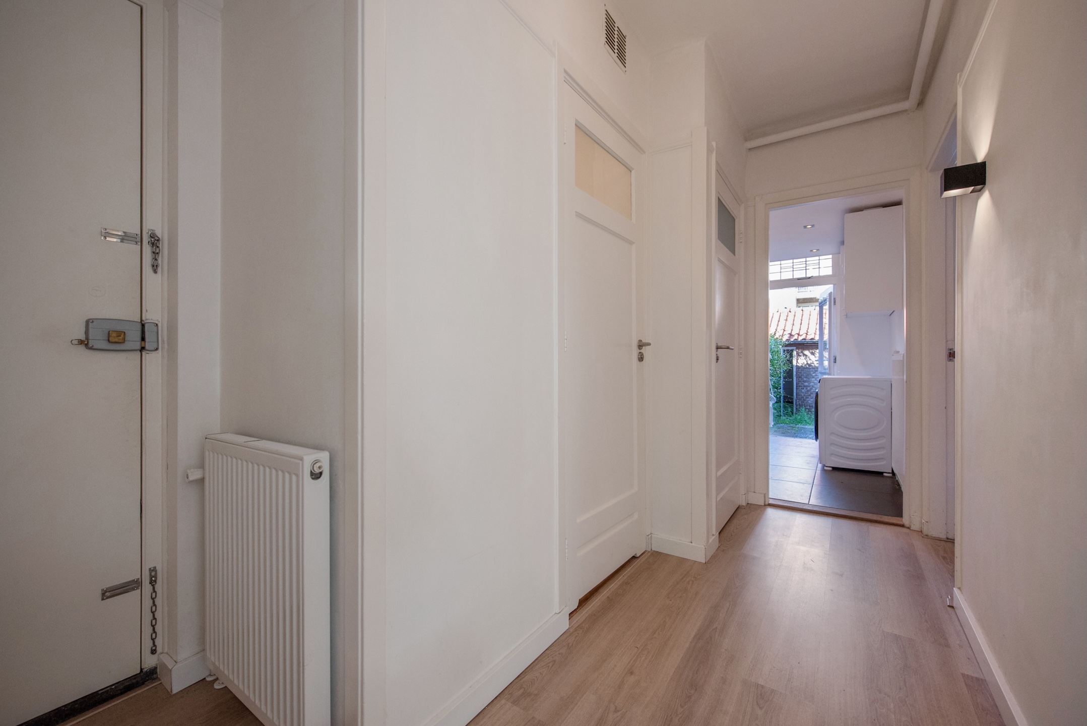 Via de netjes onderhouden gesloten portiek met bellentableau en brievenbussen, kom je binnen in de woning. Vanuit de ruime hal heb je toegang tot alle vertrekken.