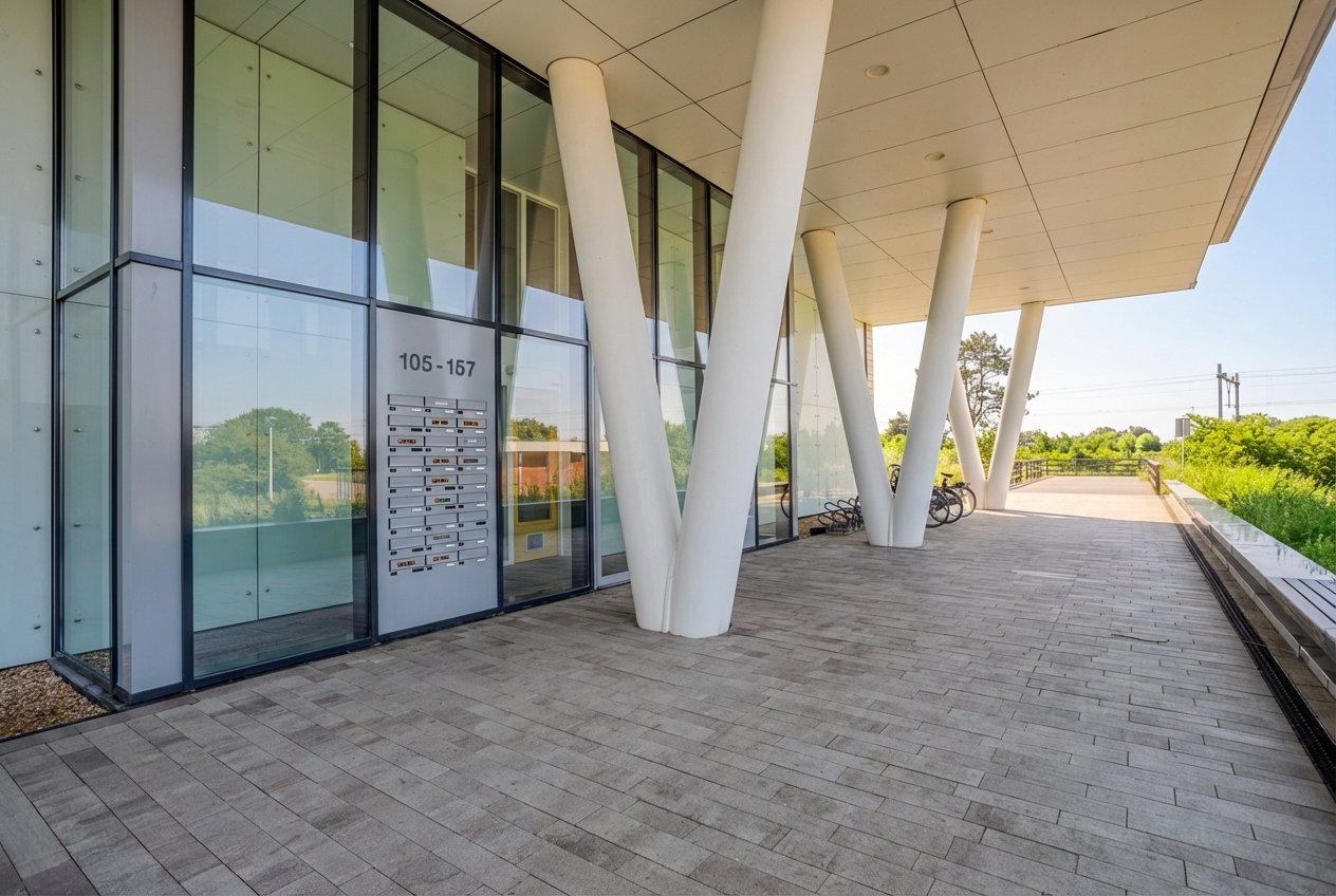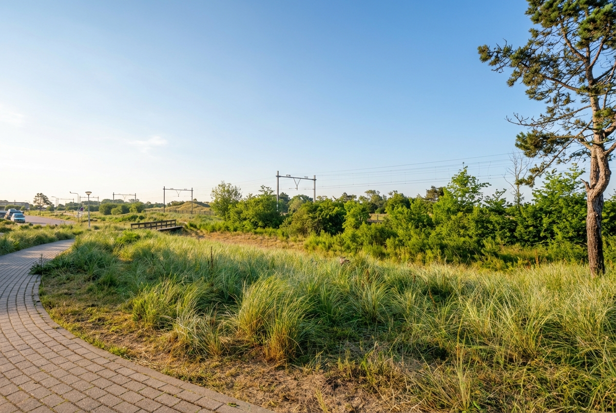 The apartment complex is easily accessible by public transport, with regular bus services and a train station approximately a 10-minute walk away. In the immediate vicinity, you’ll find sports fields and a small shopping center with a supermarket. Both the beach and the village center, with its array of shops and restaurants, are within cycling distance, allowing you to enjoy both village charm and seaside living.