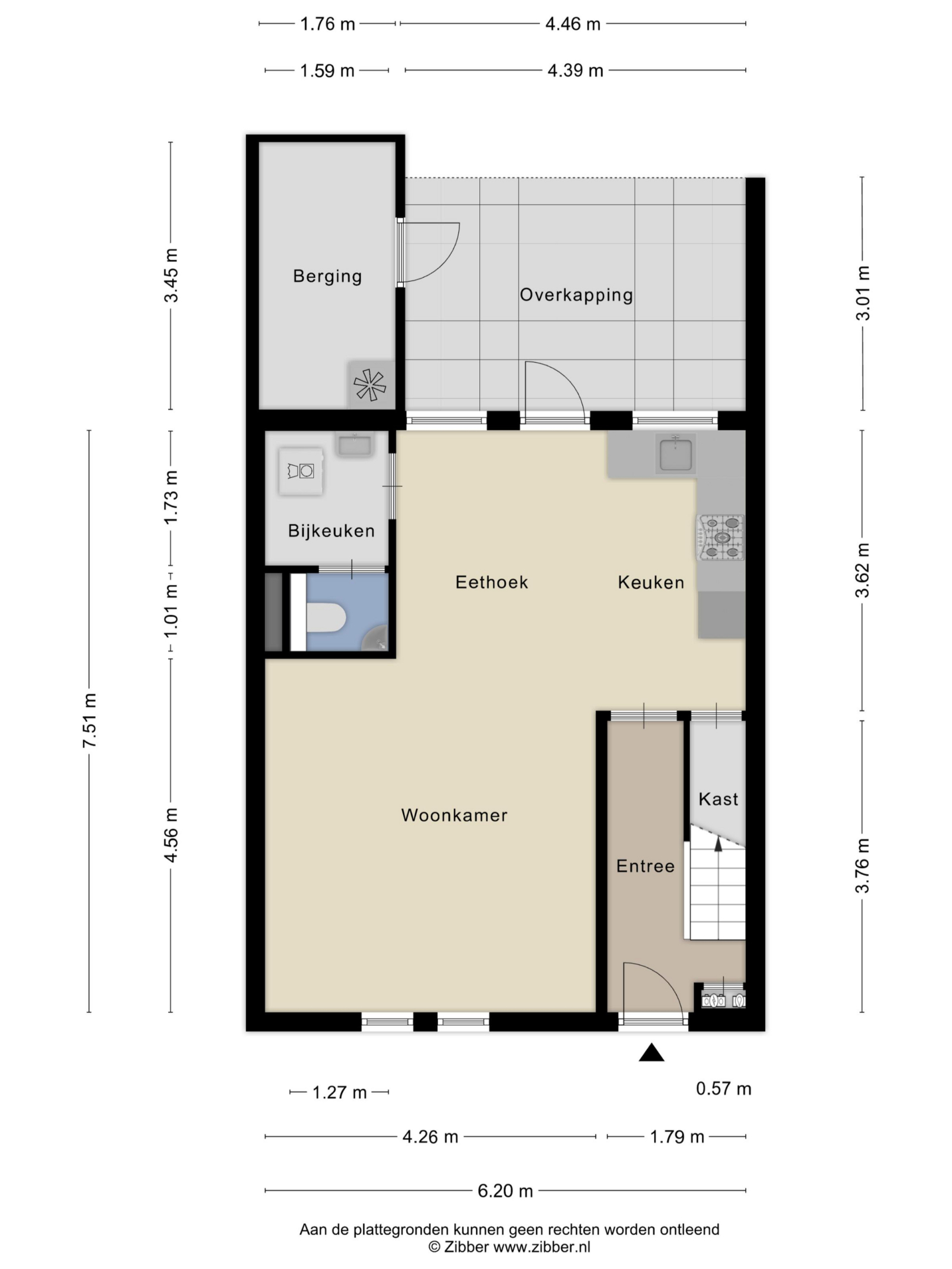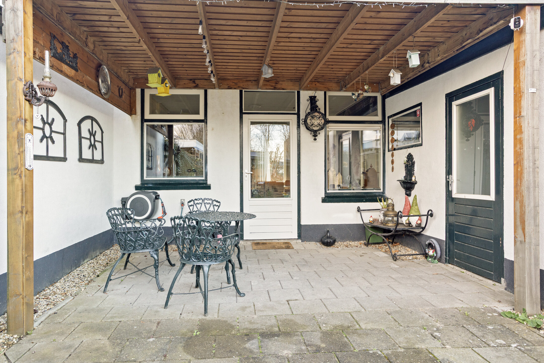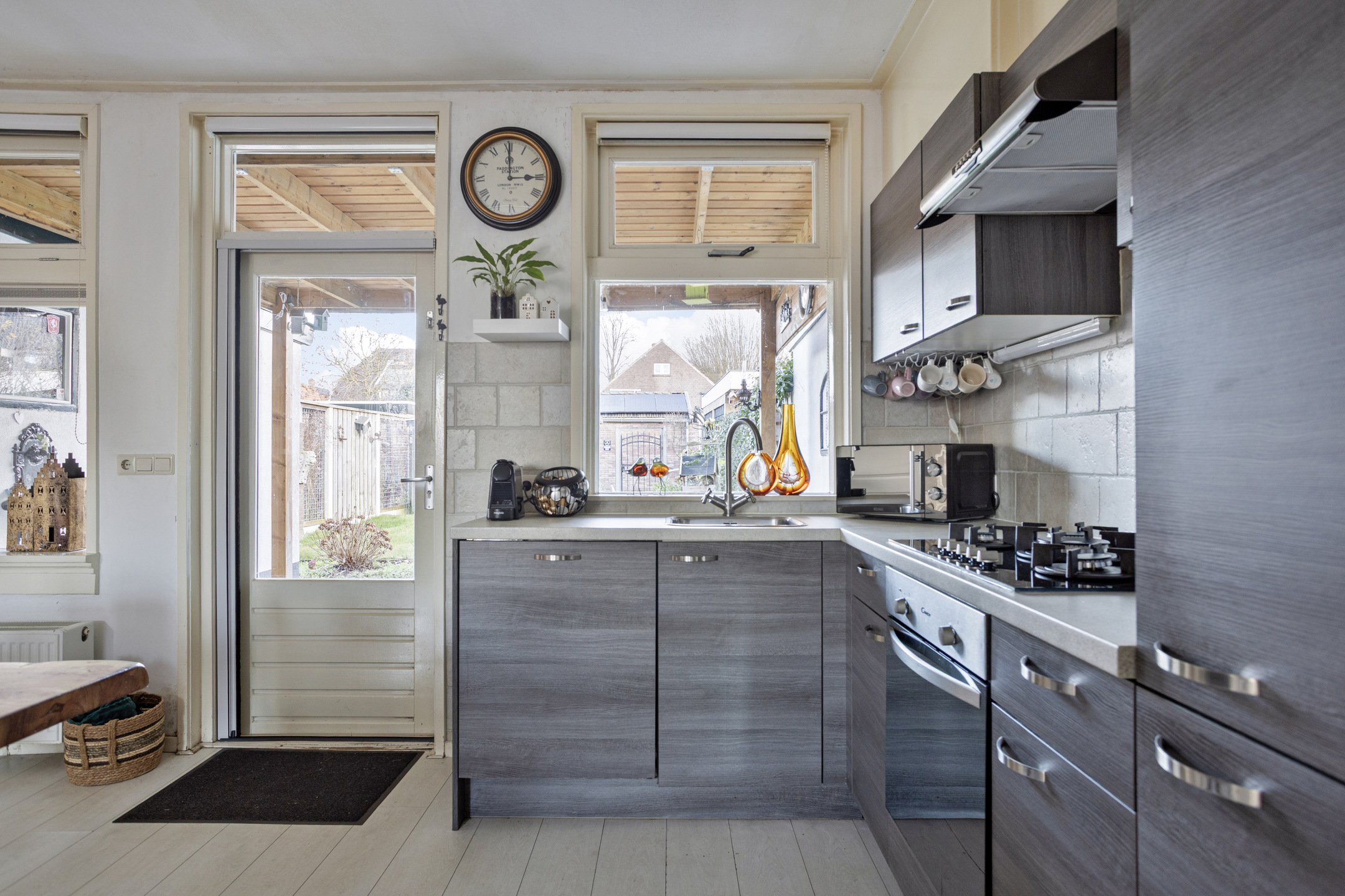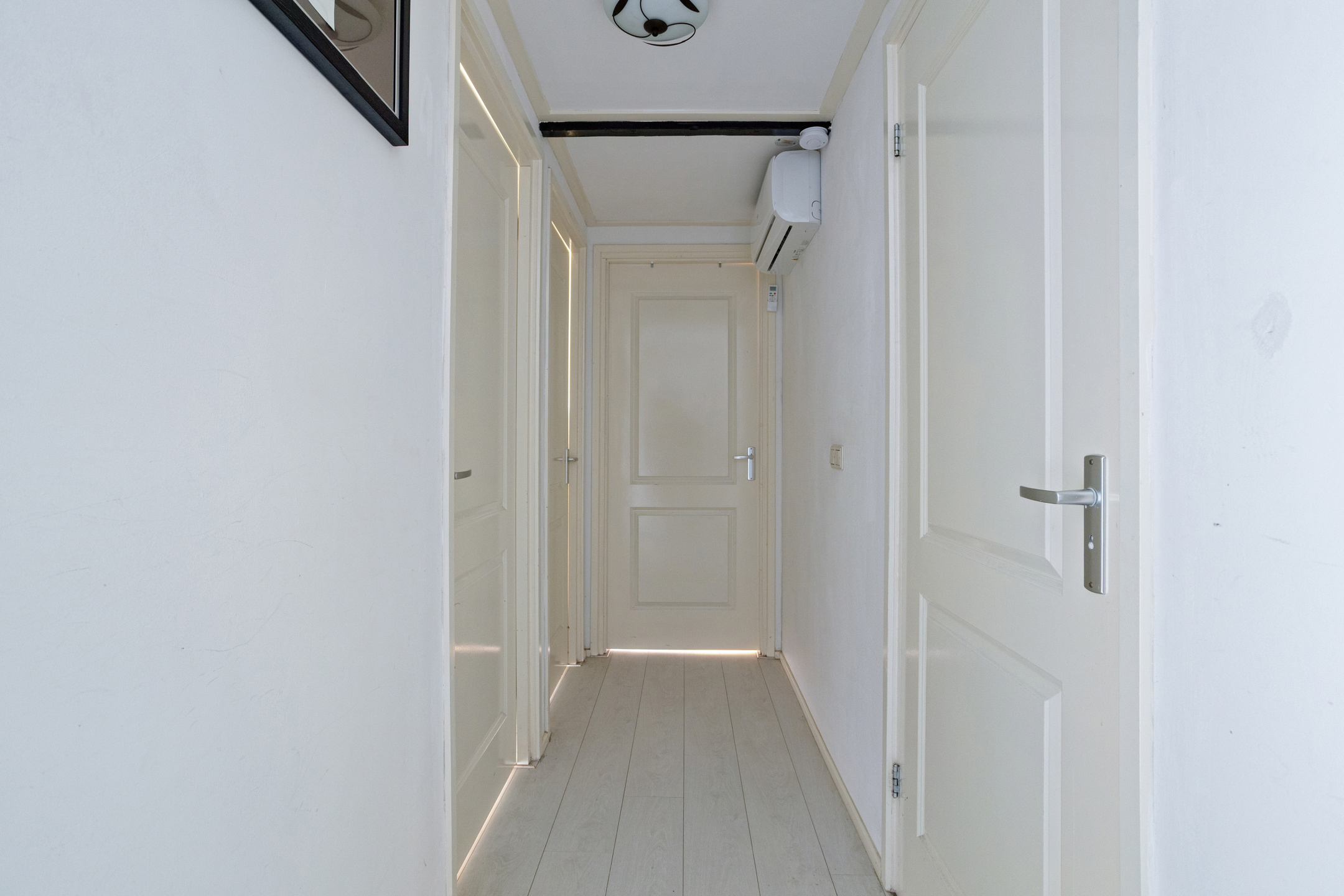 Entree, Z-vormige leefruimte met open keuken met inbouwapparatuur en lichte woon-eetkamer. Er is nieuw HR glas geplaatst en er zijn rolluiken en airconditioning aanwezig, waardoor het comfort in huis prettig is. Aansluitende is er een achterportaal met toiletruimte en aansluitingen voor wasapparatuur. Via de achterdeur is direct de veranda bereikbaar en aansluitend een stenen berging. Stalling van fietsen en overige zaken kan in het tuinhuis achterin de tuin.