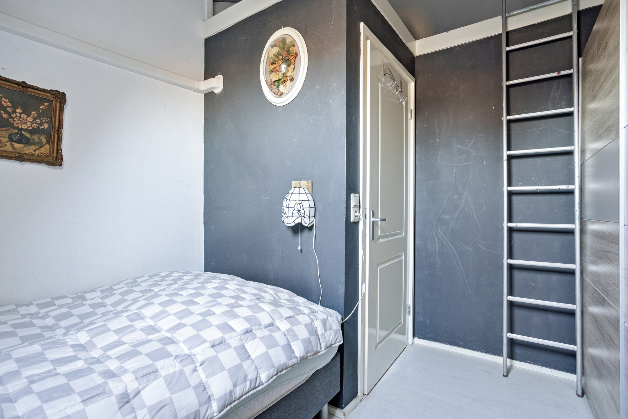 overloop, neutrale badkamer met douchecabine, 2e toilet en breed wastafelmeubel, 3 slaapkamers waarvan bij 1 slaapkamer ook een entresol bereikbaar is. Leuk (voor bijv. een iets ouder kind) om daar een spannende speelplek van te maken. Vanuit deze ruimte is ook de vliering toegankelijk en is de opstelruimte van de cv-ketel.
