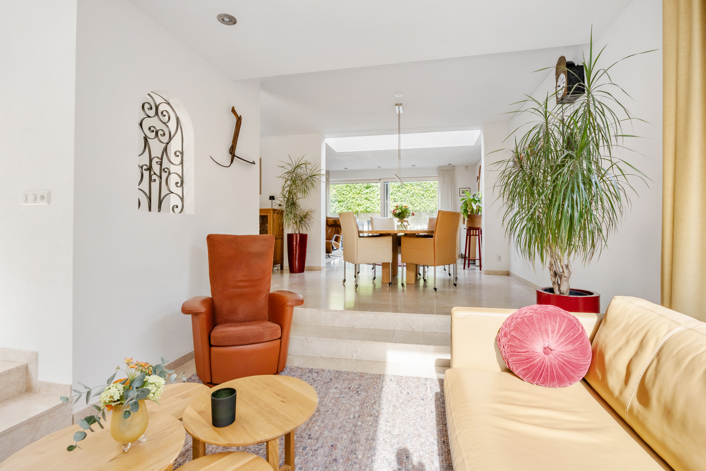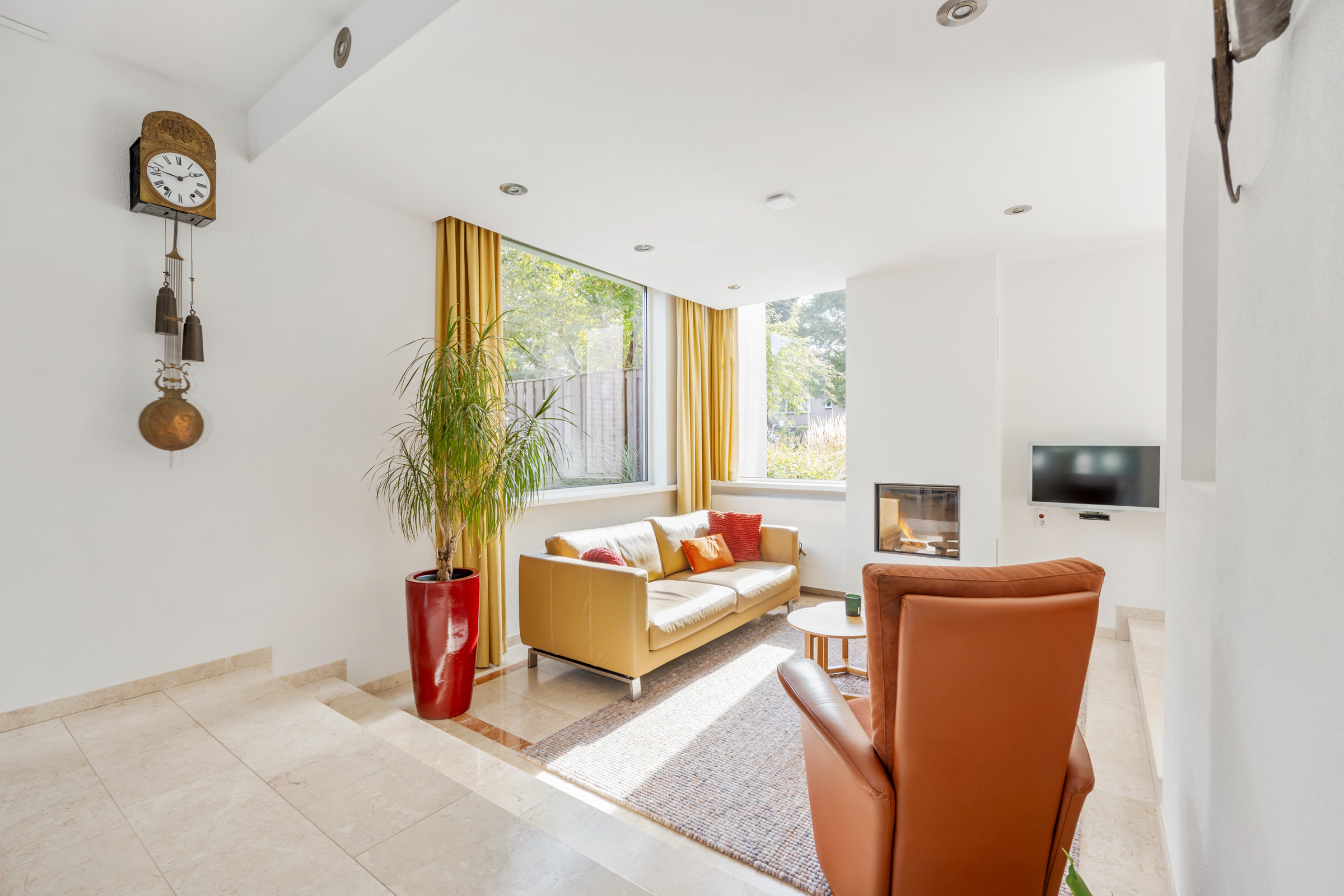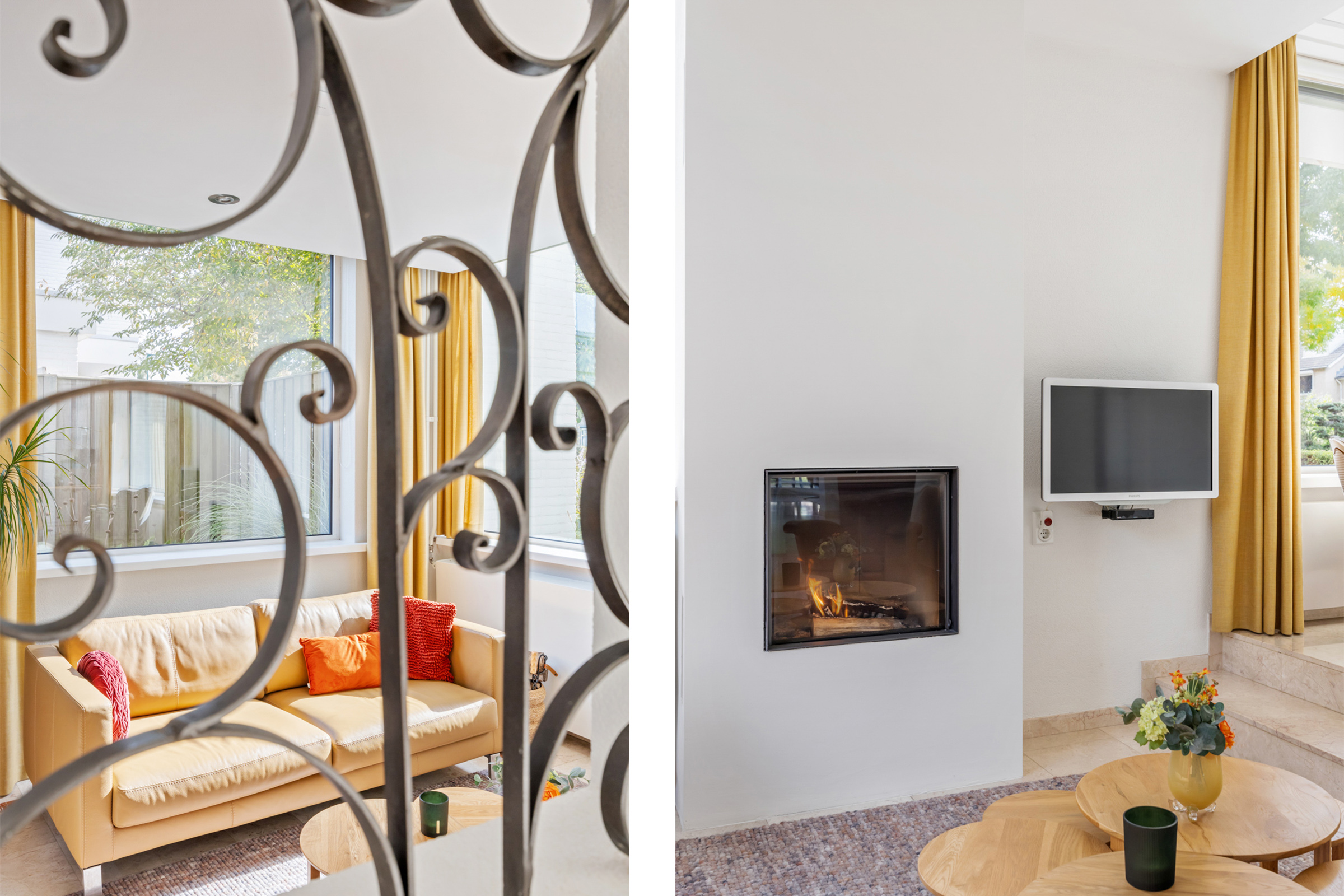 Bij binnenkomst wordt u verwelkomd in de lichte hal met garderobe en een nette toiletruimte, vanuit hier is toegang tot een multifunctionele kamer (ideaal als thuiskantoor, hobby-/speel-/ of slaapkamer) en het royale woongedeelte o.a. voorzien van vloerverwarming. Het woongedeelte is speels ingedeeld en beschikt momenteel over een tweetal zitgedeeltes en een eetgedeelte waar een grote eettafel kan staan. Ter plaatse van het verlaagde zitgedeelte aan de voorzijde is een houthaard aanwezig (het rookkanaal is recent in 2024 vernieuwd). Rondom is veel lichtinval door de grote raampartijen, een lichtstraat en grote schuifpui met toegang tot de achtertuin. Er is dan ook fraai zicht op zowel de achtertuin als het groen aan de voorzijde.