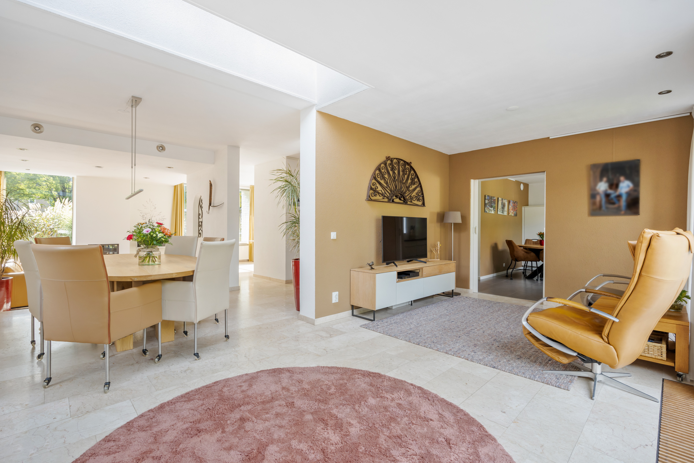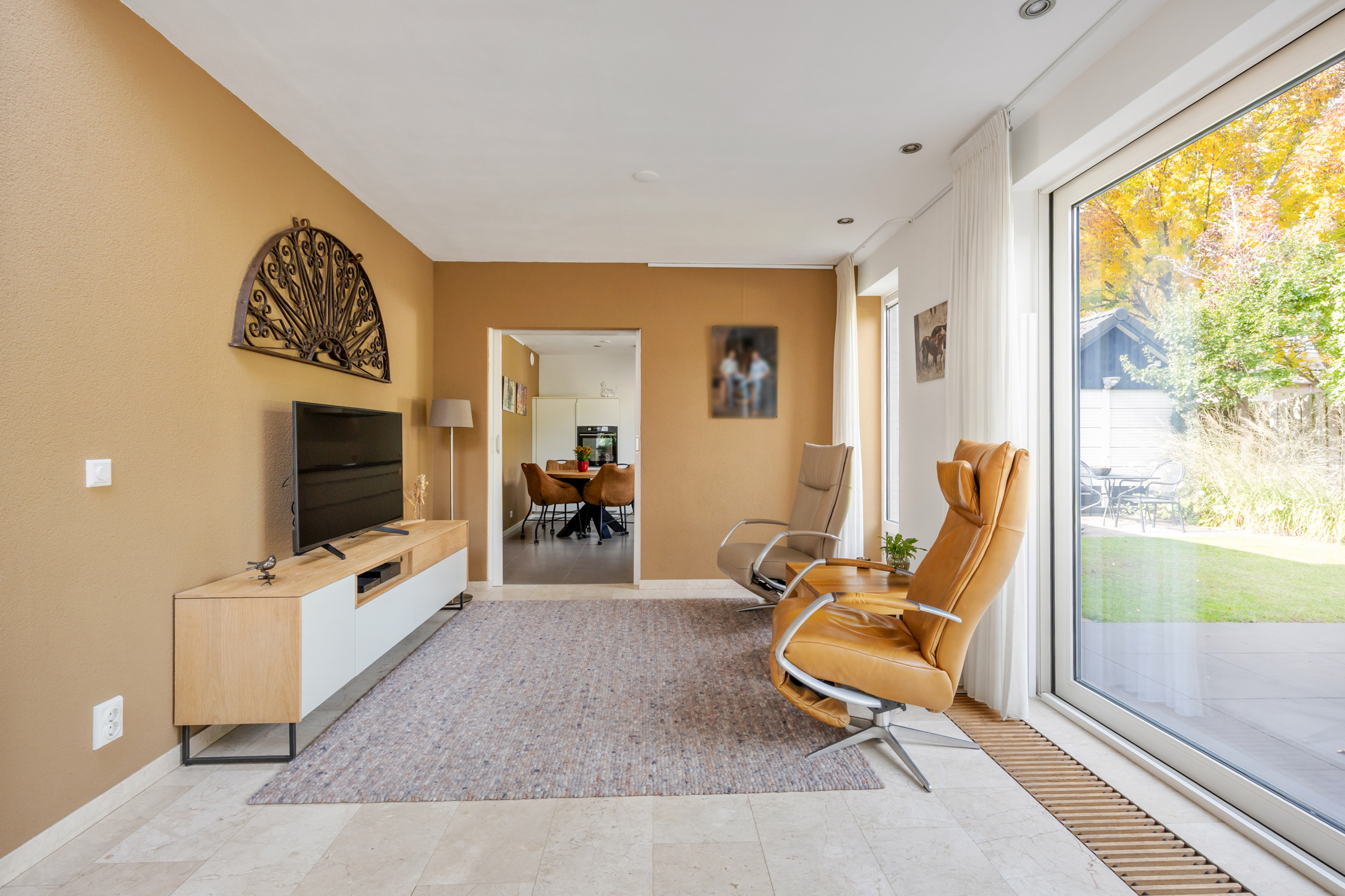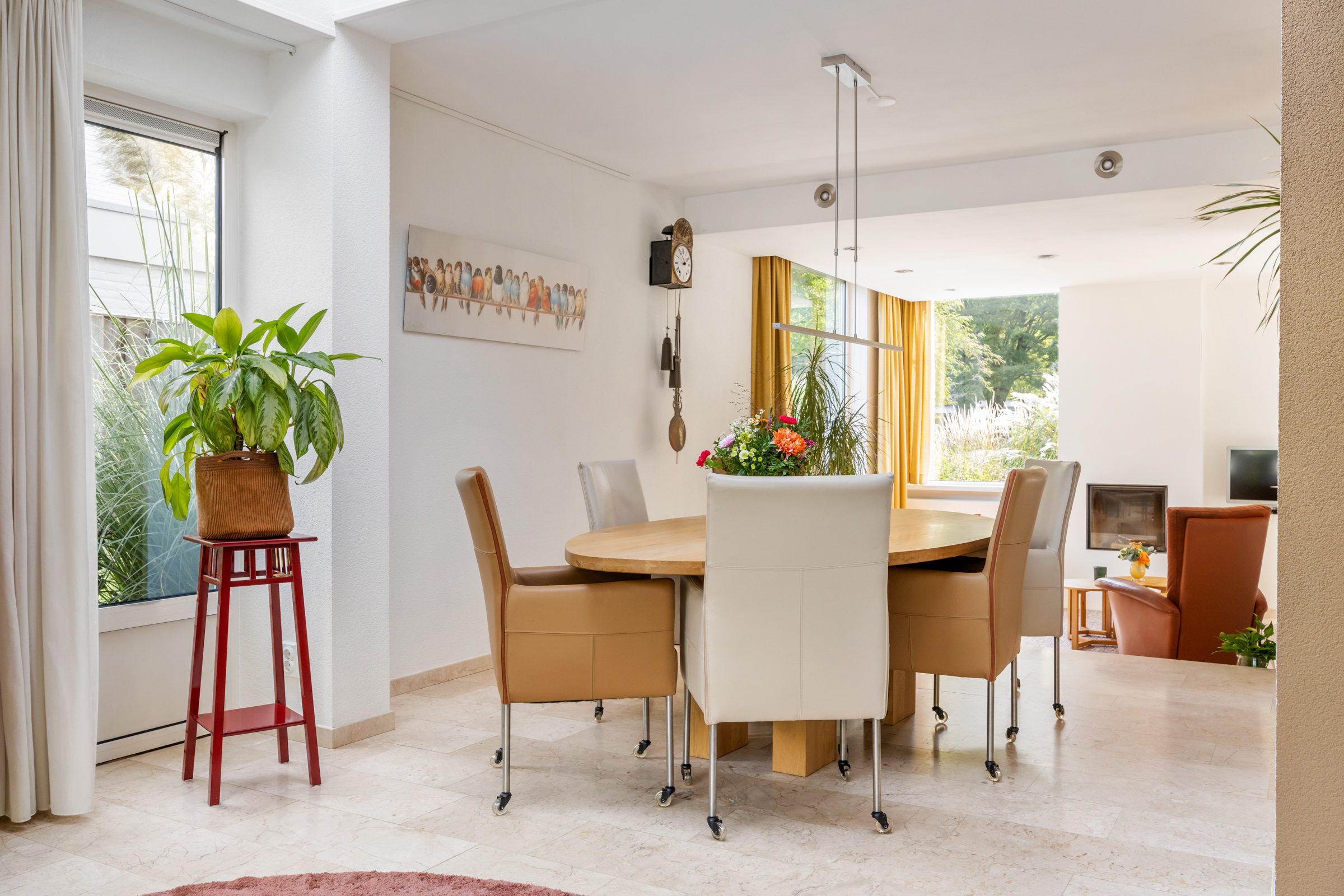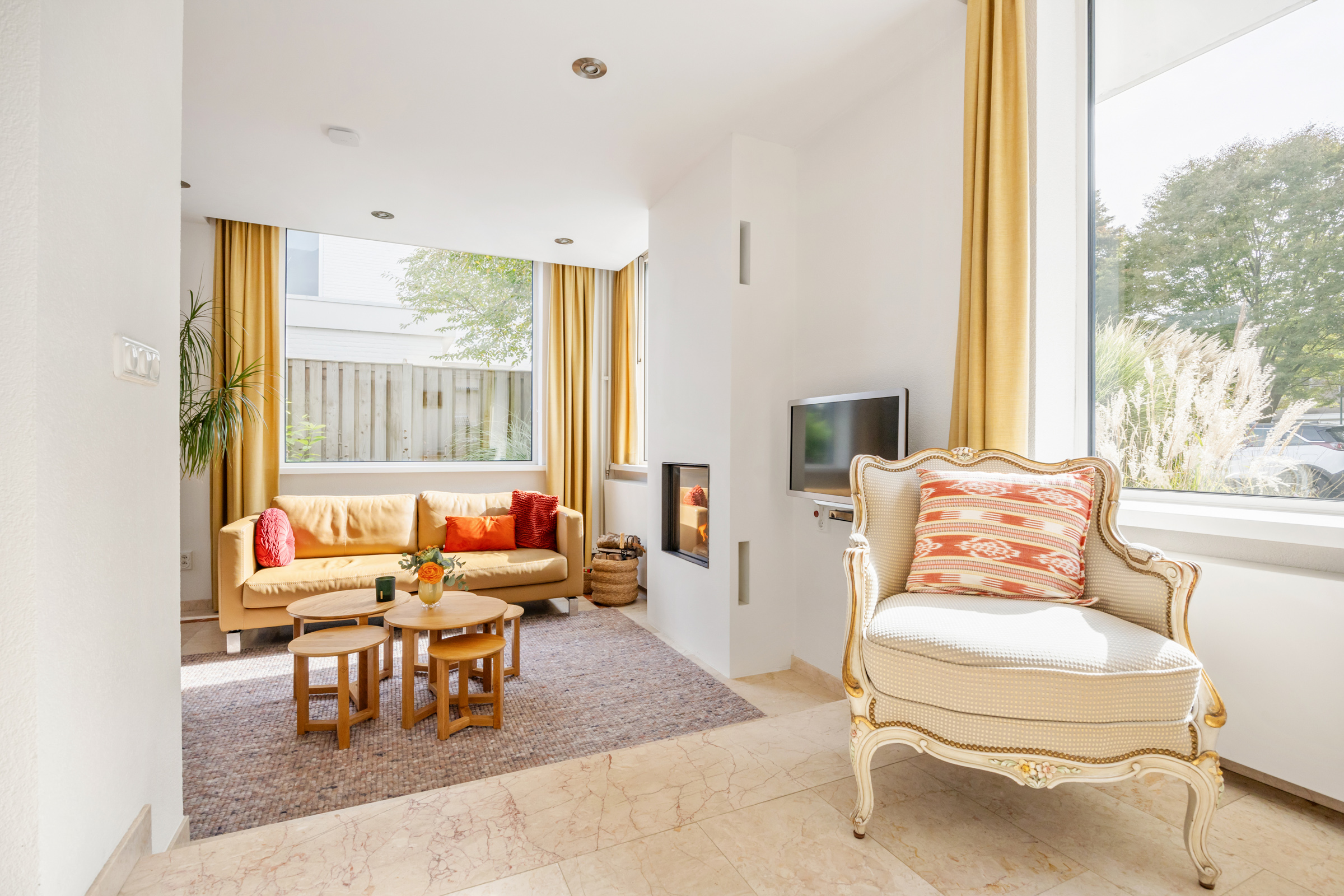 Bij binnenkomst wordt u verwelkomd in de lichte hal met garderobe en een nette toiletruimte, vanuit hier is toegang tot een multifunctionele kamer (ideaal als thuiskantoor, hobby-/speel-/ of slaapkamer) en het royale woongedeelte o.a. voorzien van vloerverwarming. Het woongedeelte is speels ingedeeld en beschikt momenteel over een tweetal zitgedeeltes en een eetgedeelte waar een grote eettafel kan staan. Ter plaatse van het verlaagde zitgedeelte aan de voorzijde is een houthaard aanwezig (het rookkanaal is recent in 2024 vernieuwd). Rondom is veel lichtinval door de grote raampartijen, een lichtstraat en grote schuifpui met toegang tot de achtertuin. Er is dan ook fraai zicht op zowel de achtertuin als het groen aan de voorzijde.