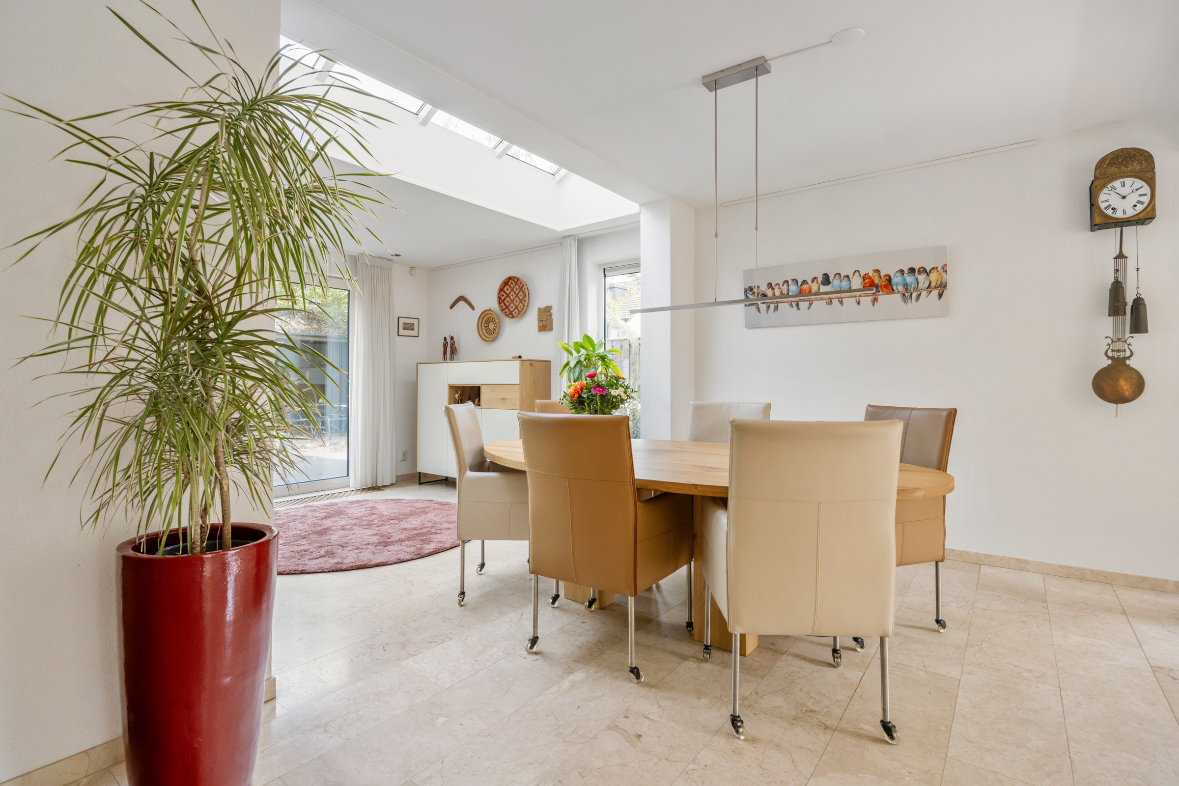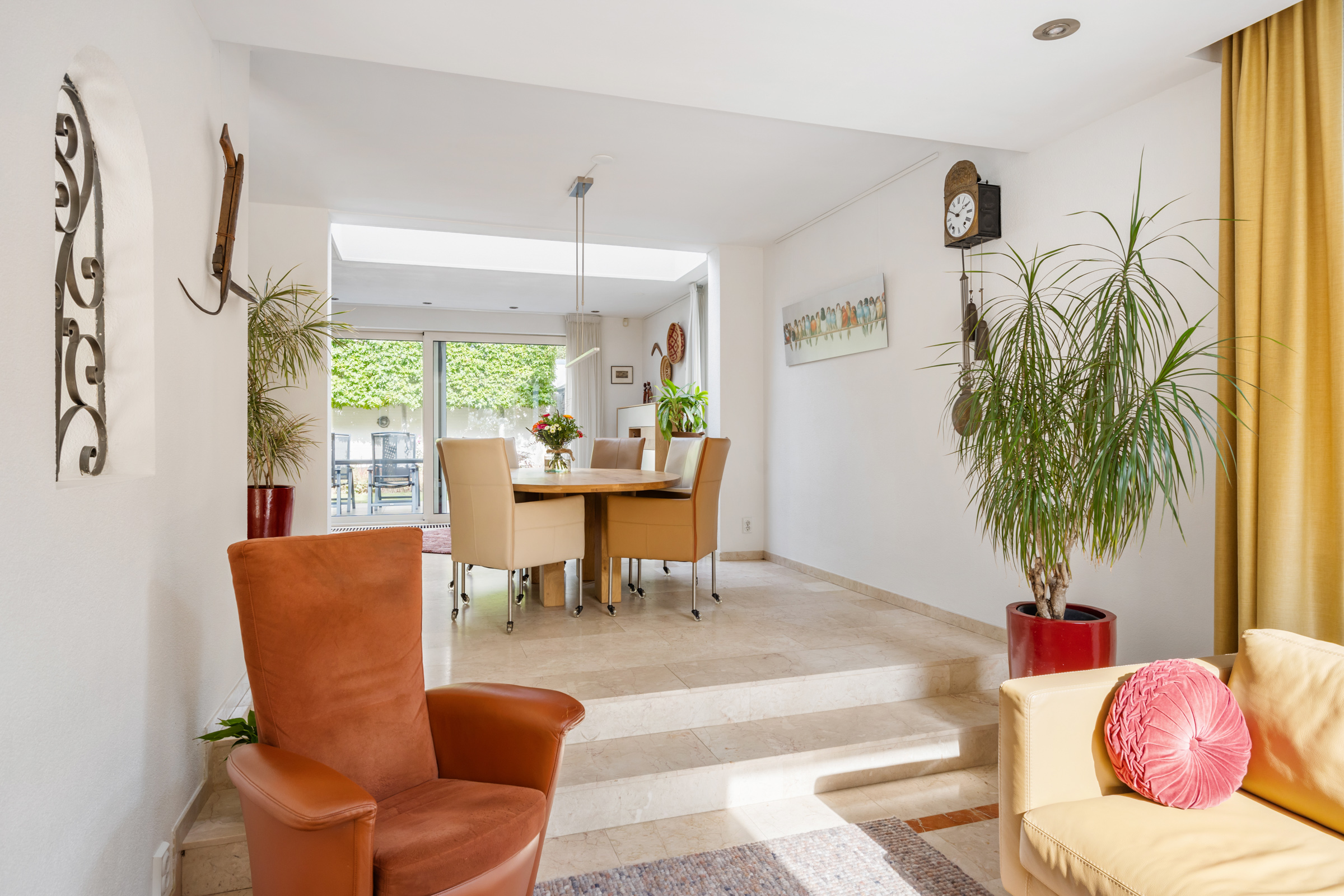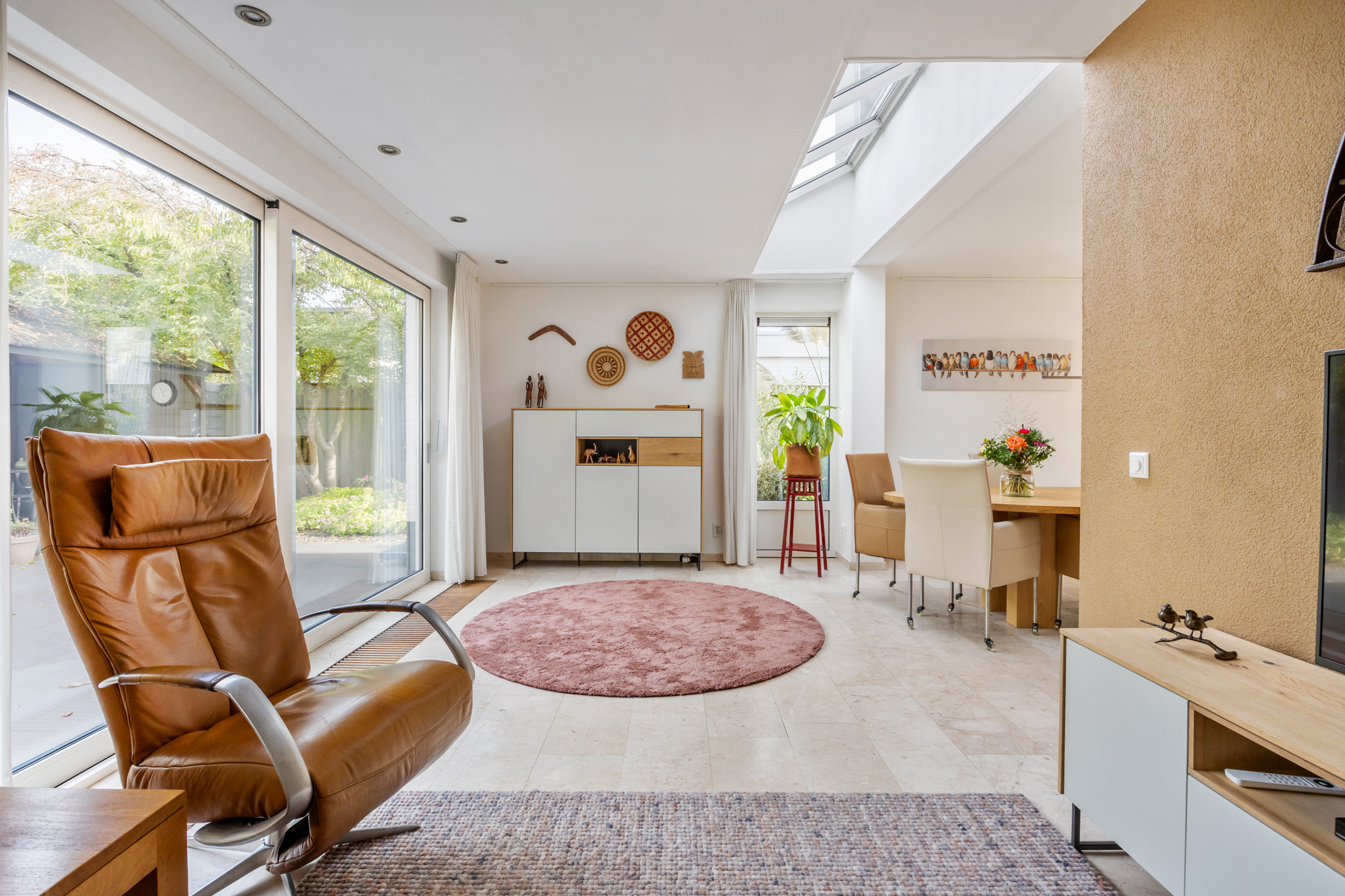 De speelse doch ruimtelijke inrichting van het woongedeelte en de keuken creëert een gezellige sfeer en maakt de woning geschikt voor het gezinsleven en het ontvangen van gasten.