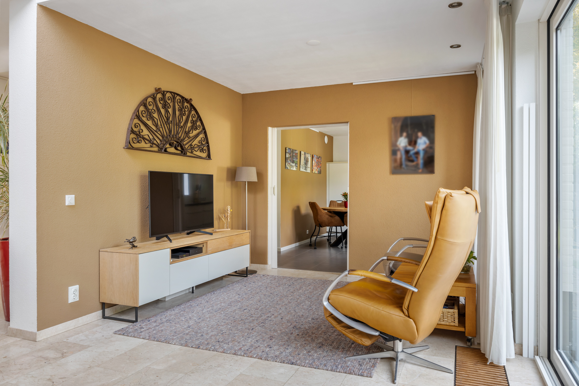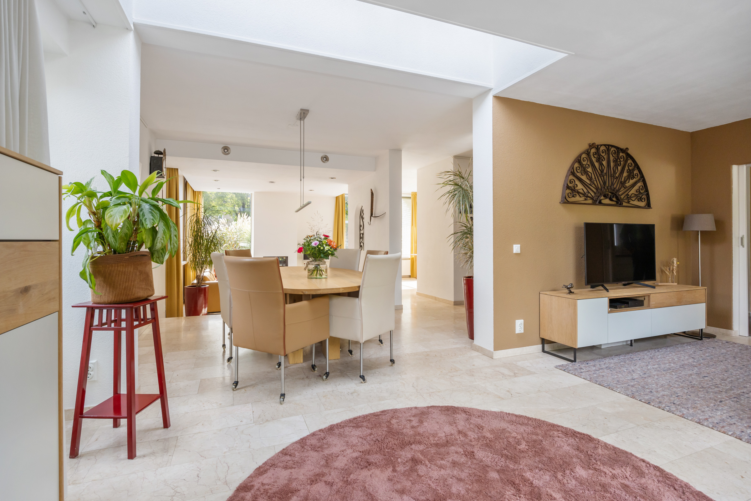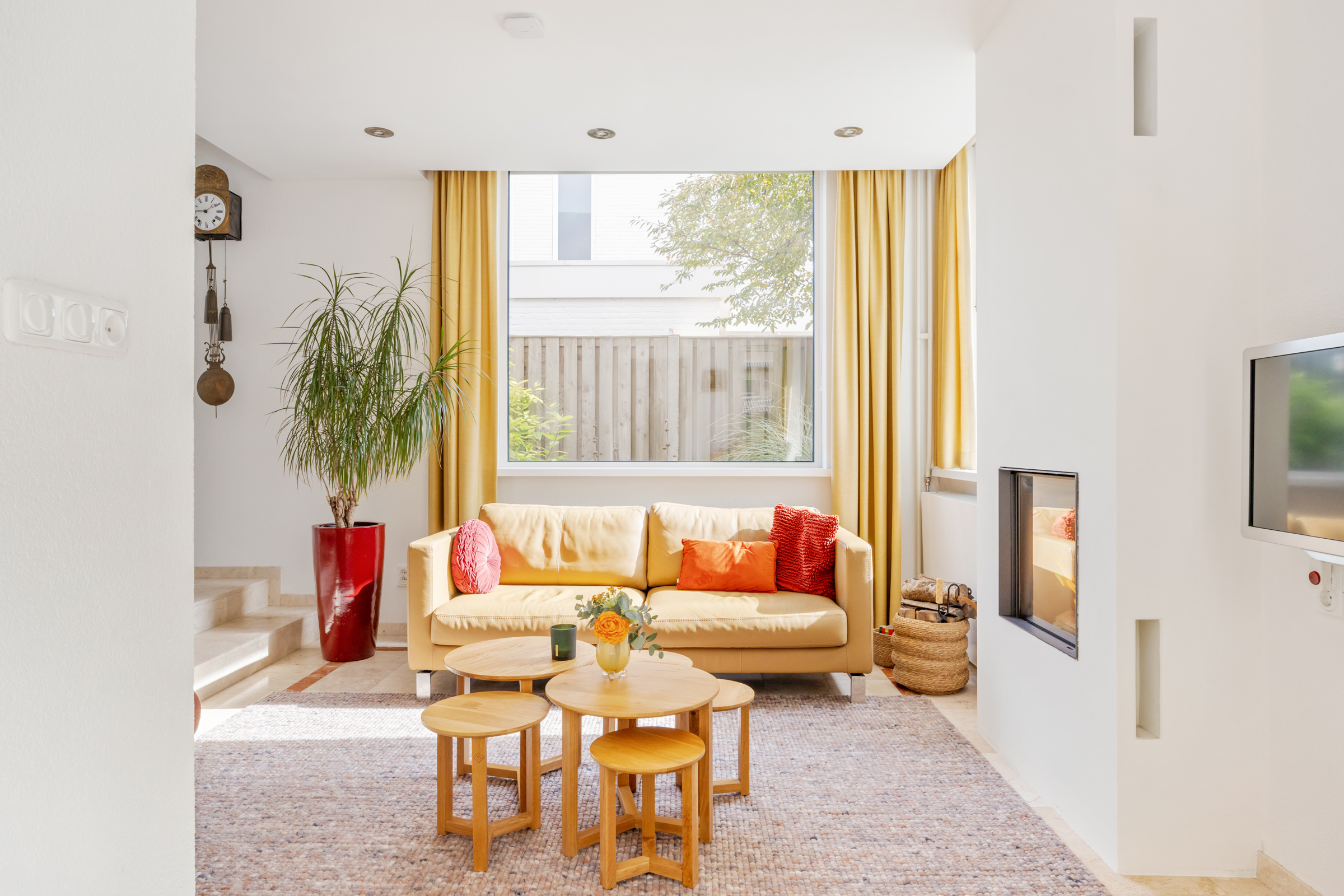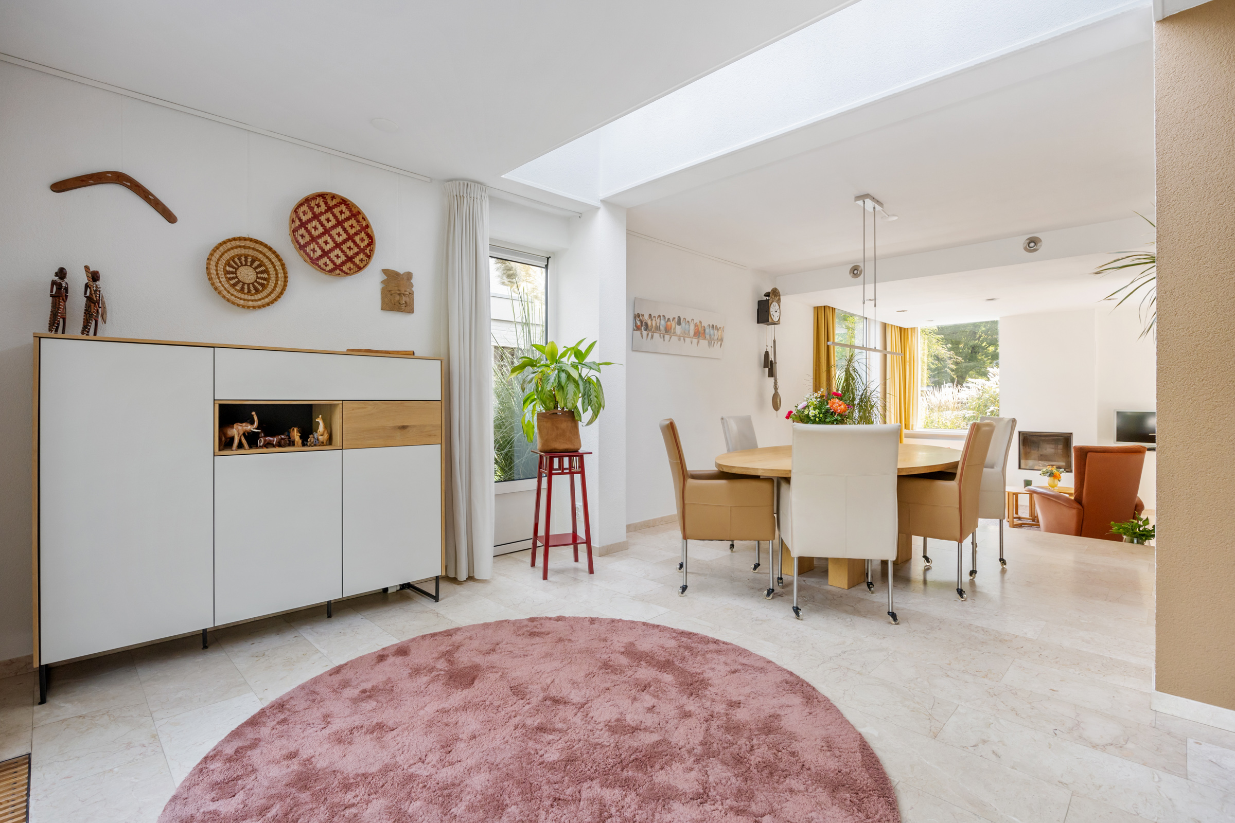 De speelse doch ruimtelijke inrichting van het woongedeelte en de keuken creëert een gezellige sfeer en maakt de woning geschikt voor het gezinsleven en het ontvangen van gasten.