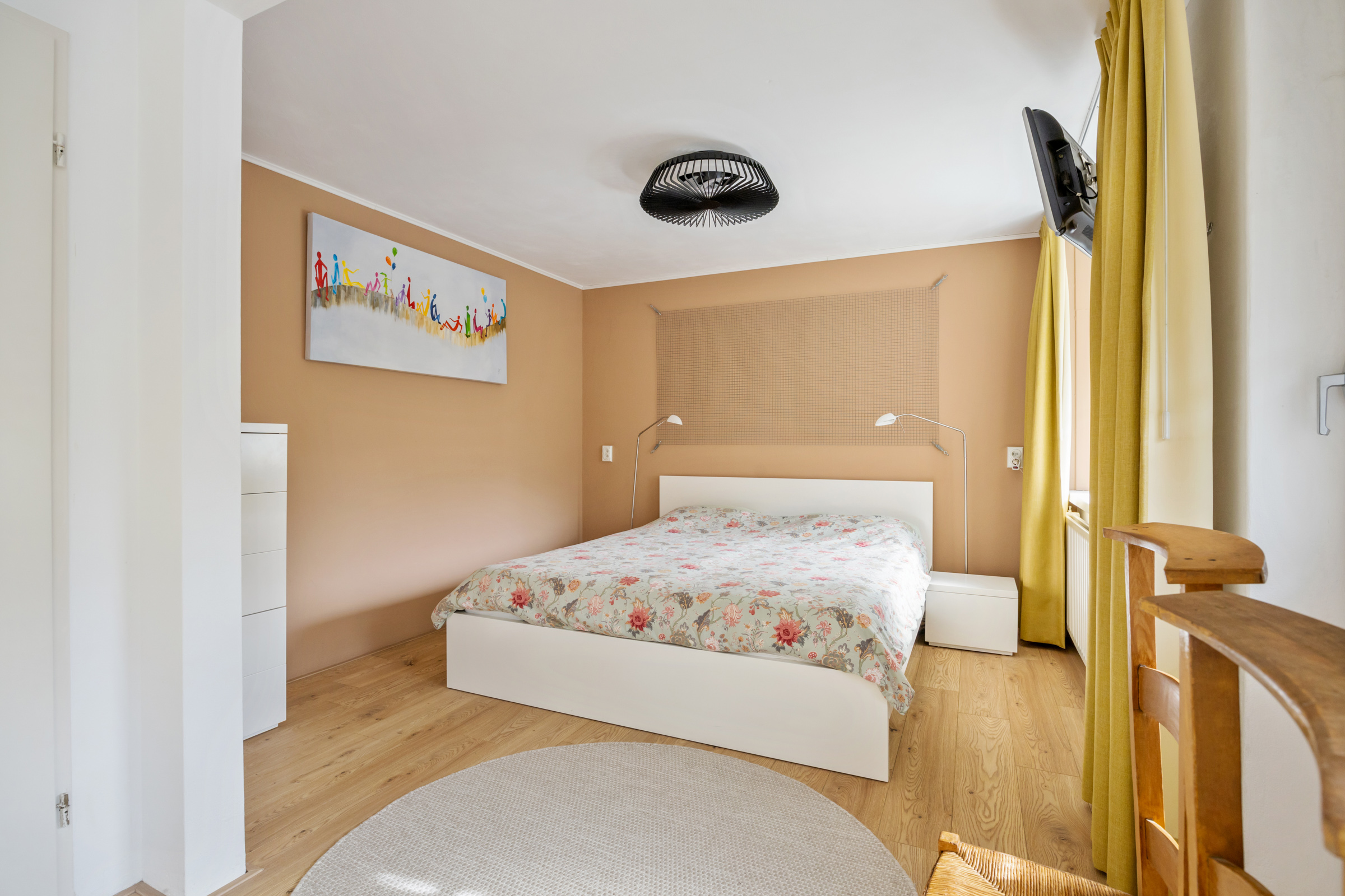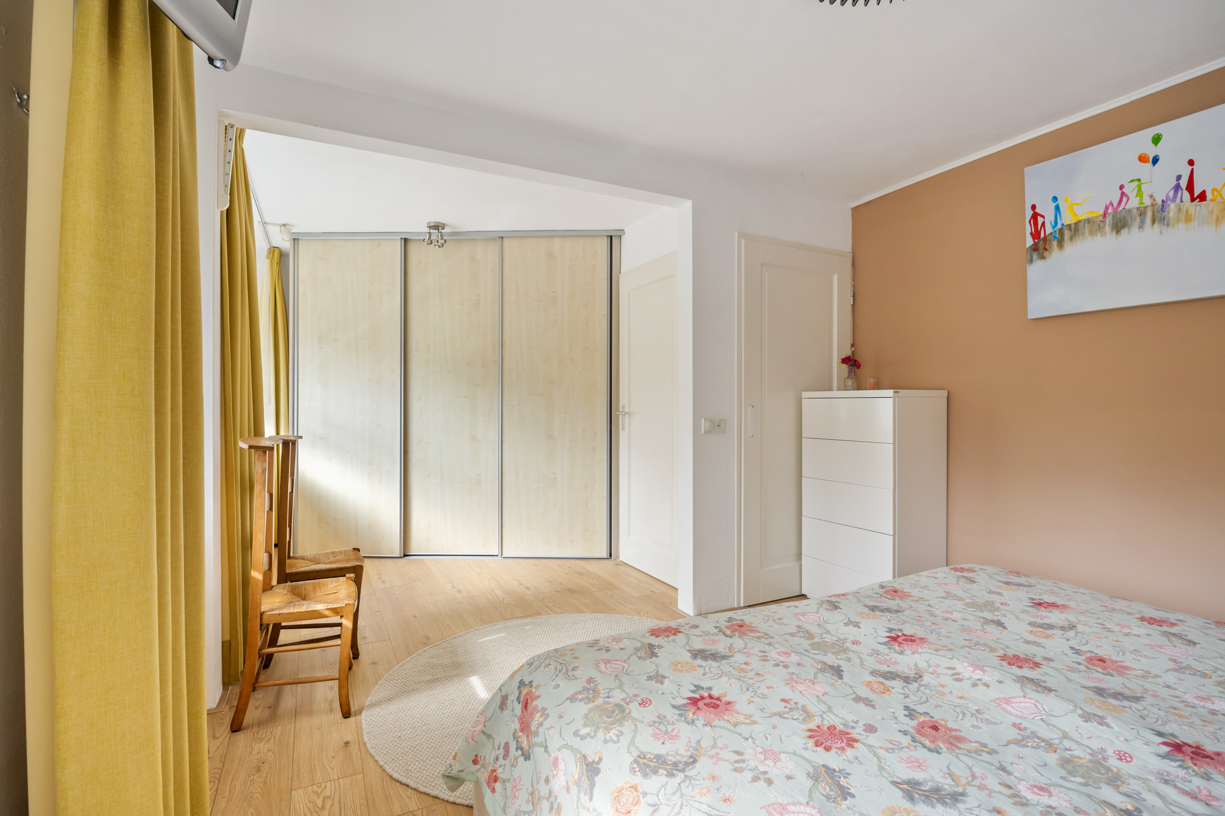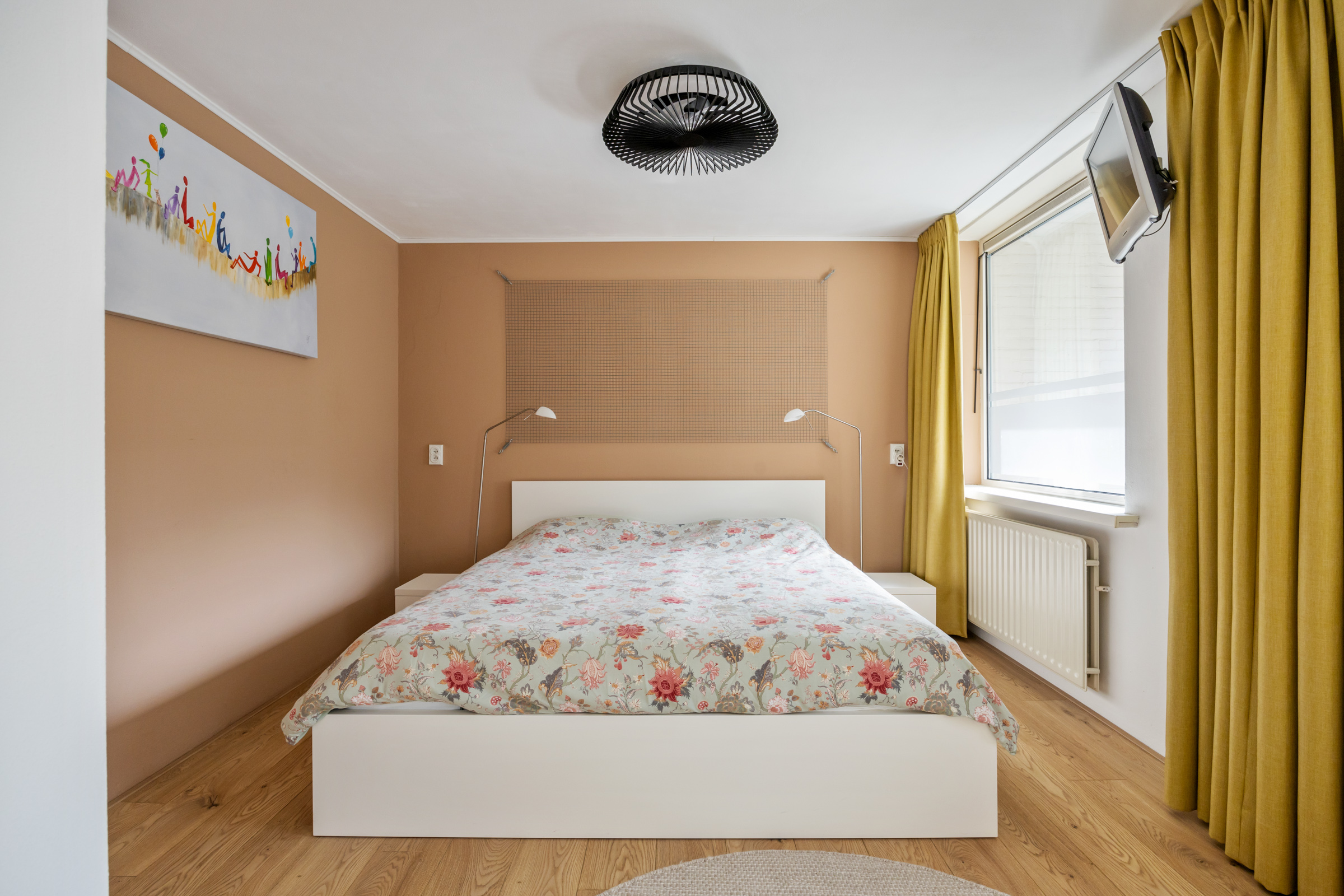 Ruime overloop met vaste trapopgang naar de tweede verdieping en toegang tot twee slaapkamers en de badkamer. Hoofdslaapkamer 1 ca. 19 m2 aan de voorzijde met een eigen balkon en ingebouwde kledingkast (voorheen waren dit twee slaapkamers) en slaapkamer 2 ca. 10 m2 aan de achterzijde. Deze verdieping beschikt tevens over een moderne en complete badkamer met een ligbad, inloopdouche, wastafel met meubel en een toilet.