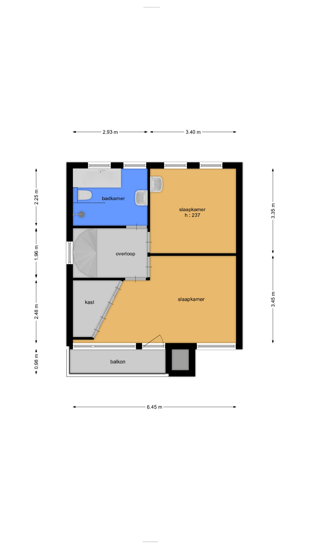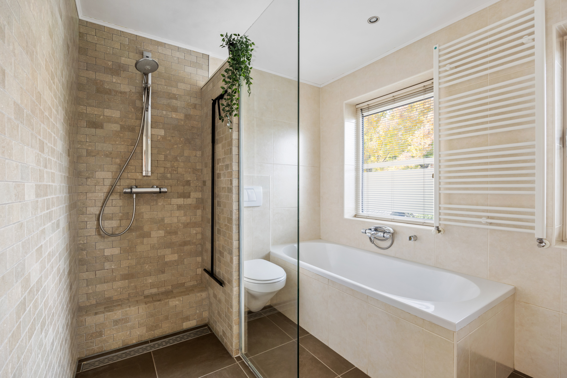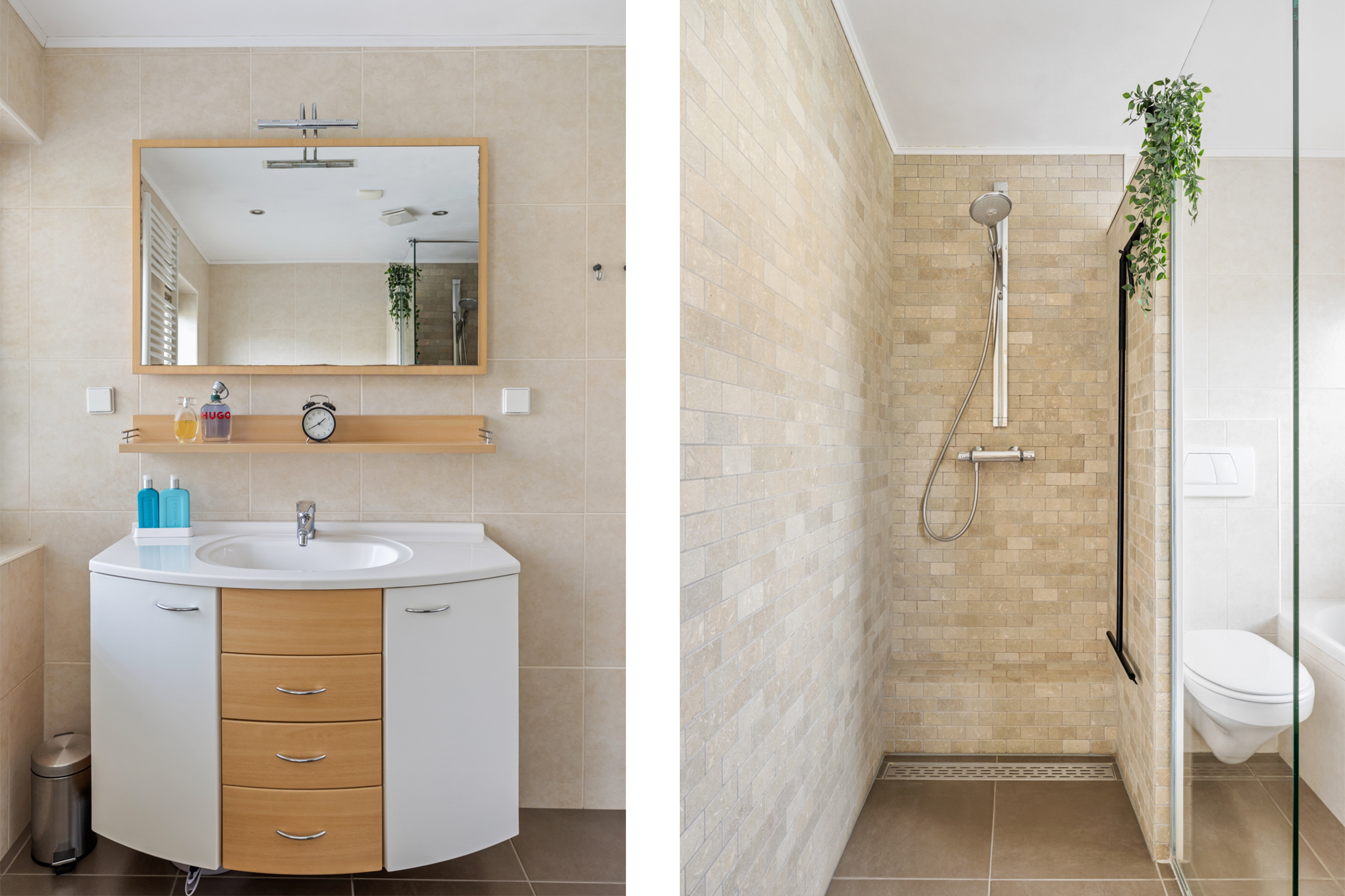 Ruime overloop met vaste trapopgang naar de tweede verdieping en toegang tot twee slaapkamers en de badkamer. Hoofdslaapkamer 1 ca. 19 m2 aan de voorzijde met een eigen balkon en ingebouwde kledingkast (voorheen waren dit twee slaapkamers) en slaapkamer 2 ca. 10 m2 aan de achterzijde. Deze verdieping beschikt tevens over een moderne en complete badkamer met een ligbad, inloopdouche, wastafel met meubel en een toilet.