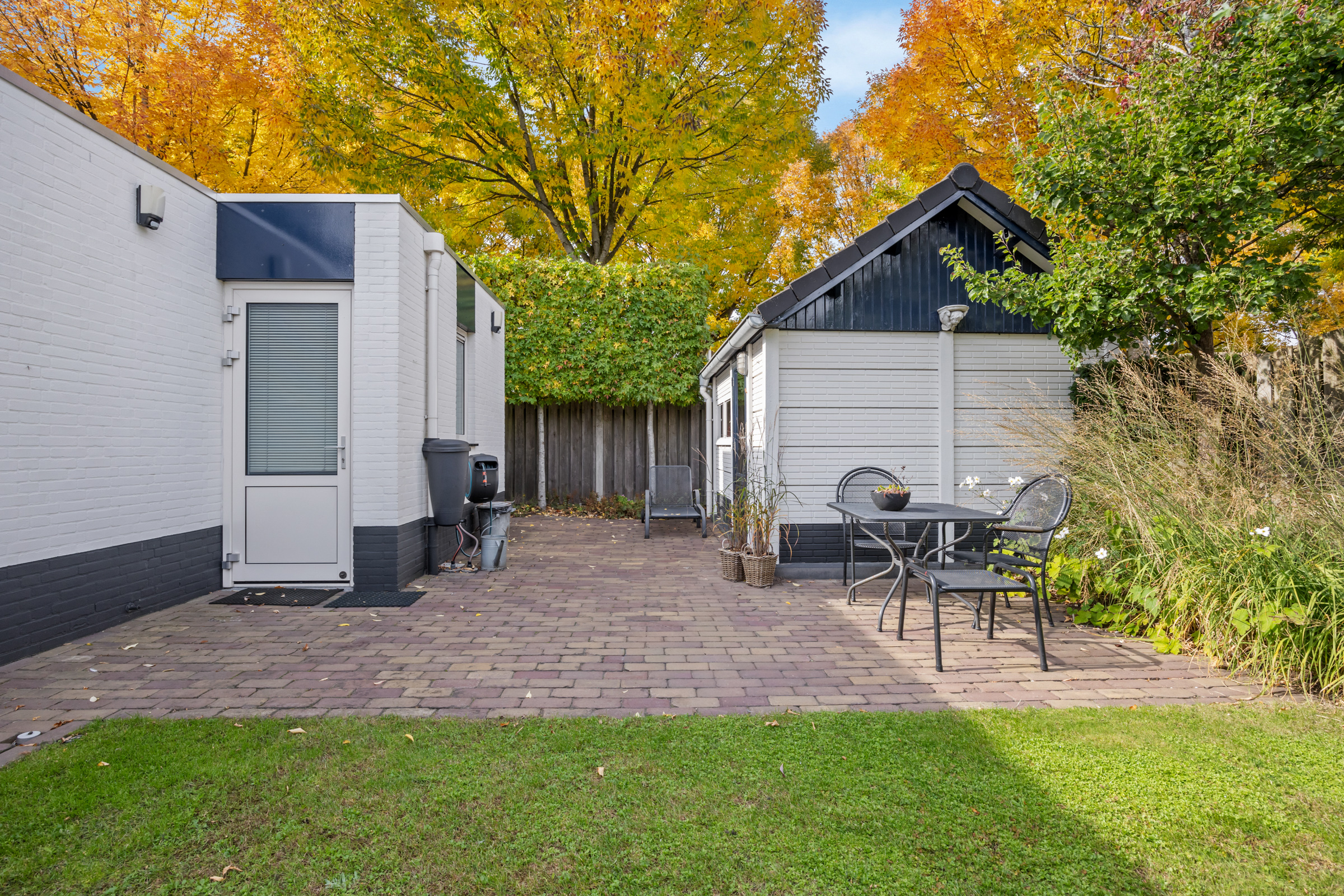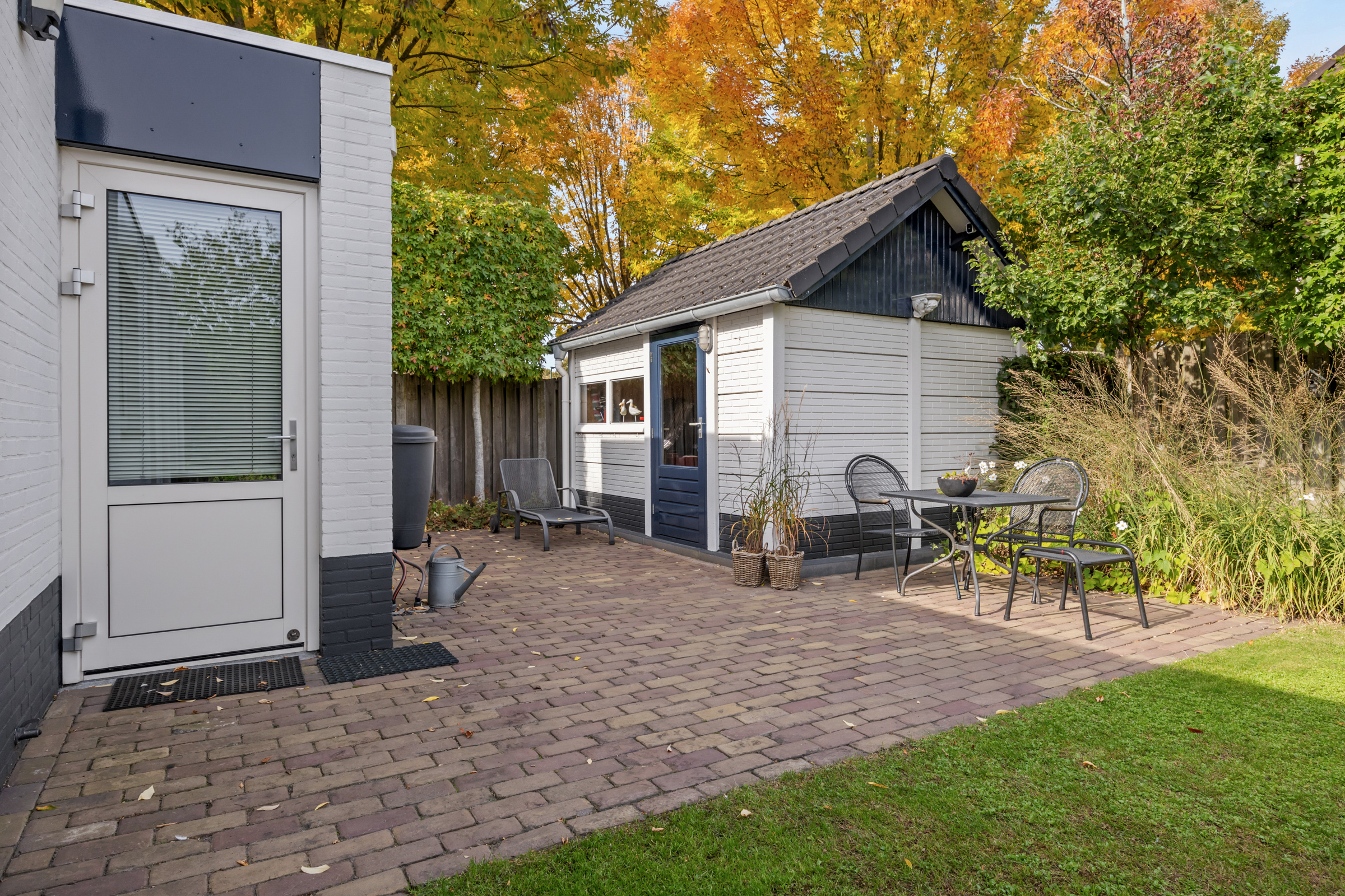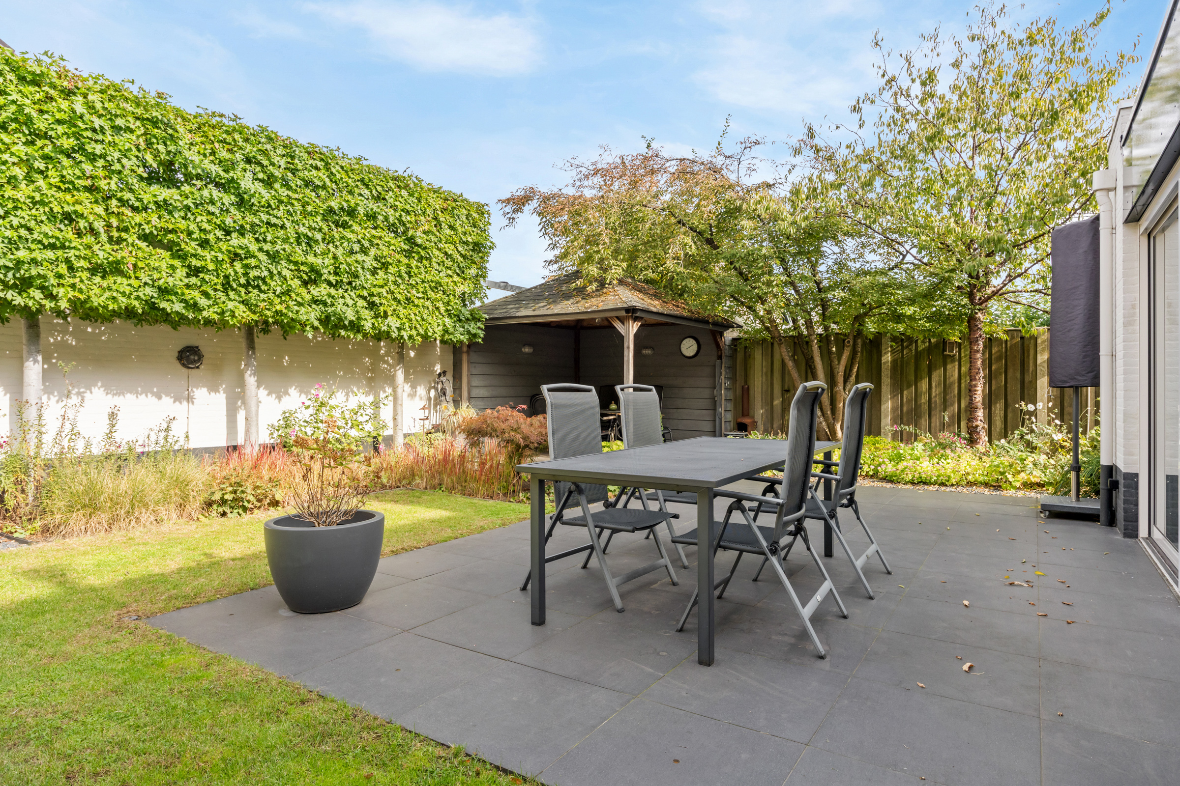 De woning beschikt over een fraai aangelegde tuin met meerdere terrassen, overkapping en een gazon. De tuin is ook voorzien van diverse beplanting en biedt veel privacy. Daarnaast is er een handige berging voor het opbergen van bijvoorbeeld tuingereedschap.